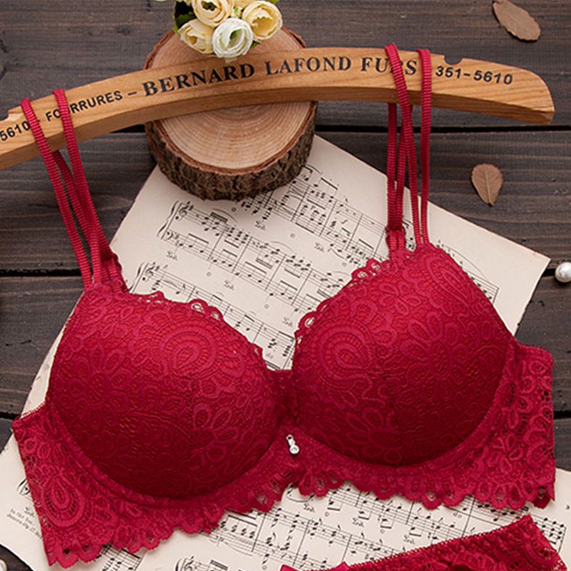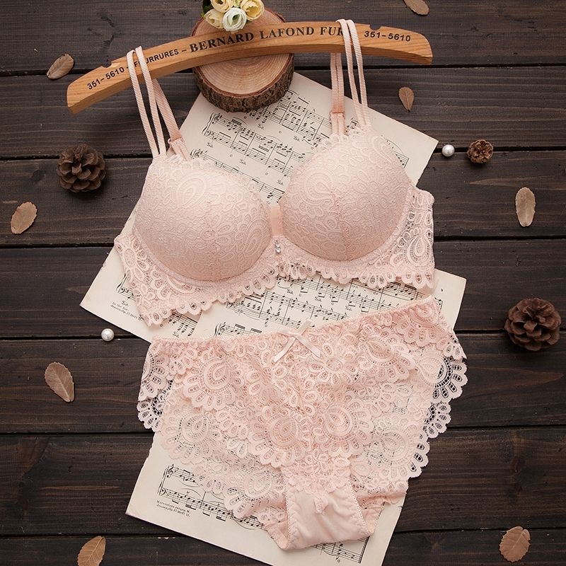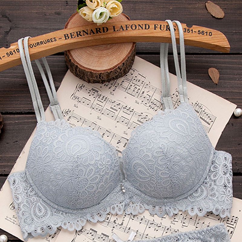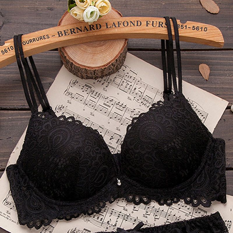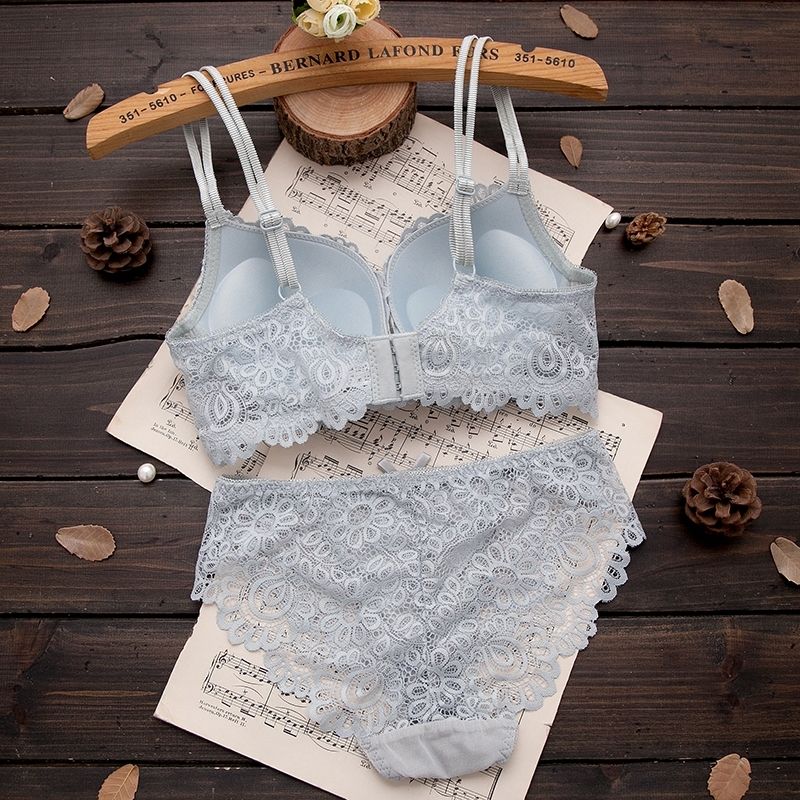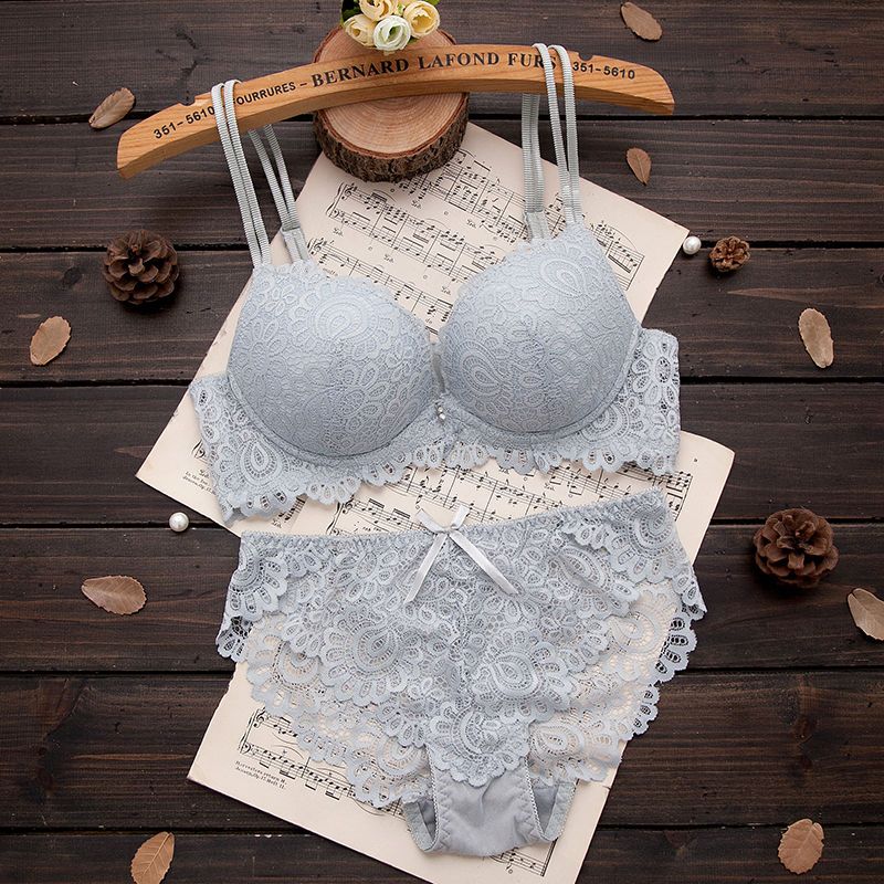 巴黎站新款高雅性感蕾丝文胸套装调整型按摩女士聚拢内衣胸罩套装