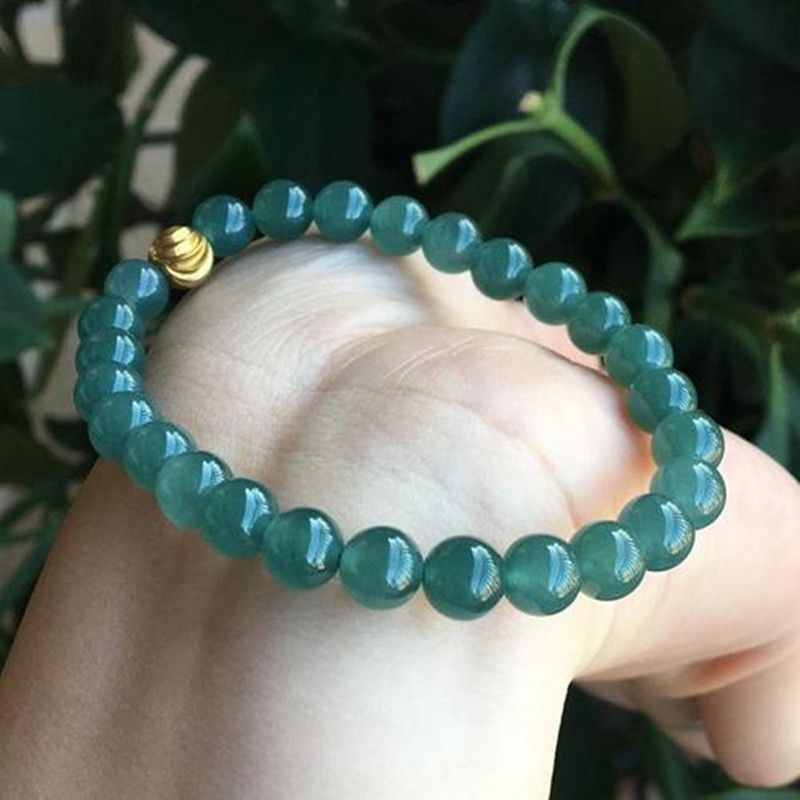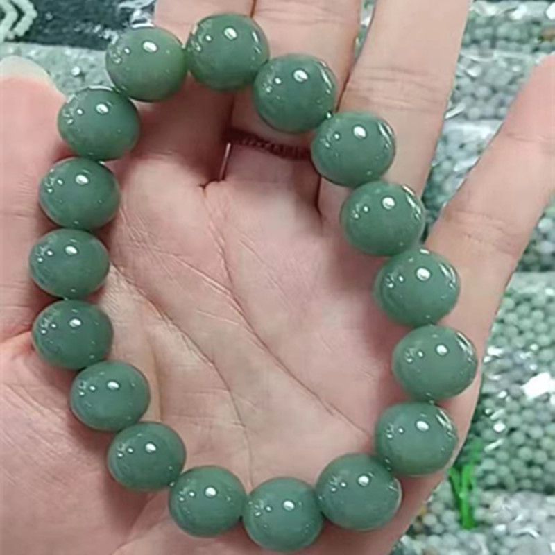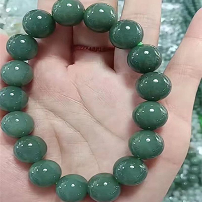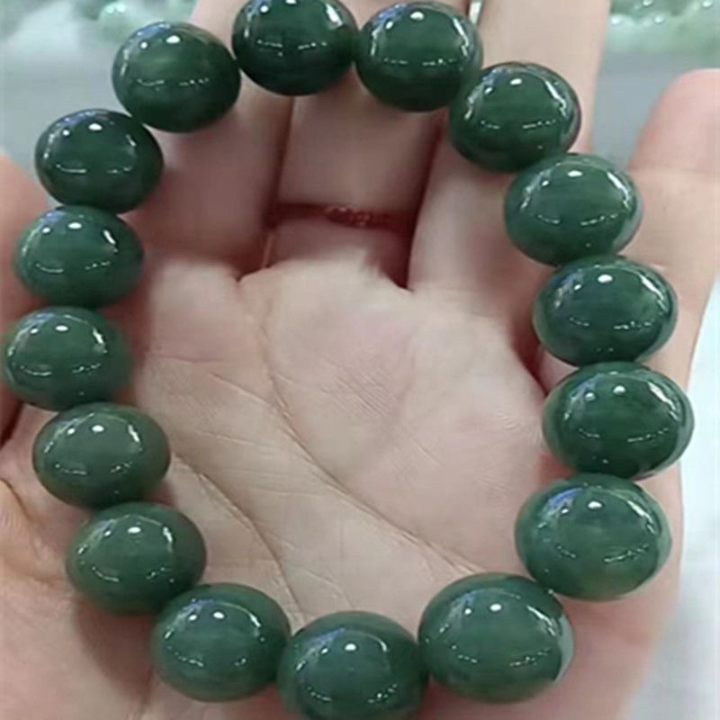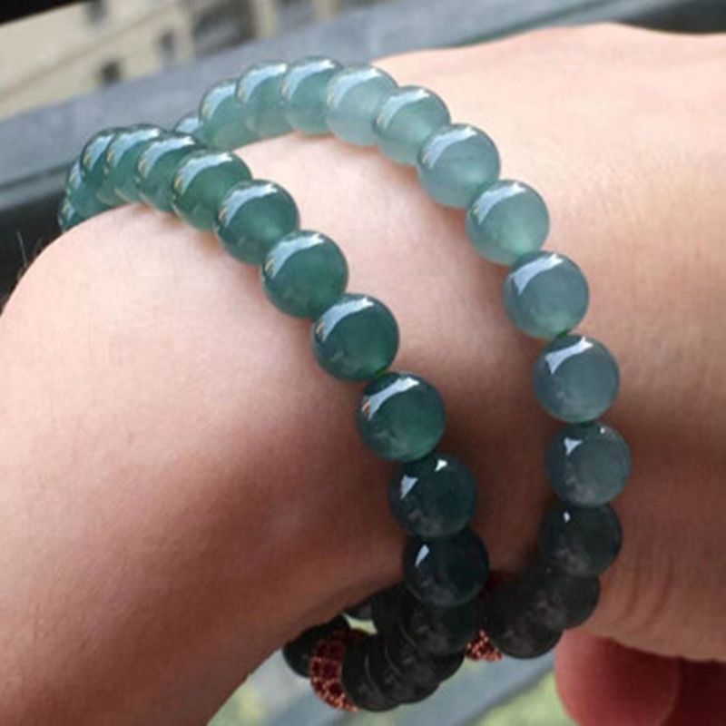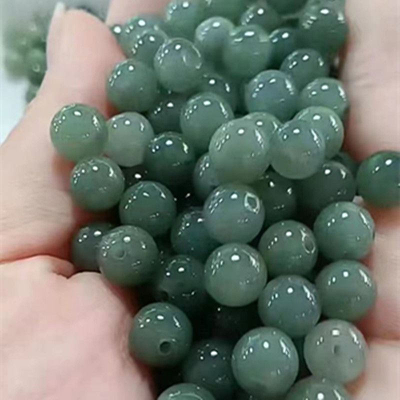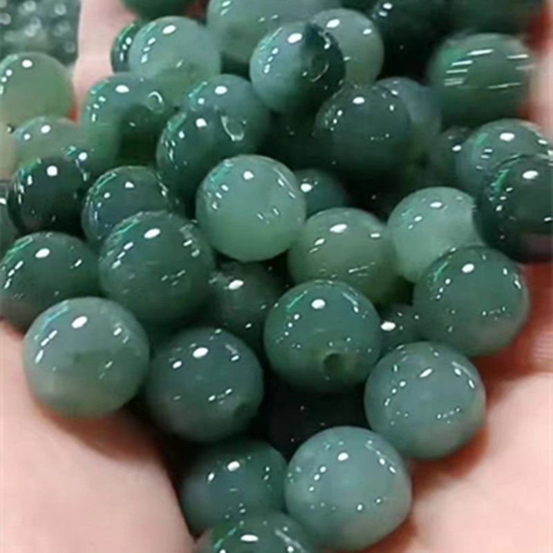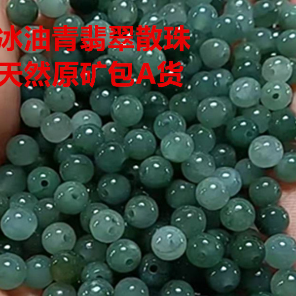 缅甸翡翠油青色散珠手链A货冰种玉石珠子冰油玉珠DIY手链项链散珠