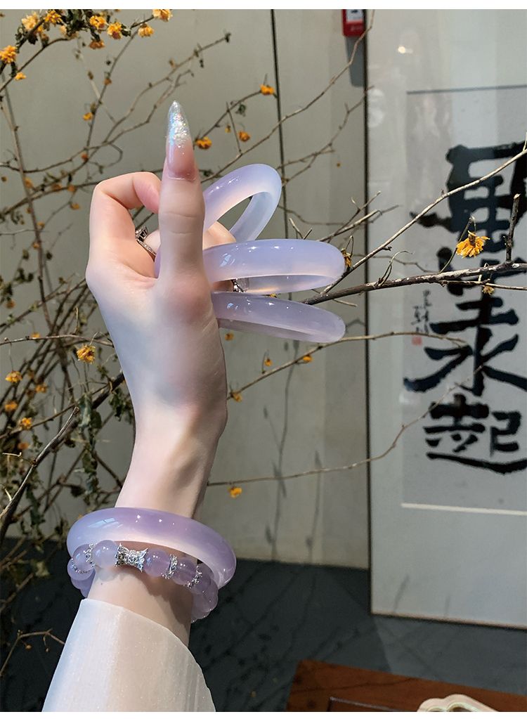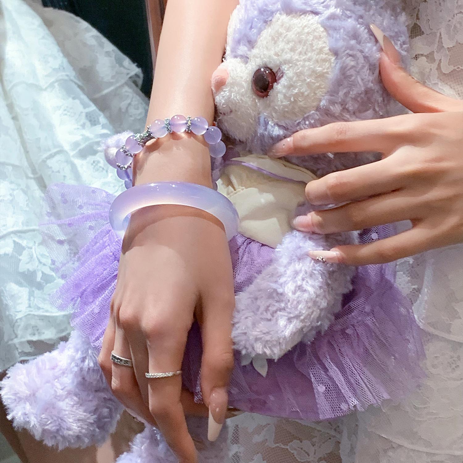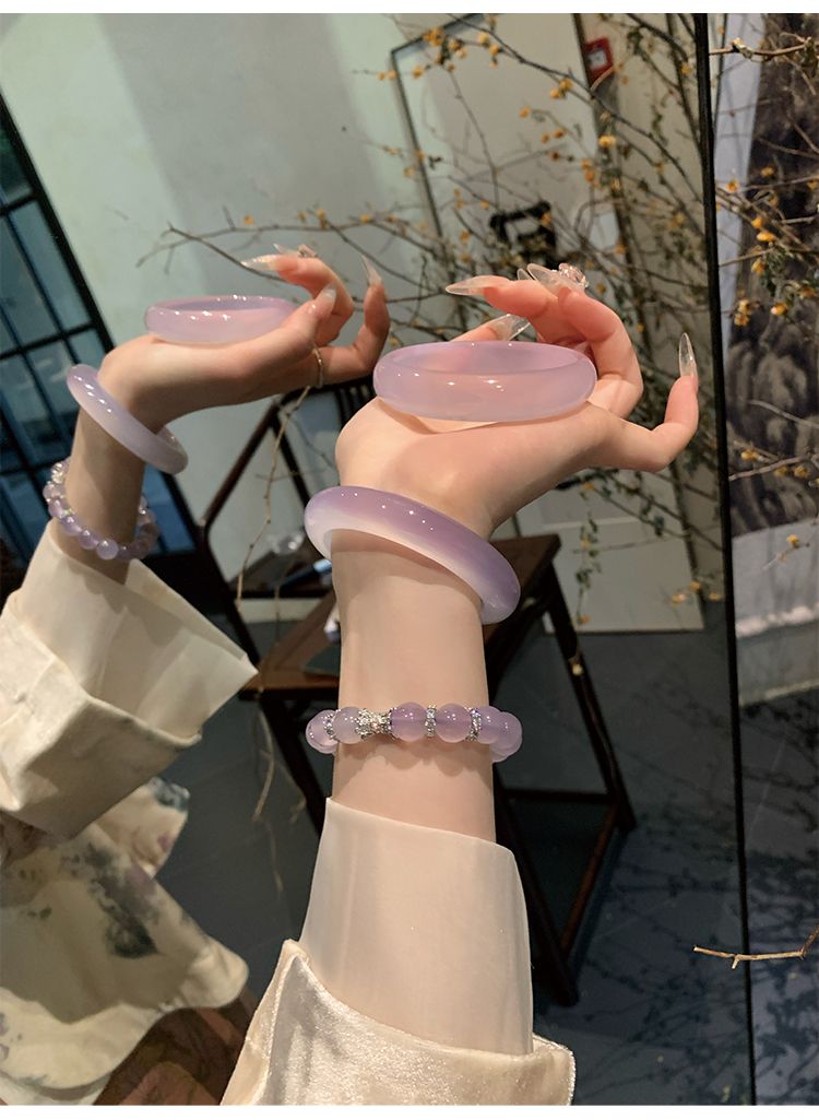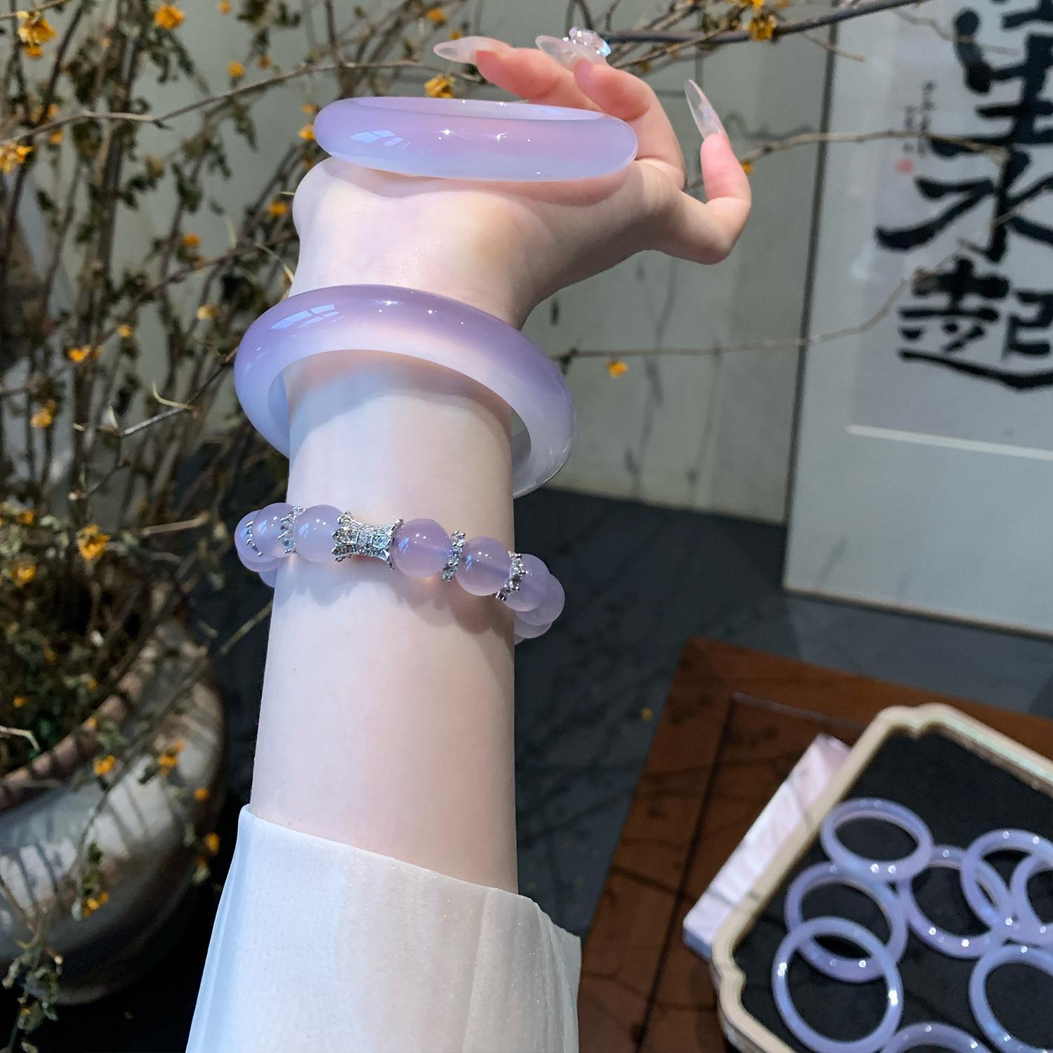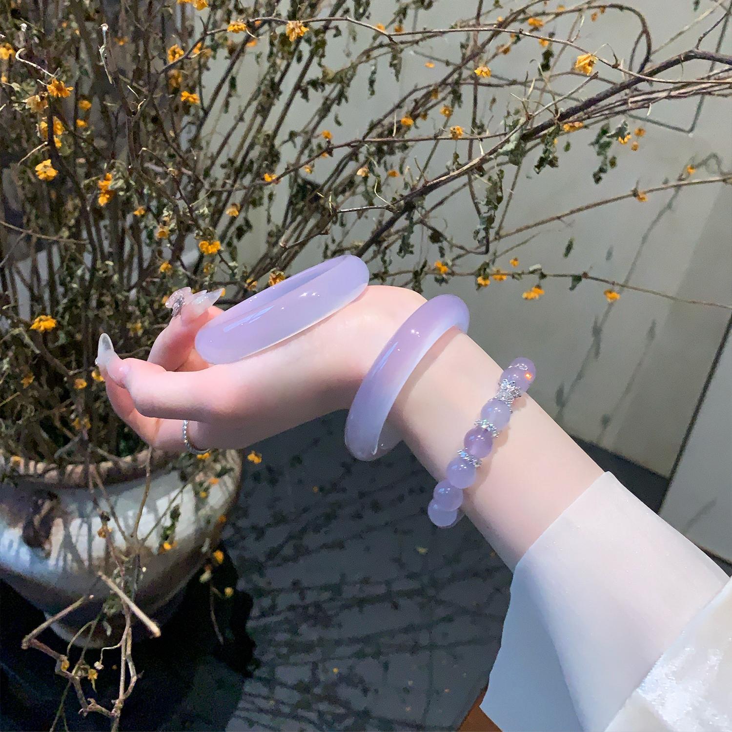 气质冰种紫罗兰手镯女款老坑玉髓玛瑙浅紫色猫眼手镯翡翠平替玉镯