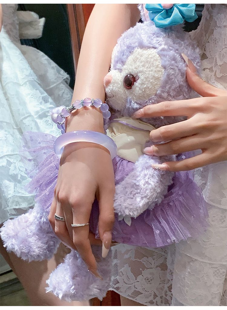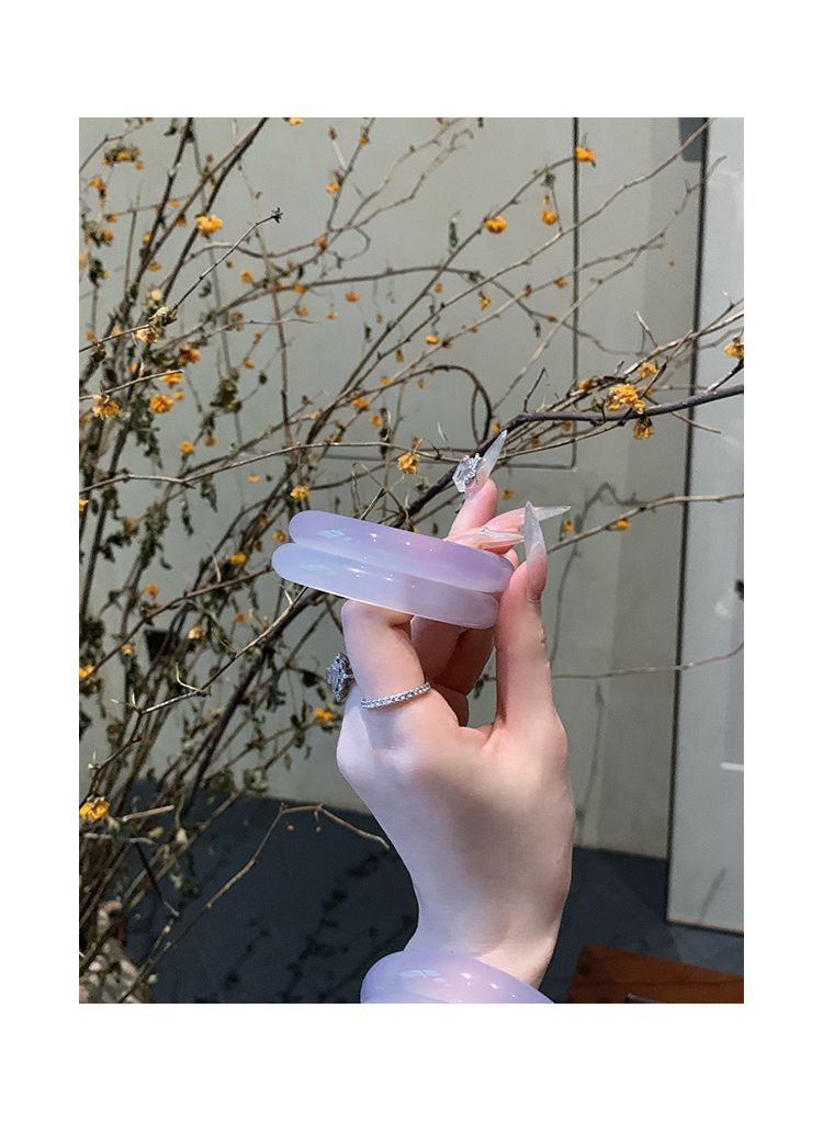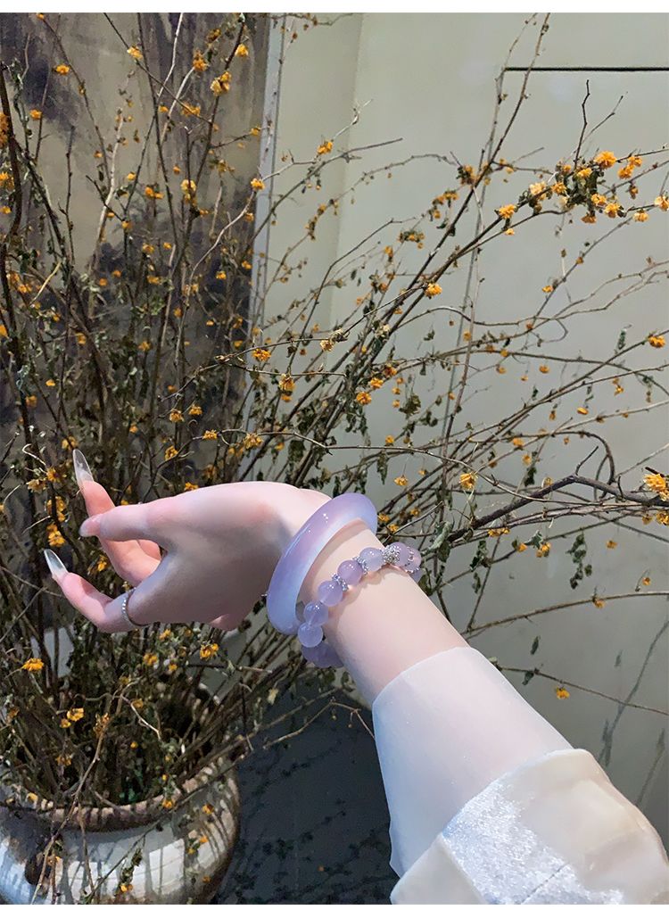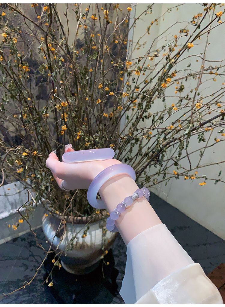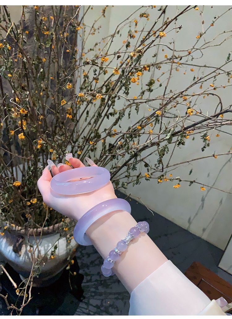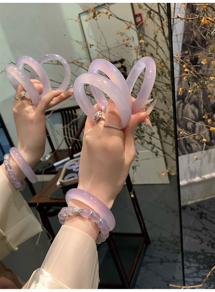 气质冰种紫罗兰手镯女款老坑玉髓玛瑙浅紫色猫眼手镯翡翠平替玉镯