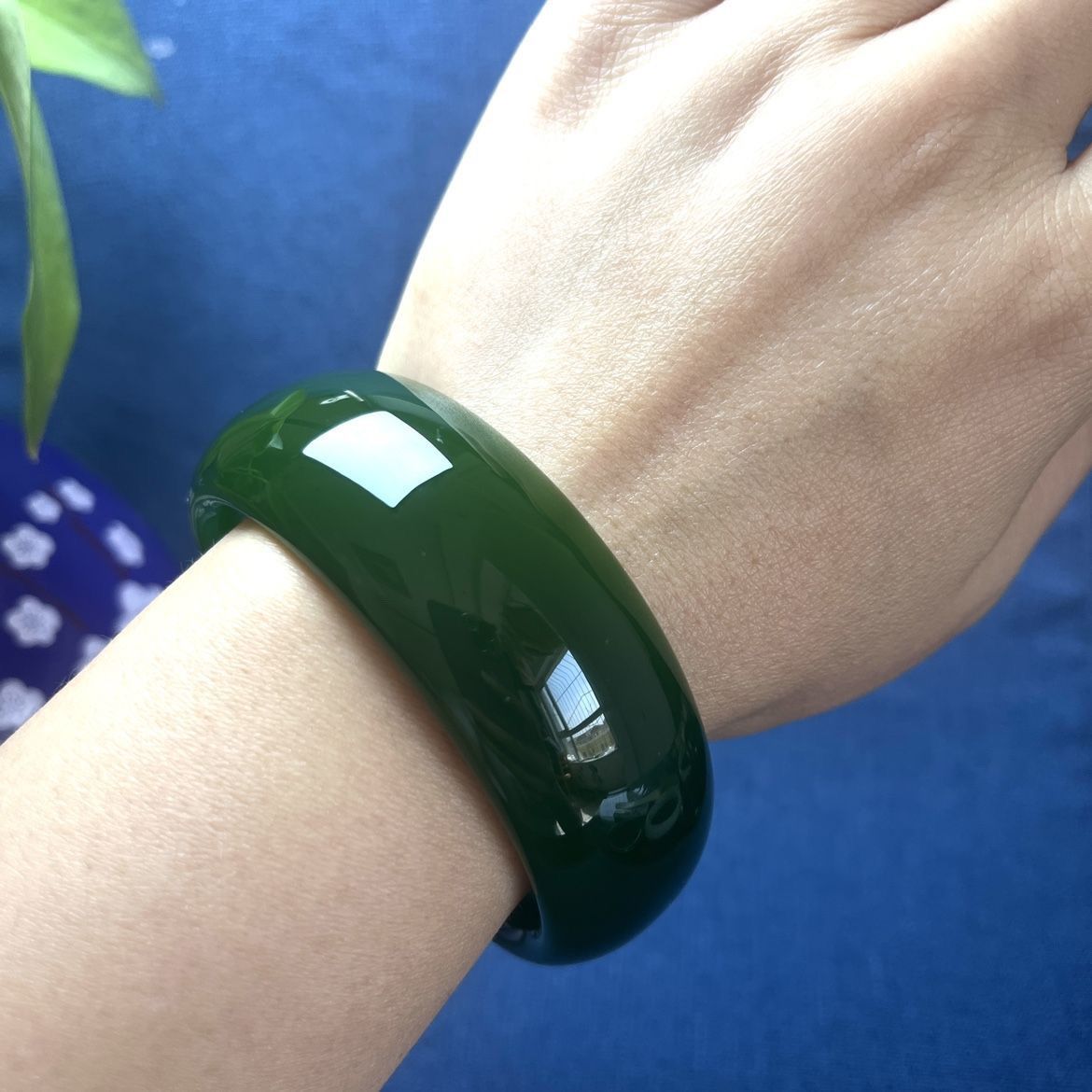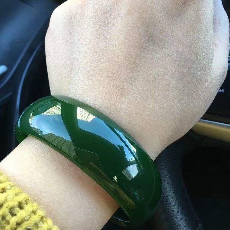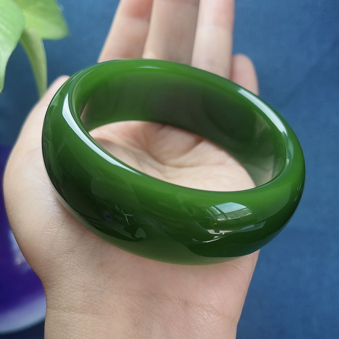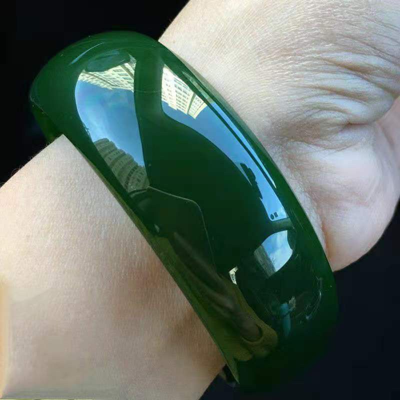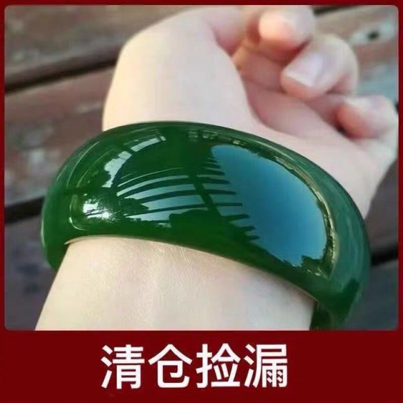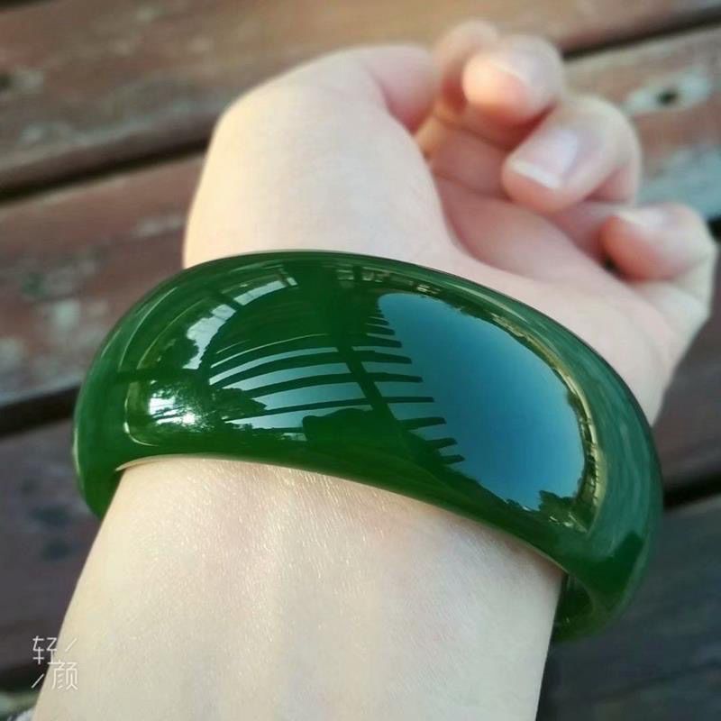 正品天然新疆和田手镯碧玉玉镯子菠菜女款妈妈