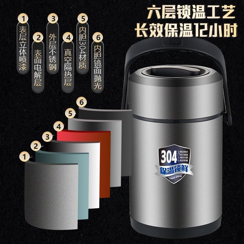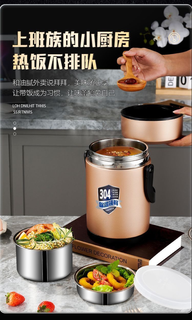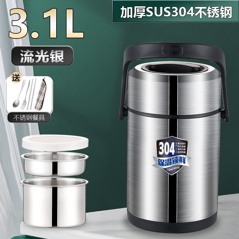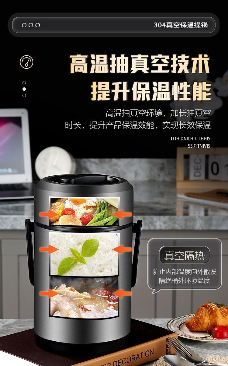 【保温12小时】304不锈钢保温饭盒大容量真空三层学生便当盒桶
