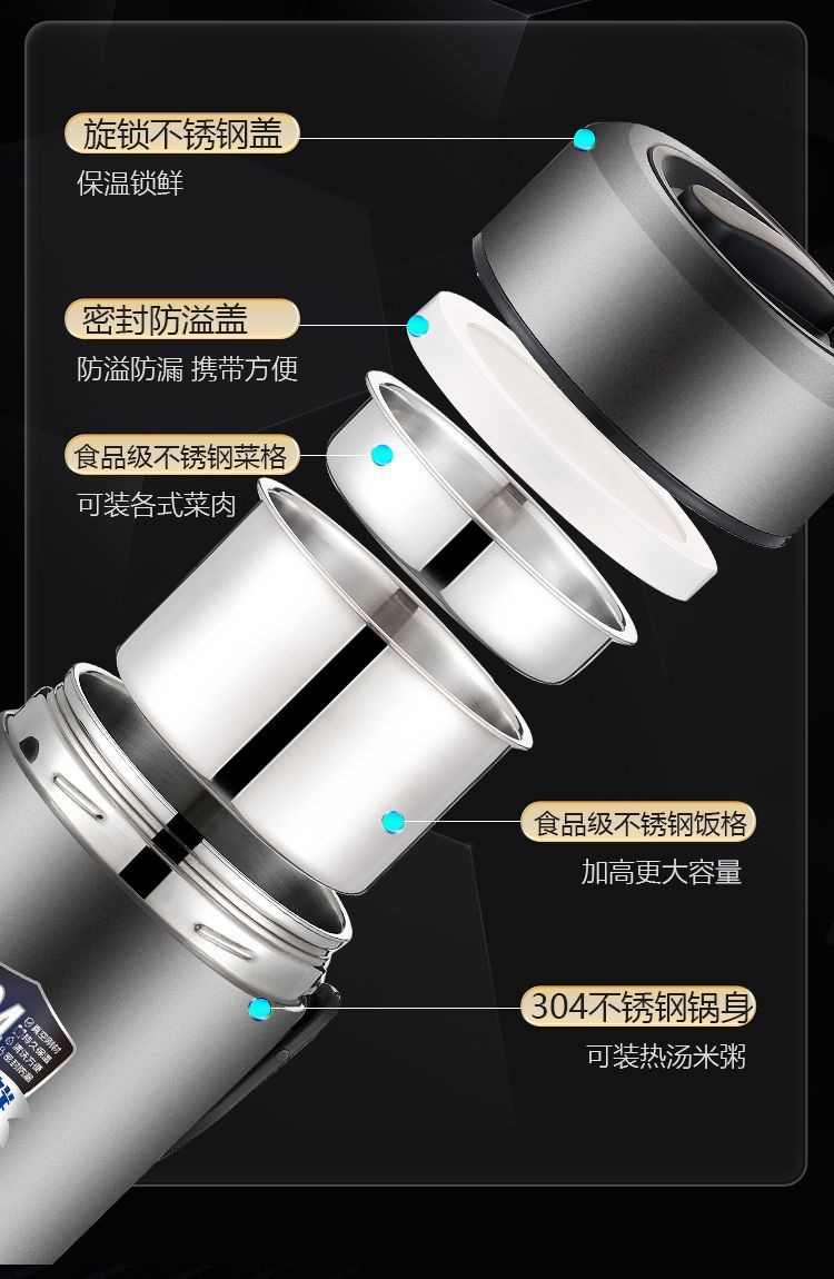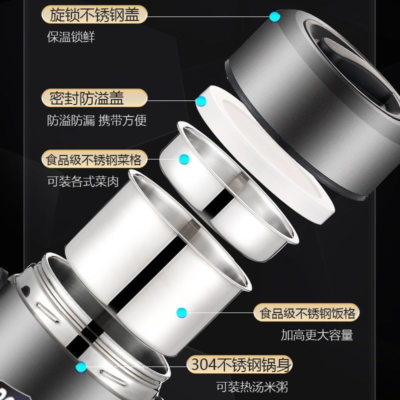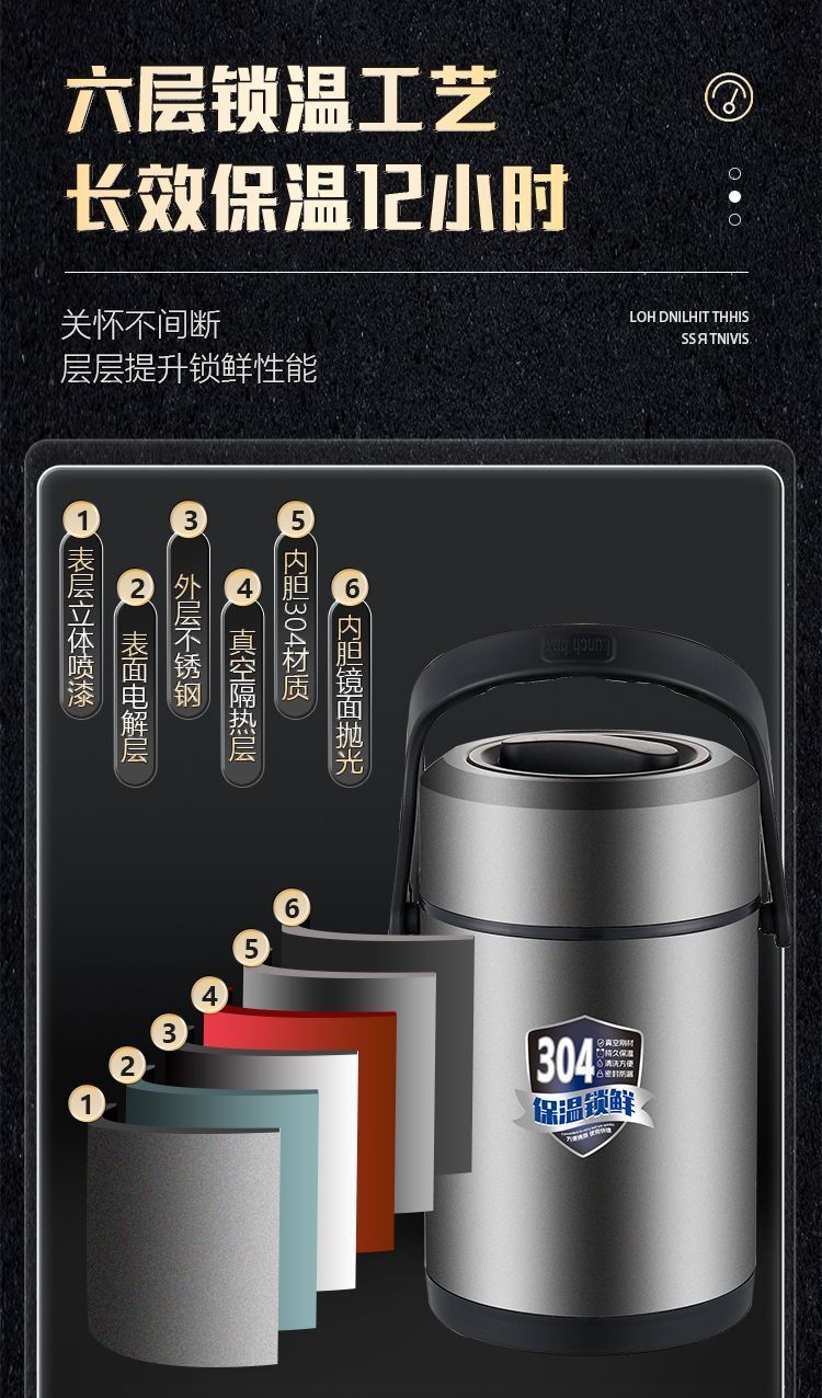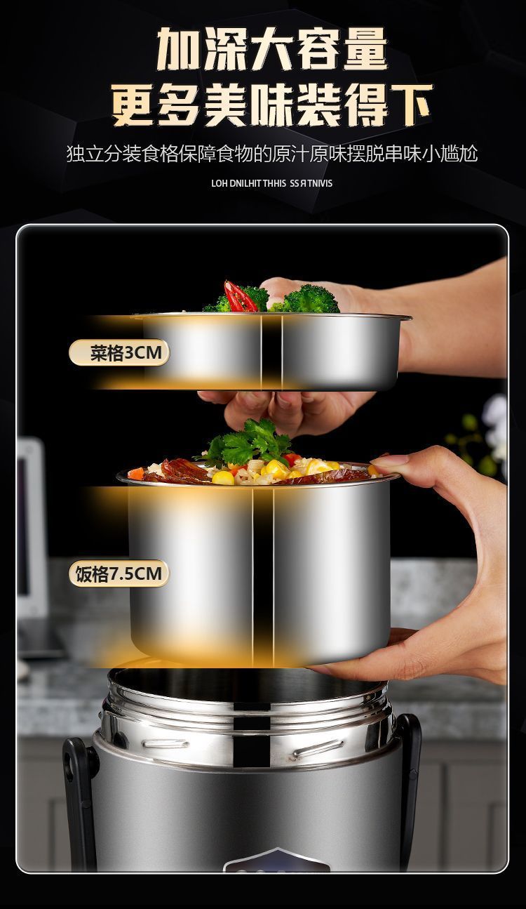 【保温12小时】304不锈钢保温饭盒大容量真空三层学生便当盒桶