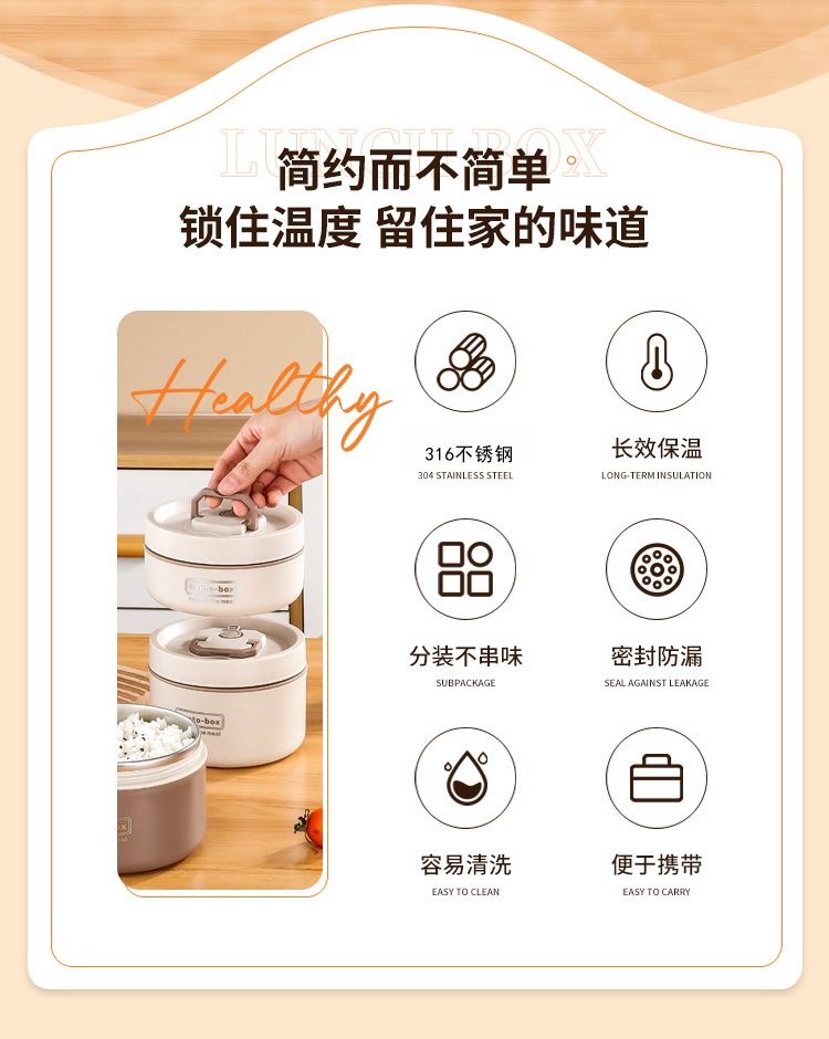 | creamy white 1 large 1 small two-layer free thermal bag tableware(米白色1大1小两层送保温袋餐具) | USD $9.39 | 999999 piece available |