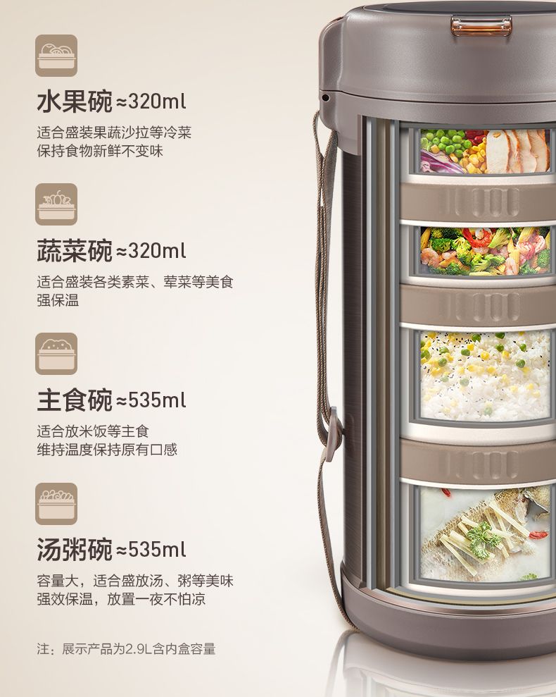 | [brown-316l style] 2.8l four-layer 1840ml(【褐色-316L款】2.8L四层1840ml) | USD $50.39 | 999999 piece available |