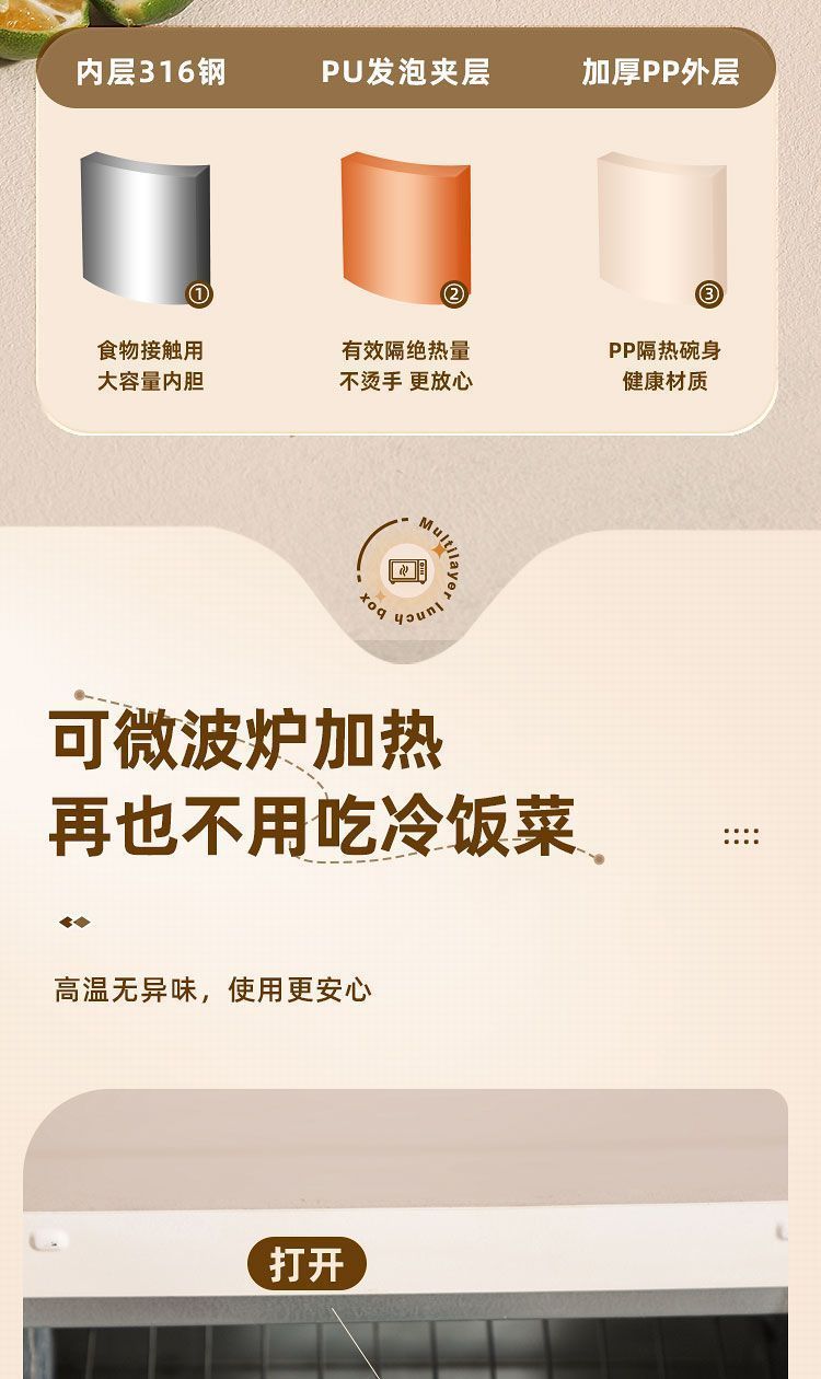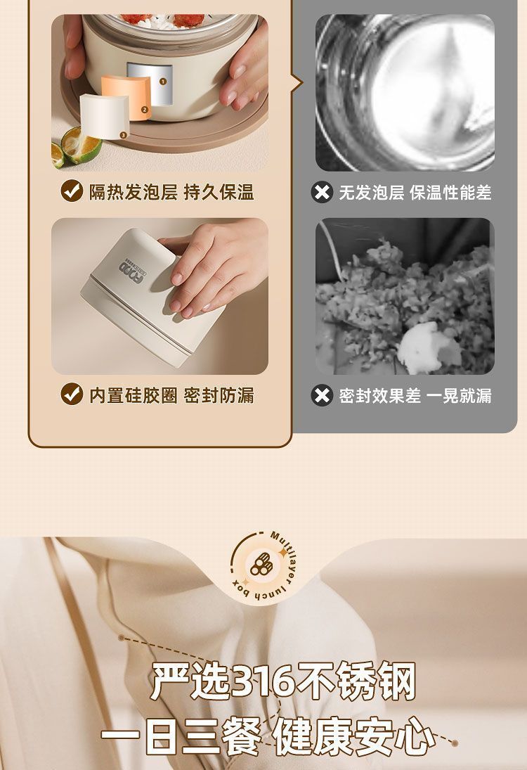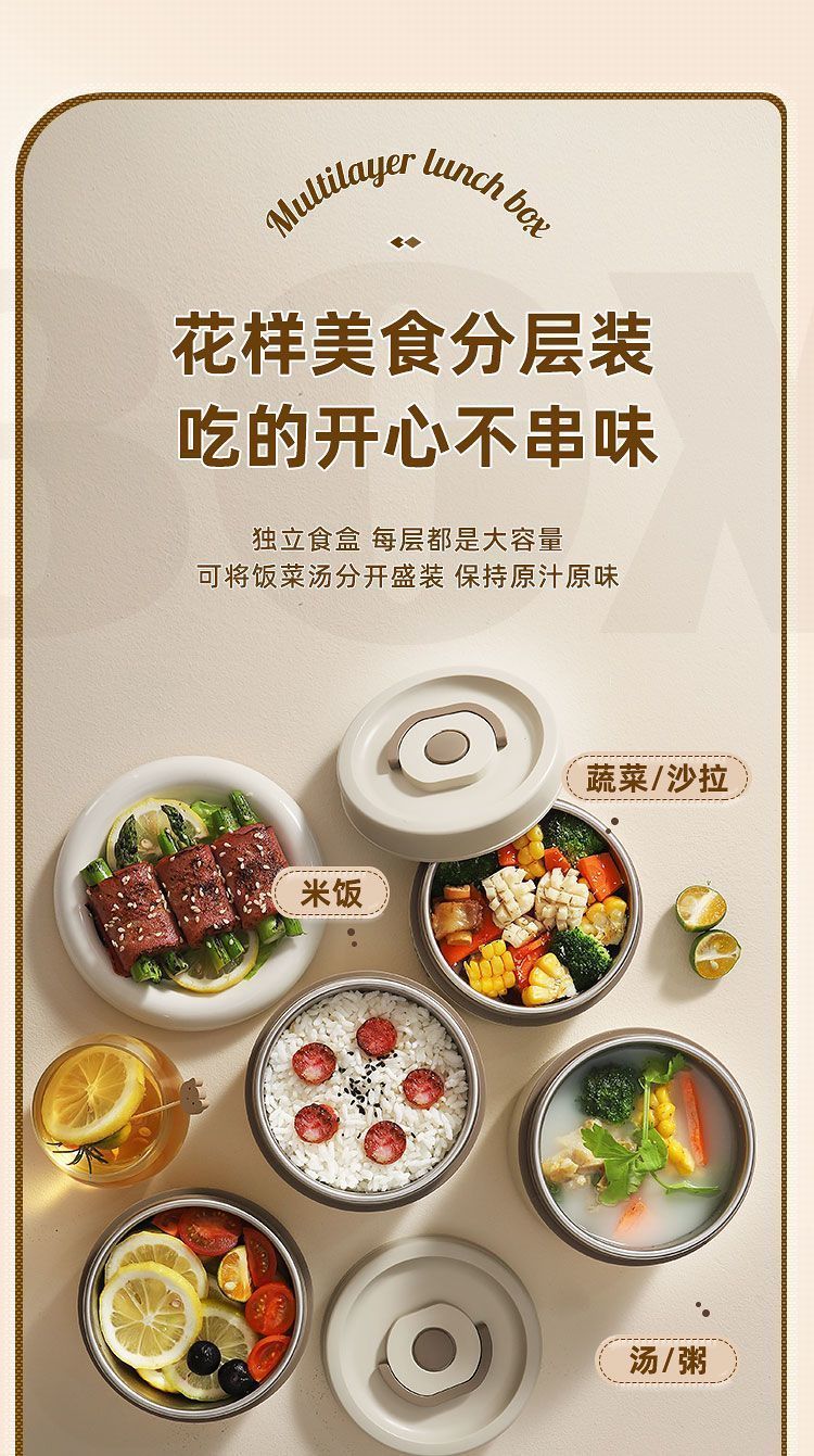 德国不锈钢保温饭盒带盖上班族多层便当盒防漏学生带饭便携餐饭盒