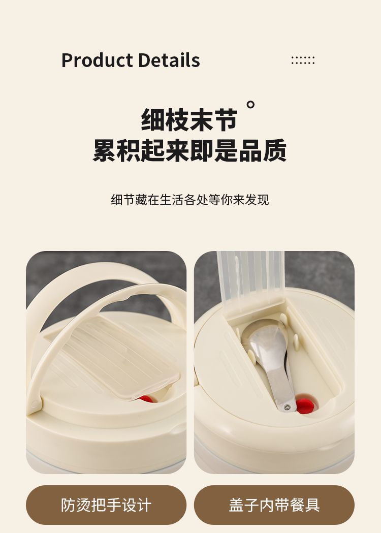 | beige 1.3l with folding spoon + thermal bag(米白1.3L送折叠勺+保温袋) | USD $10.8 | 999999 piece available |