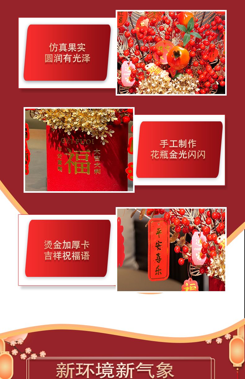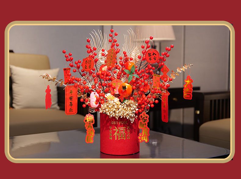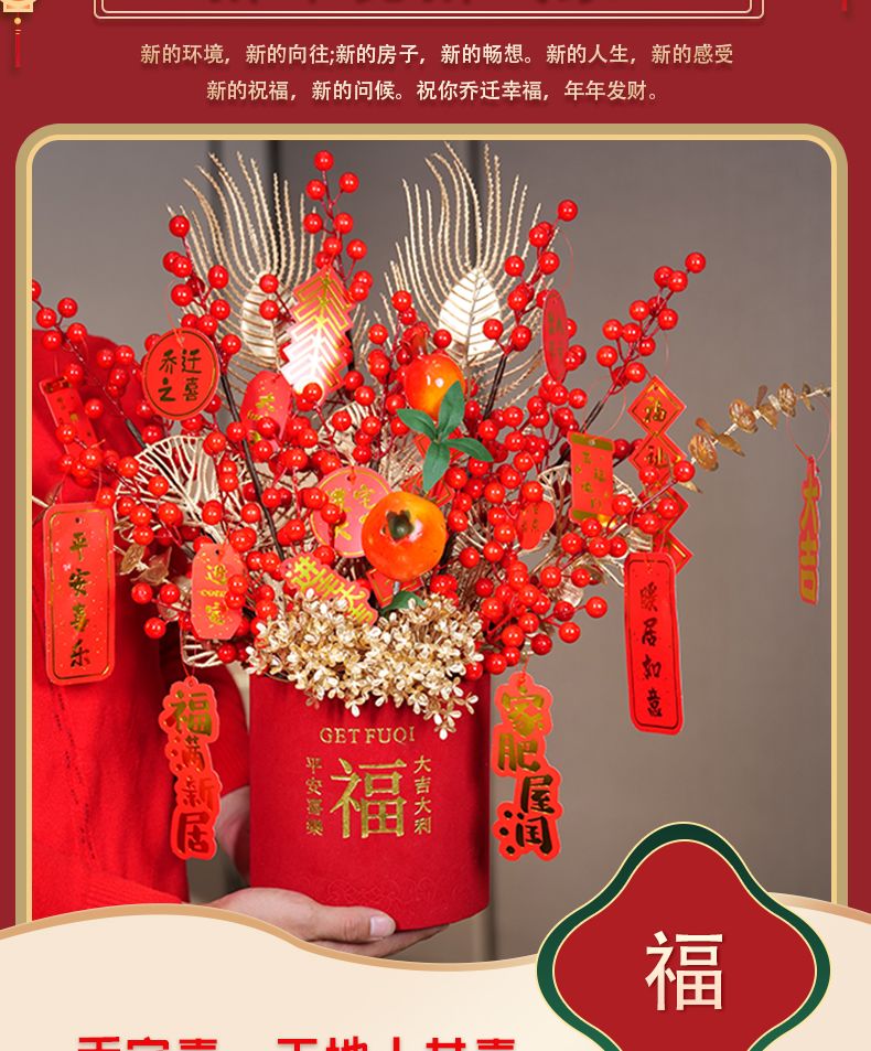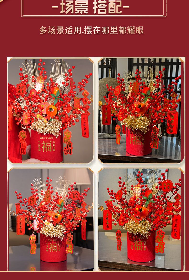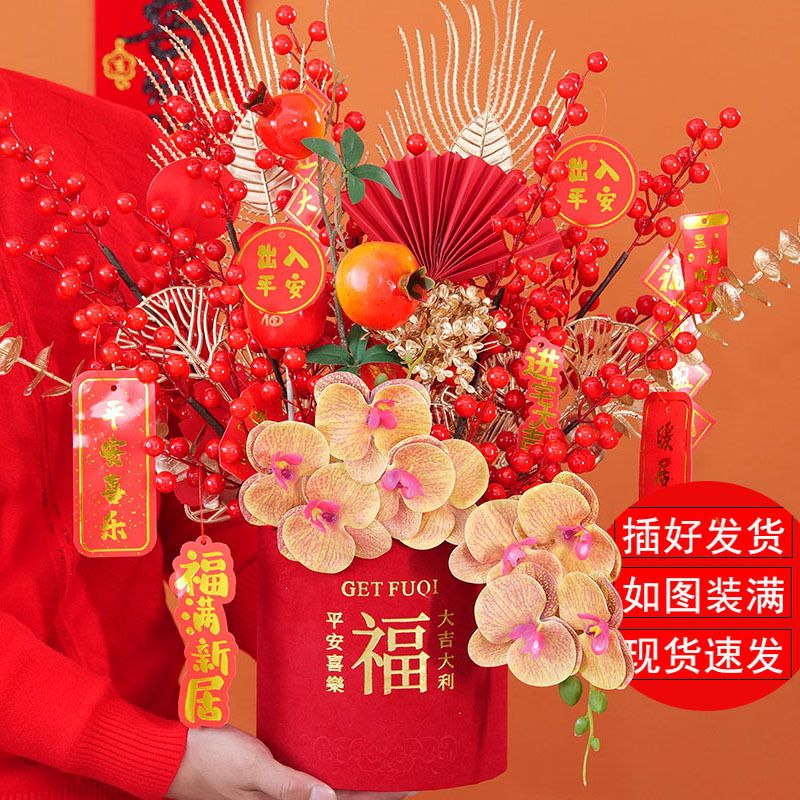 【成品插好发货】春节年宵花发财果摆件新年乔迁福桶客厅仿真花