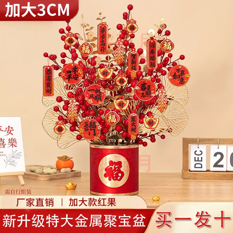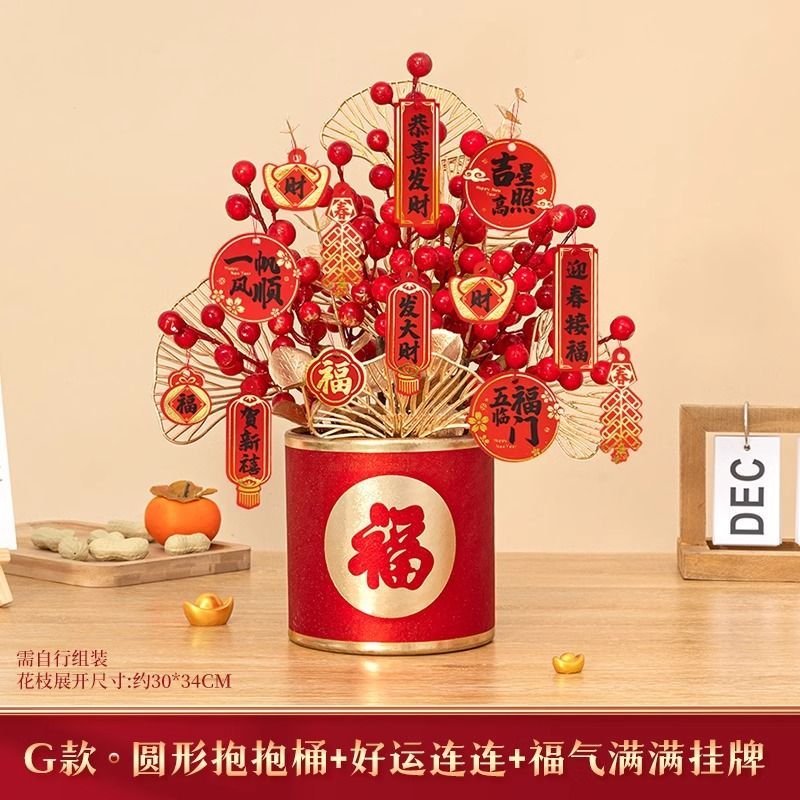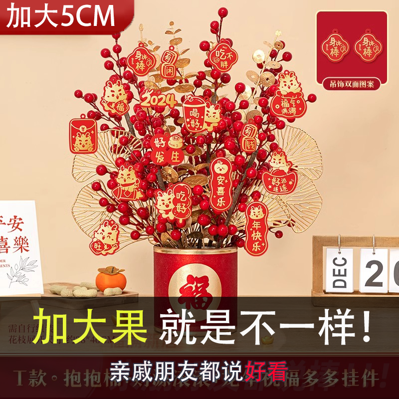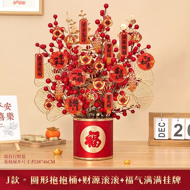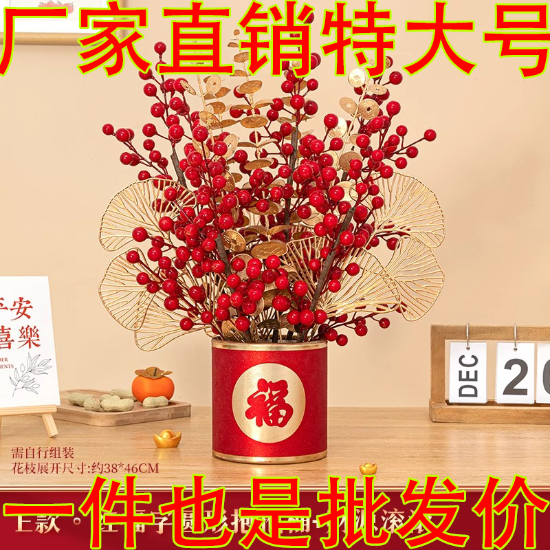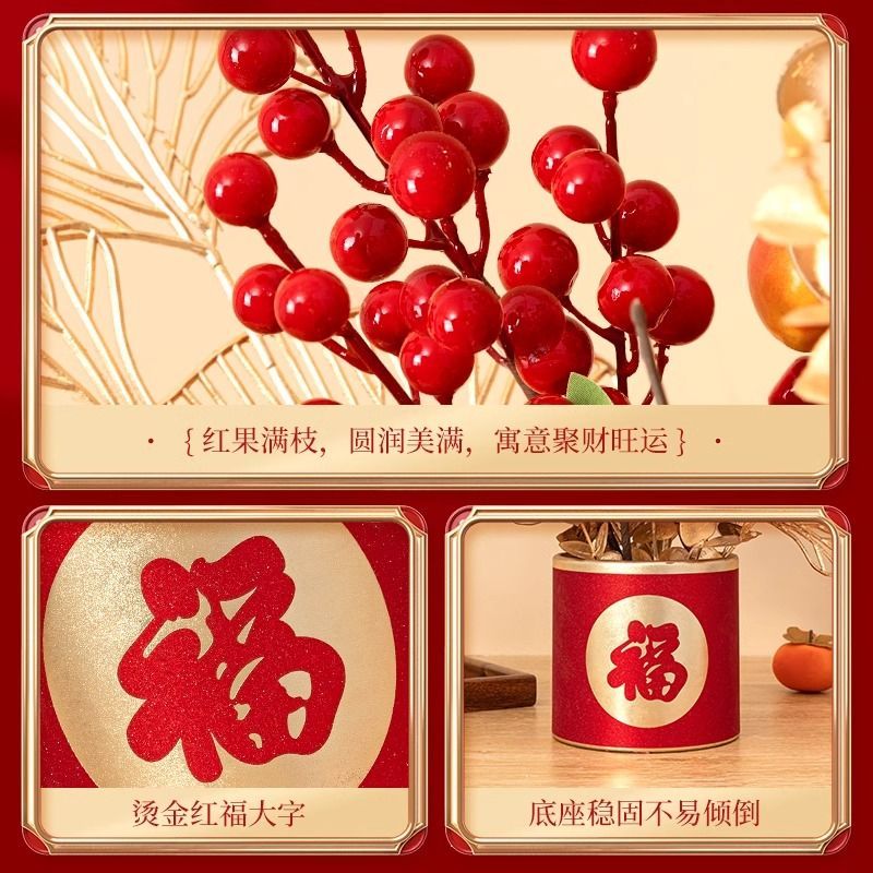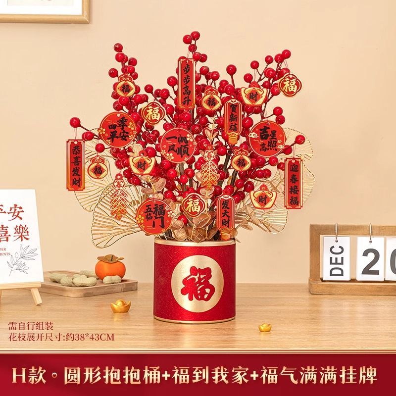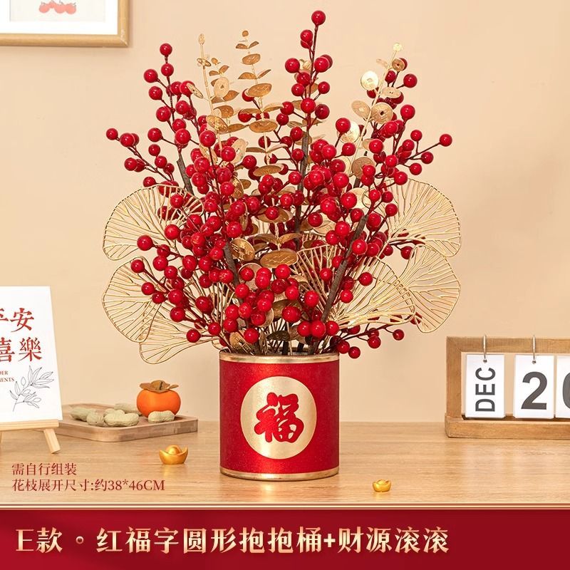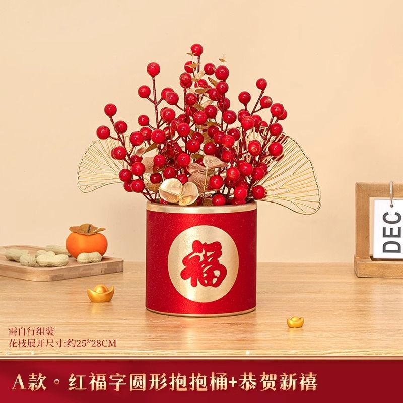 乔迁之喜福桶摆件新婚房布置发财果红果冬青客厅玄关喜庆装饰用品