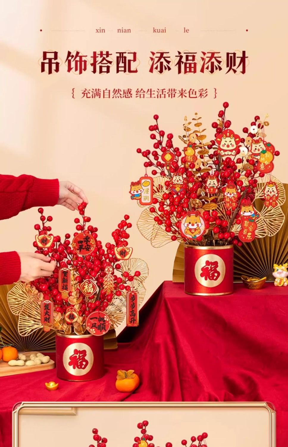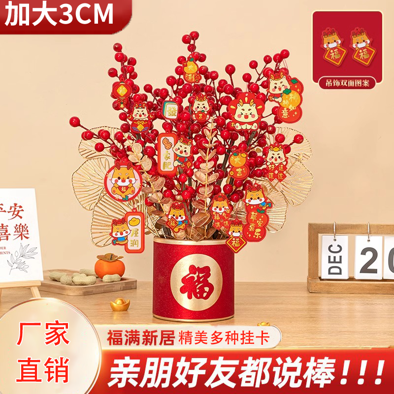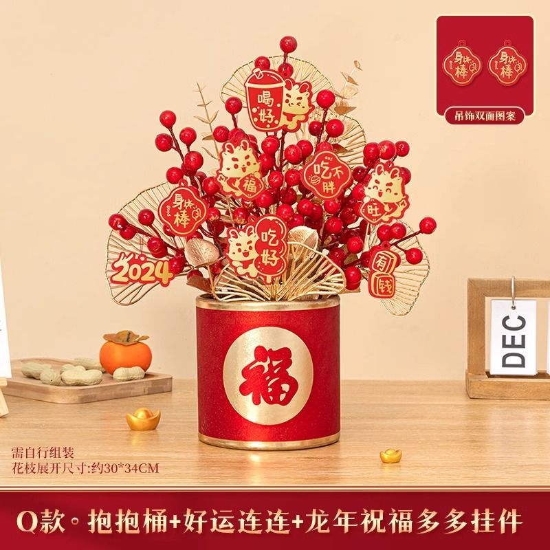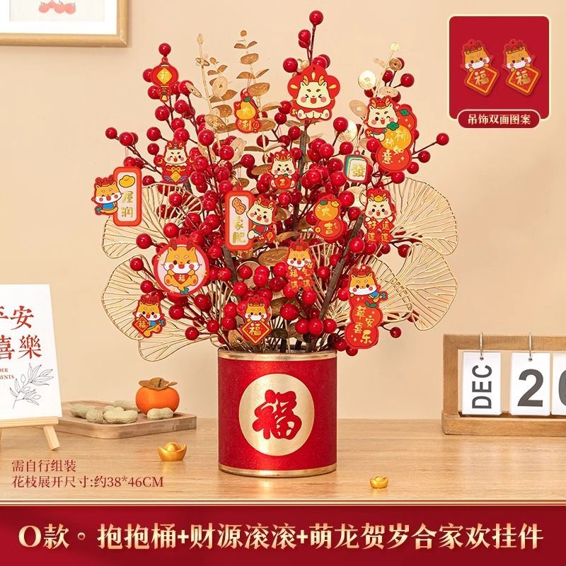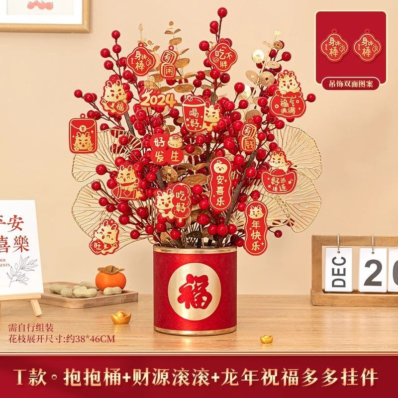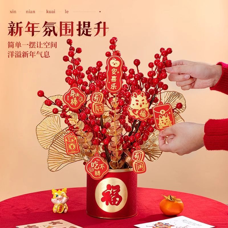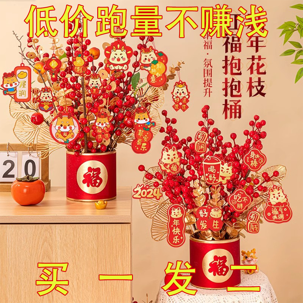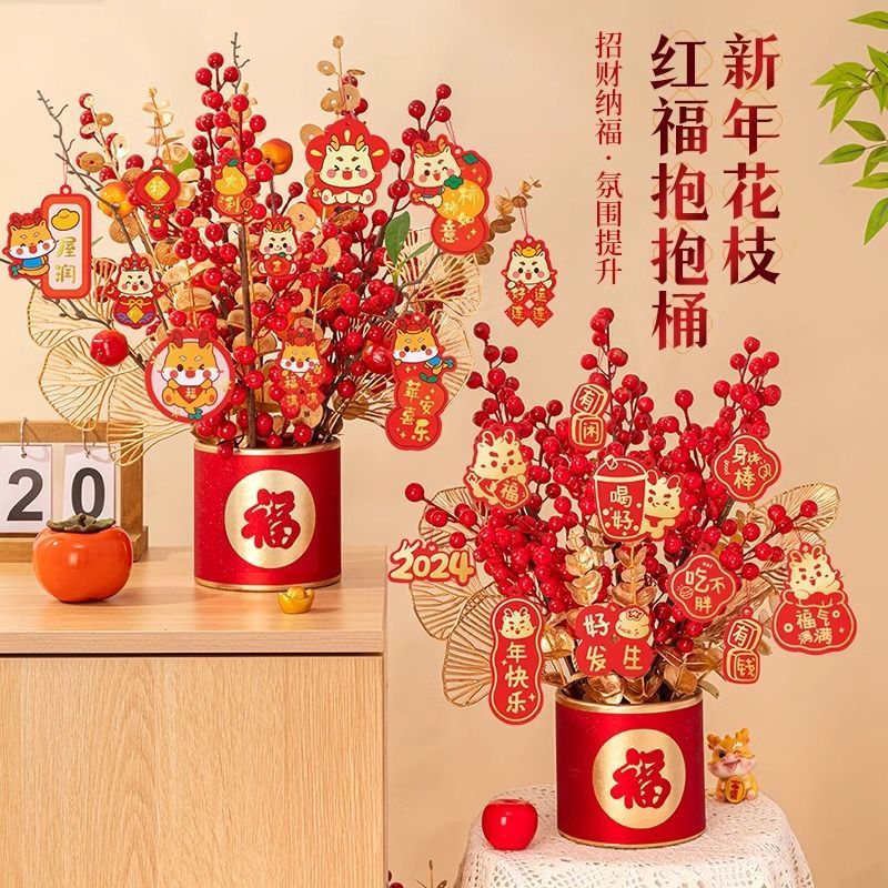 乔迁之喜福桶摆件新婚房布置发财果红果冬青客厅玄关喜庆装饰用品