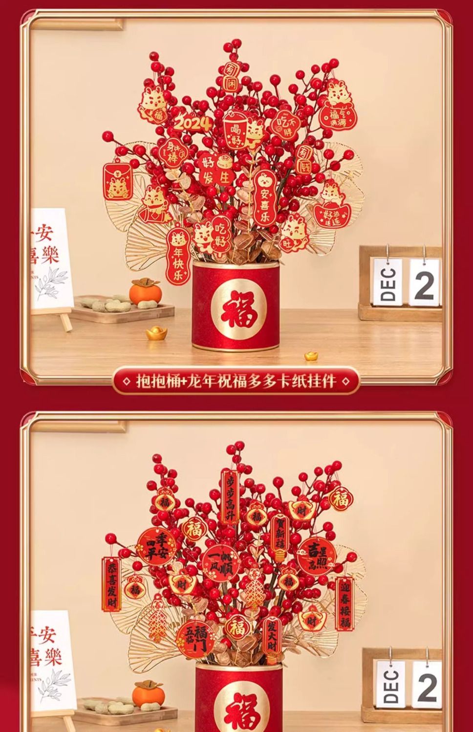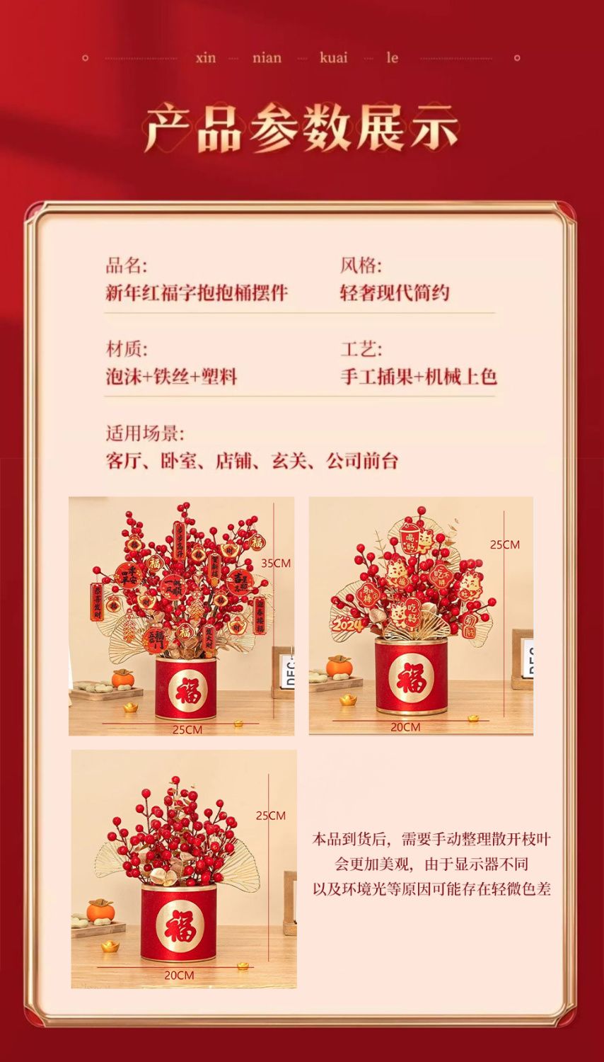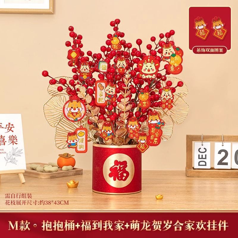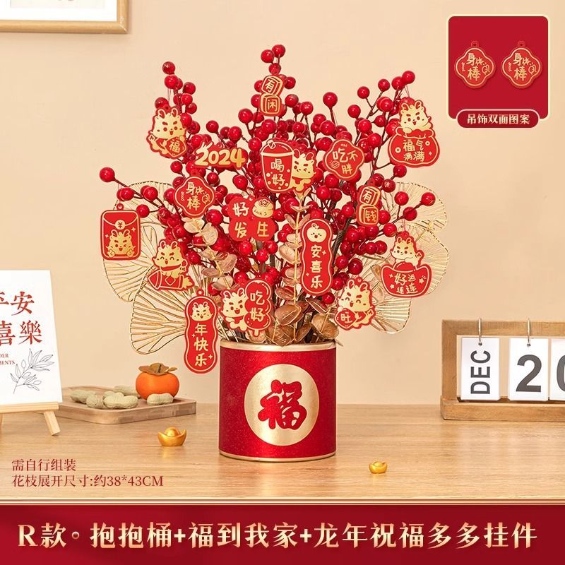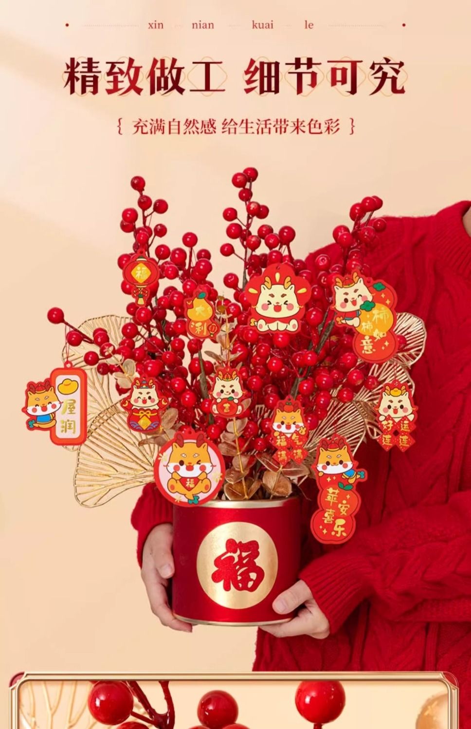 乔迁之喜福桶摆件新婚房布置发财果红果冬青客厅玄关喜庆装饰用品