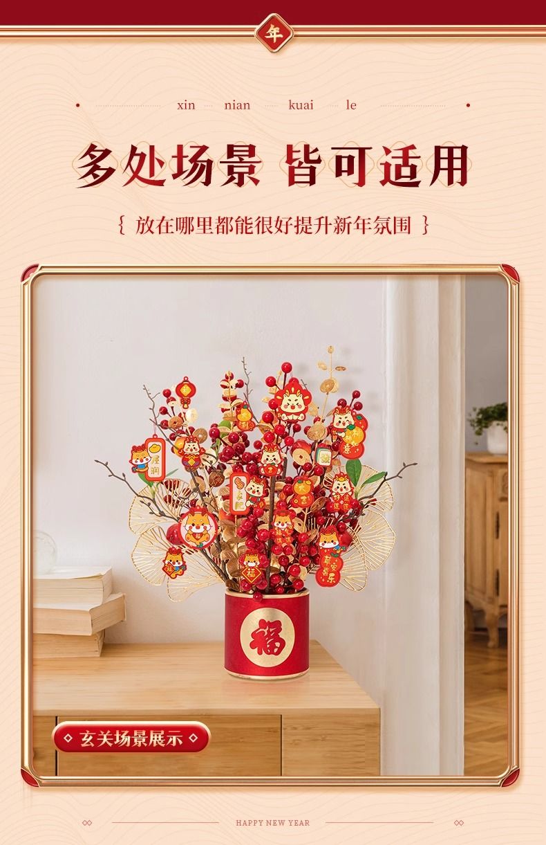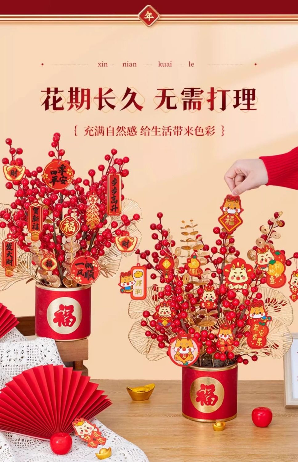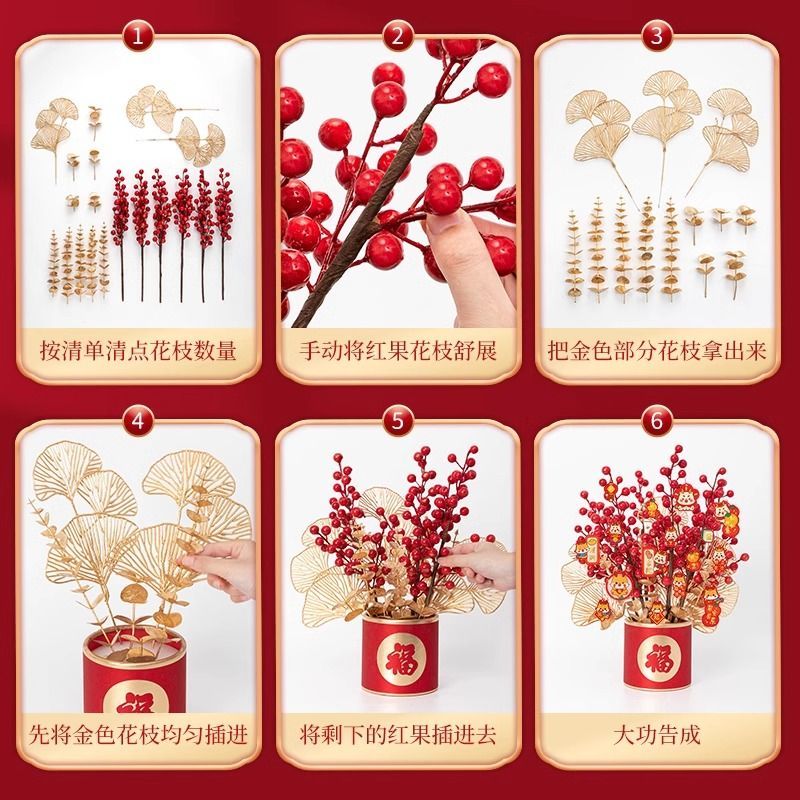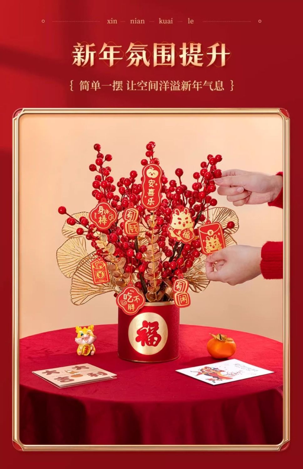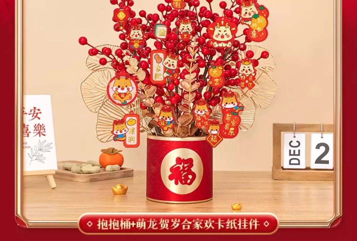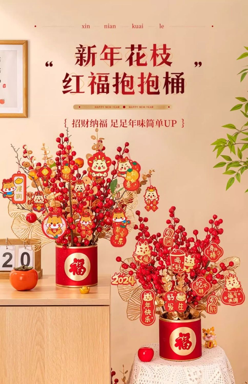 乔迁之喜福桶摆件新婚房布置发财果红果冬青客厅玄关喜庆装饰用品