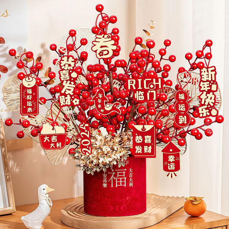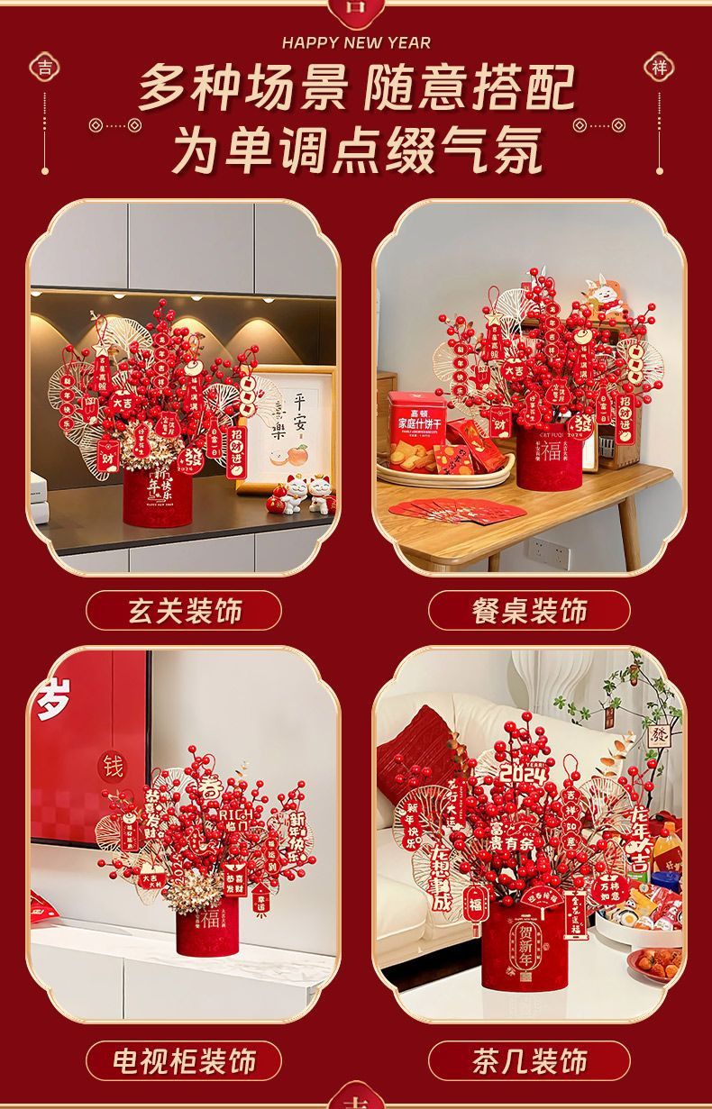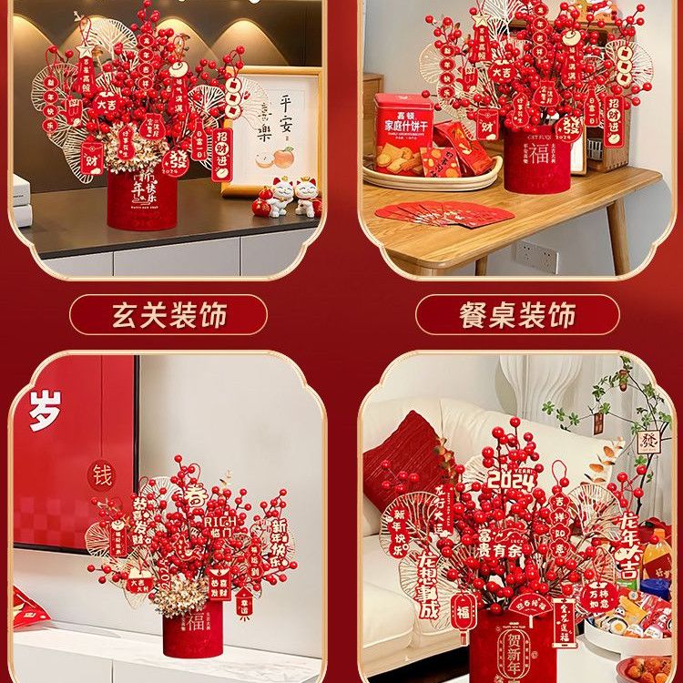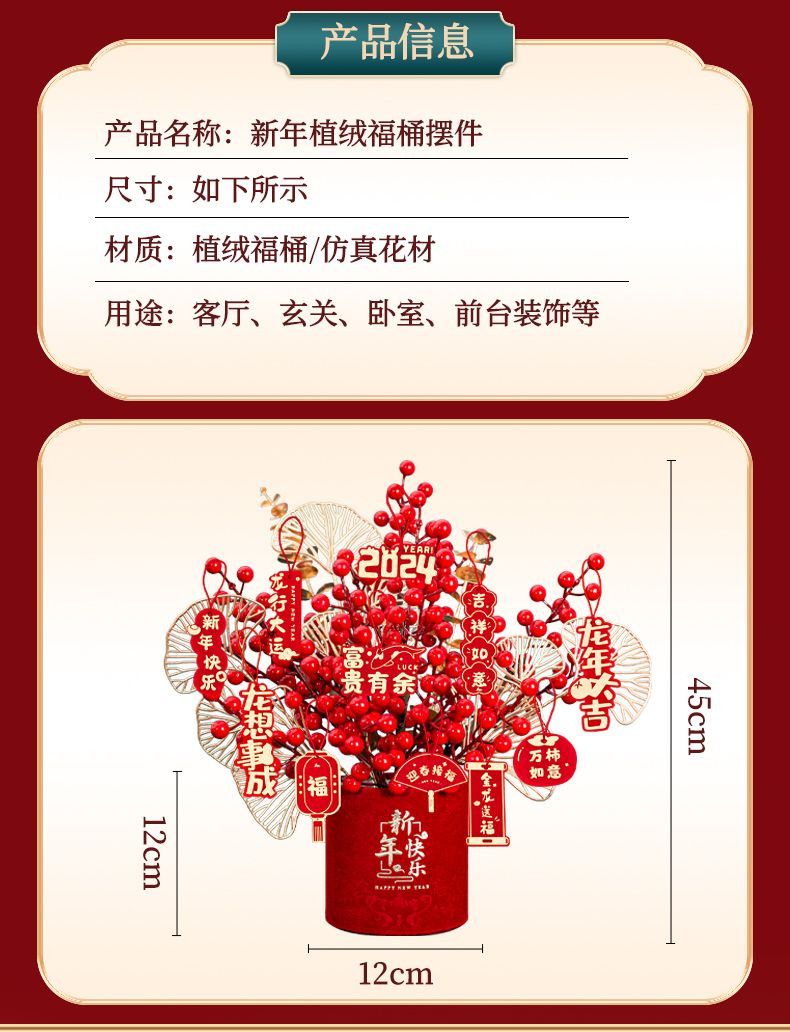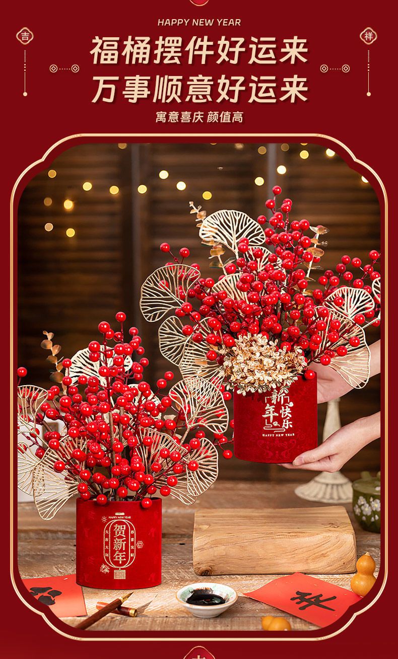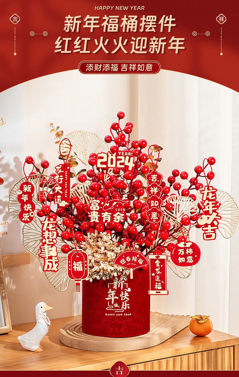 2025蛇年春节装饰品客厅桌面摆件新年福桶发财果过年氛围场景布置