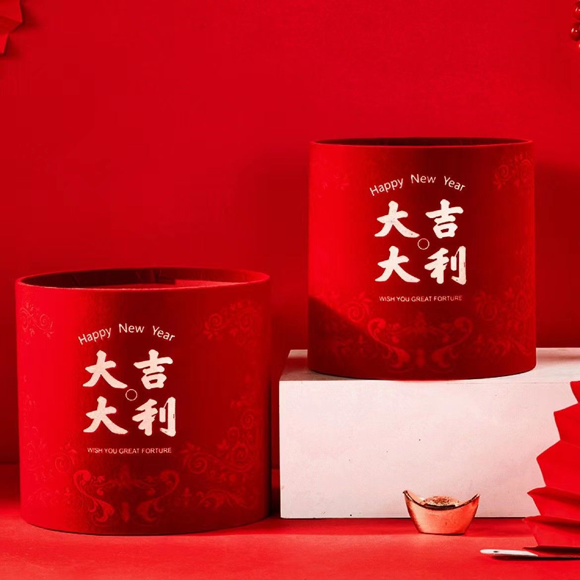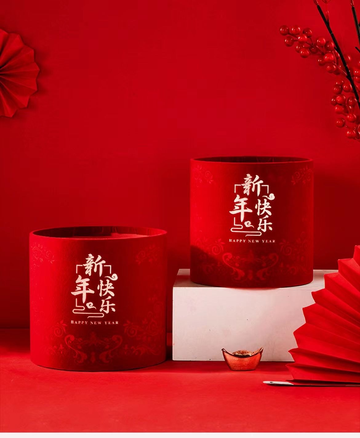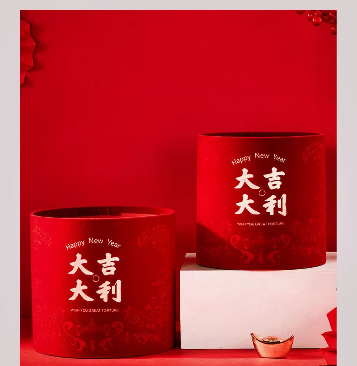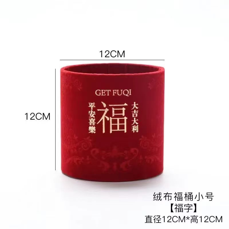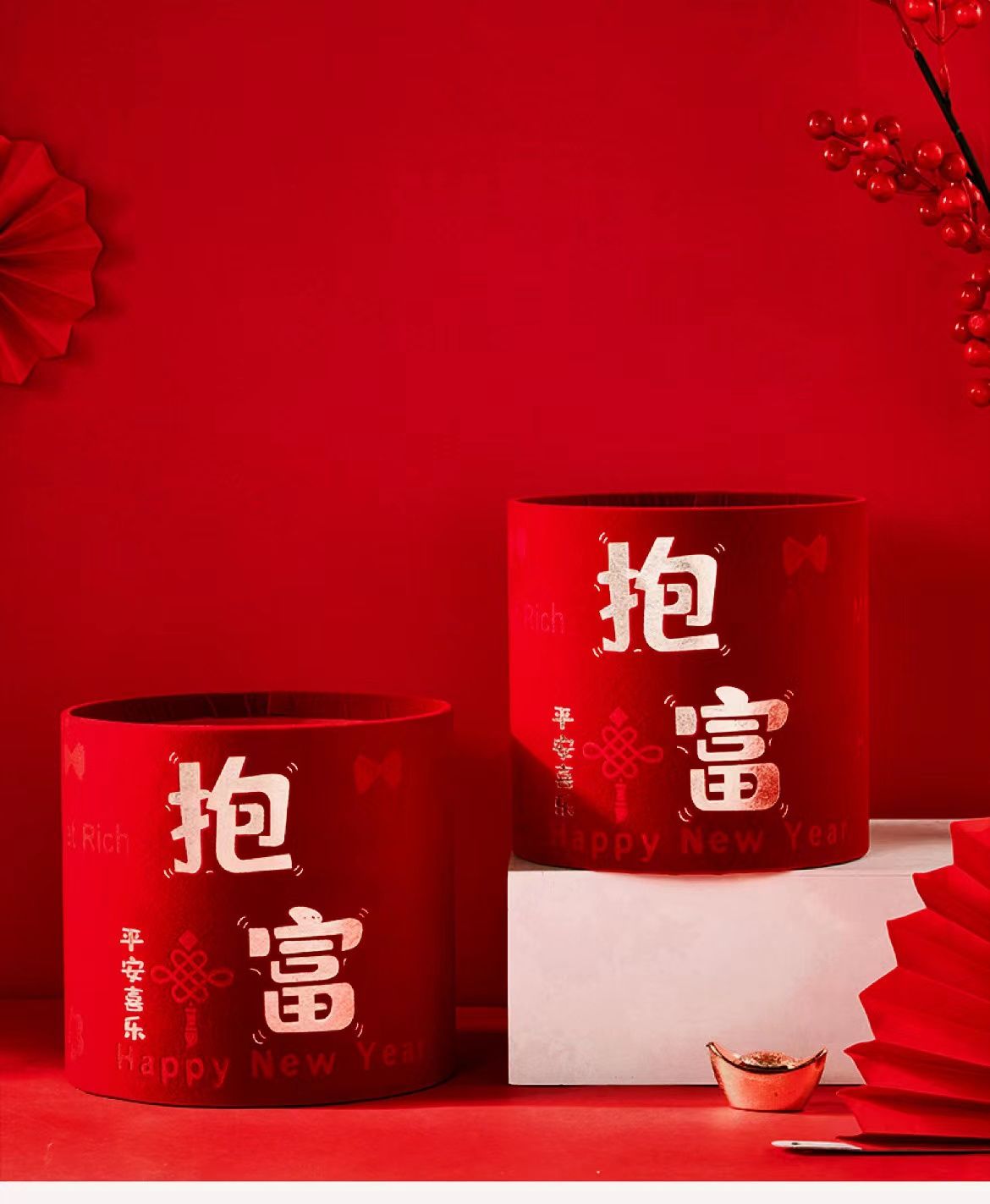 新年福桶抱抱桶虎年恭贺新春冬青银柳插花桶绒布年宵花盒花艺折扇