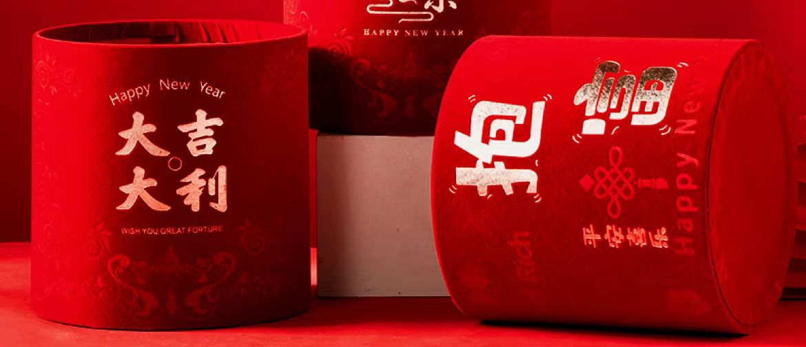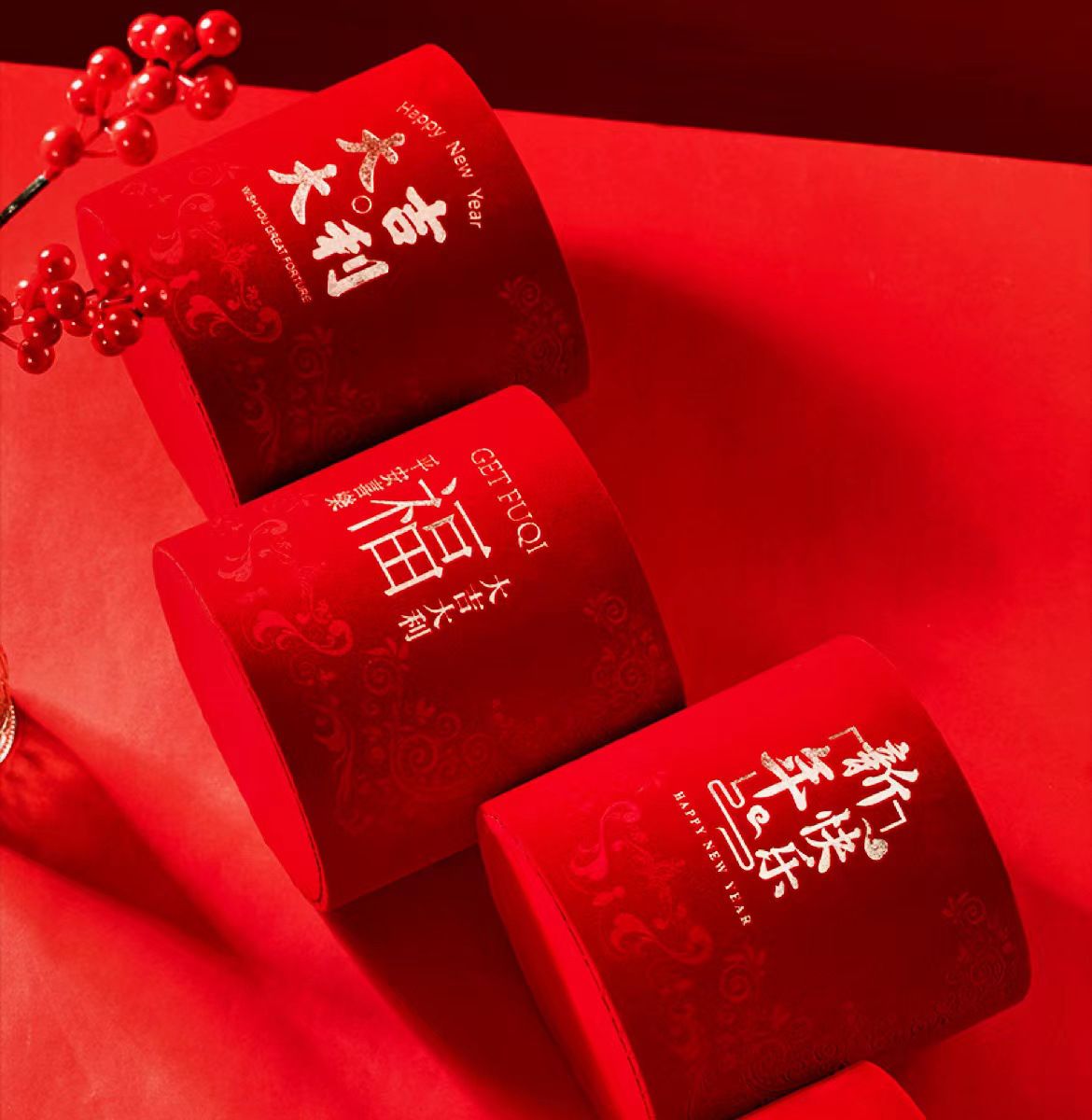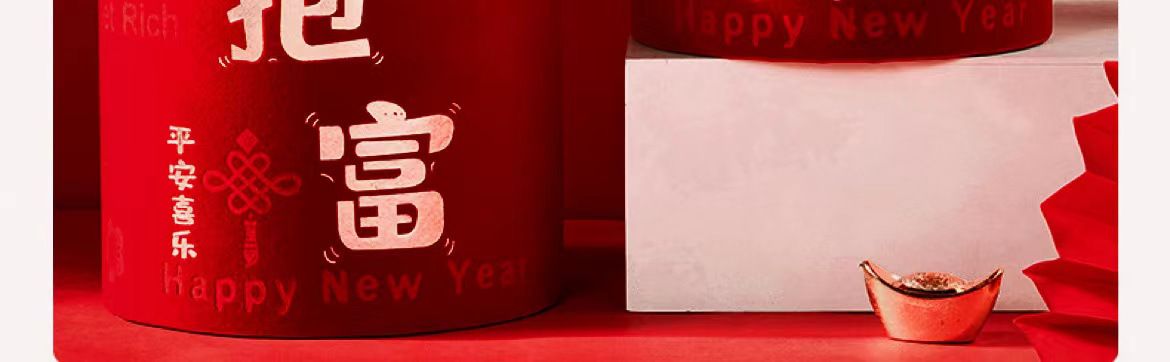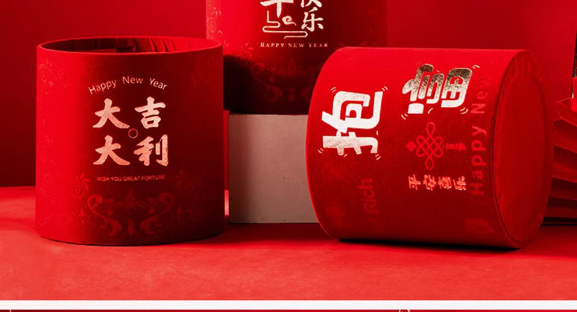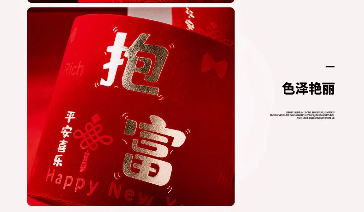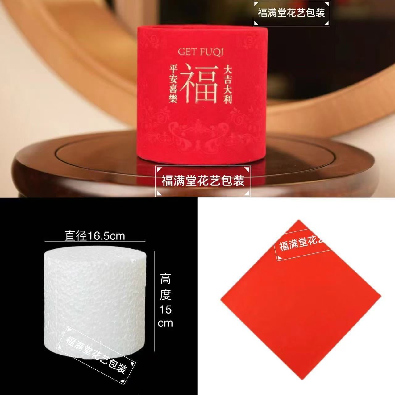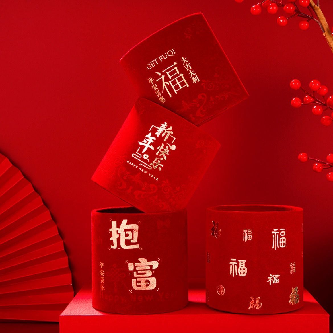 新年福桶抱抱桶虎年恭贺新春冬青银柳插花桶绒布年宵花盒花艺折扇
