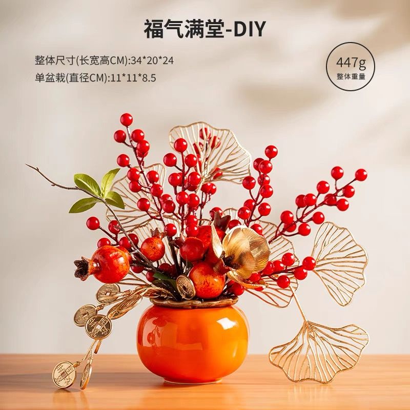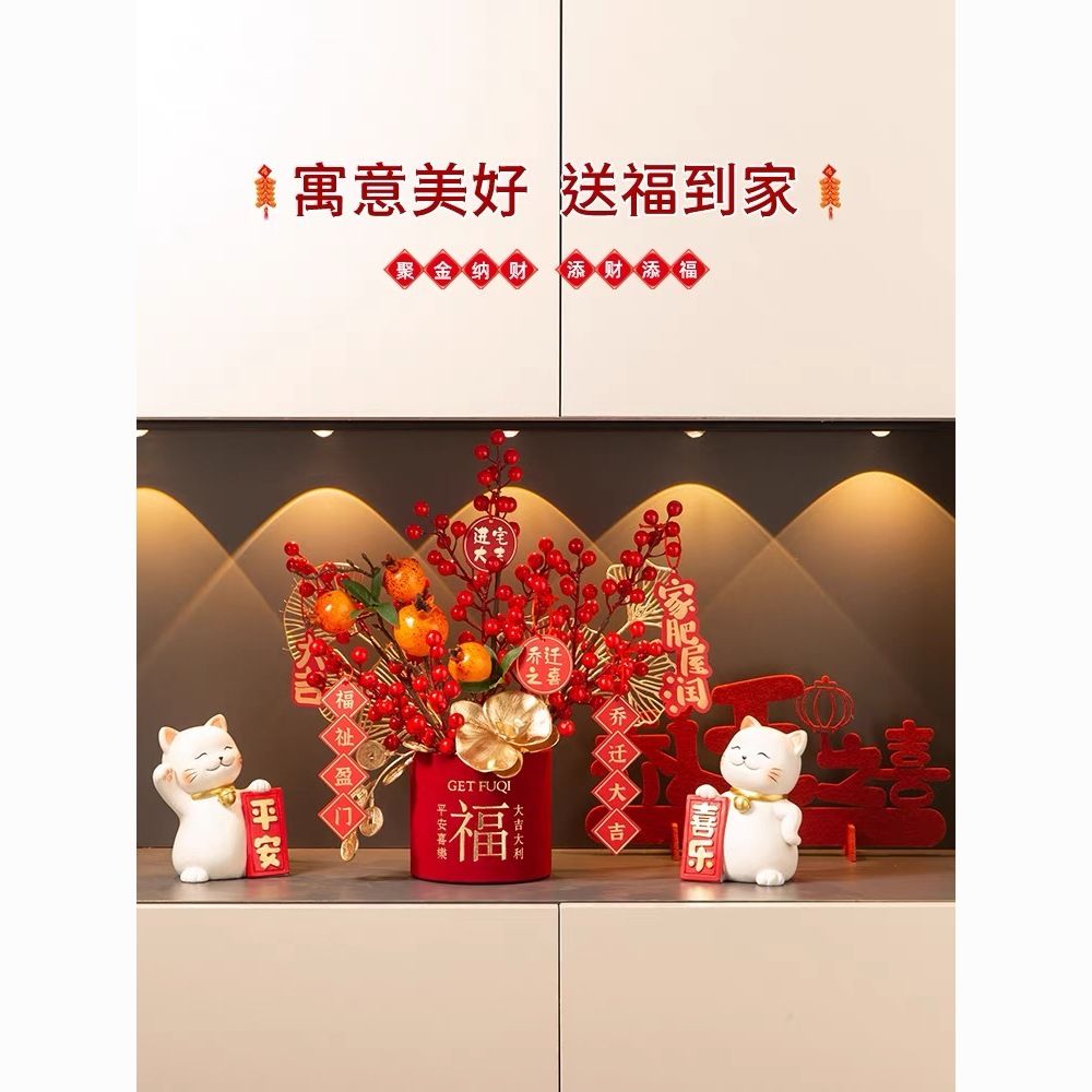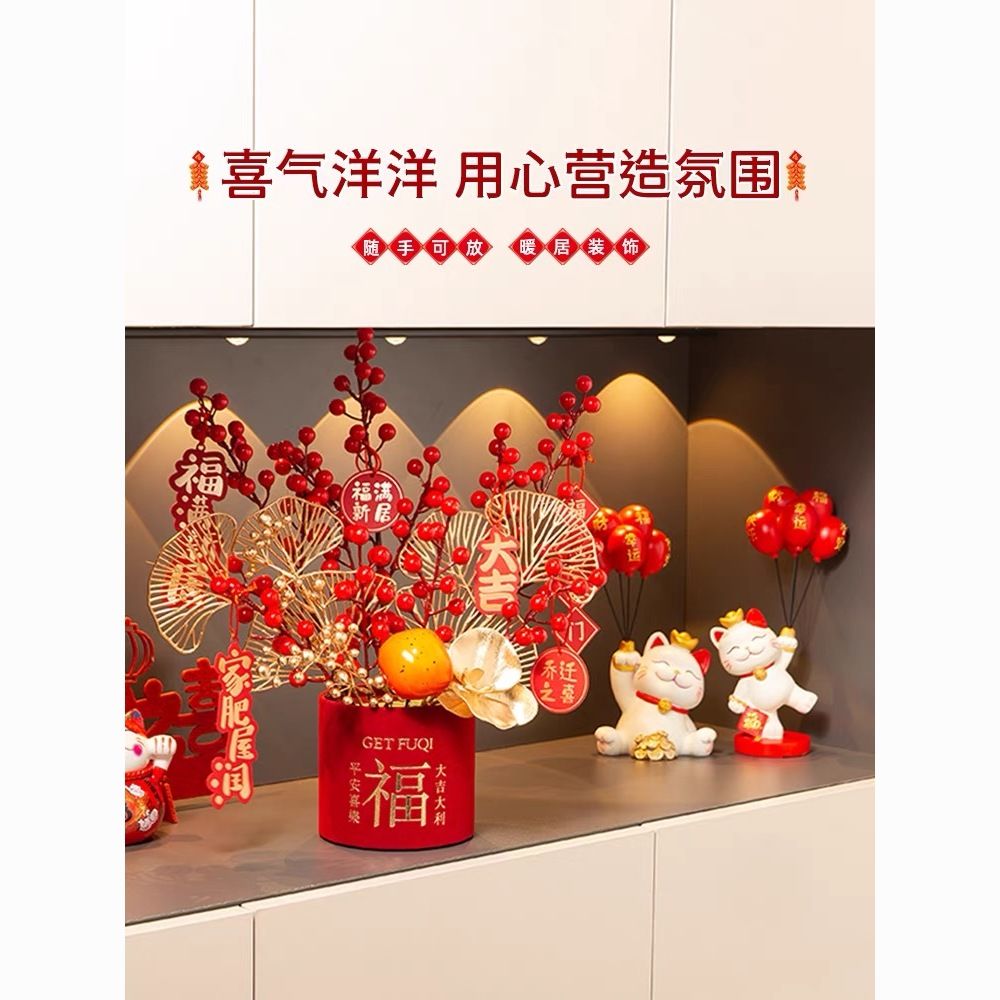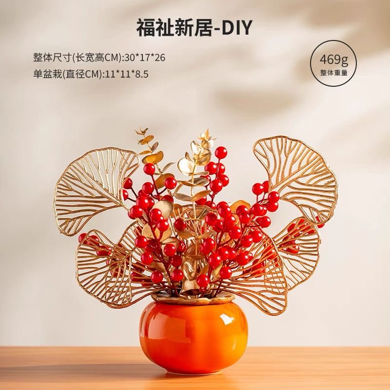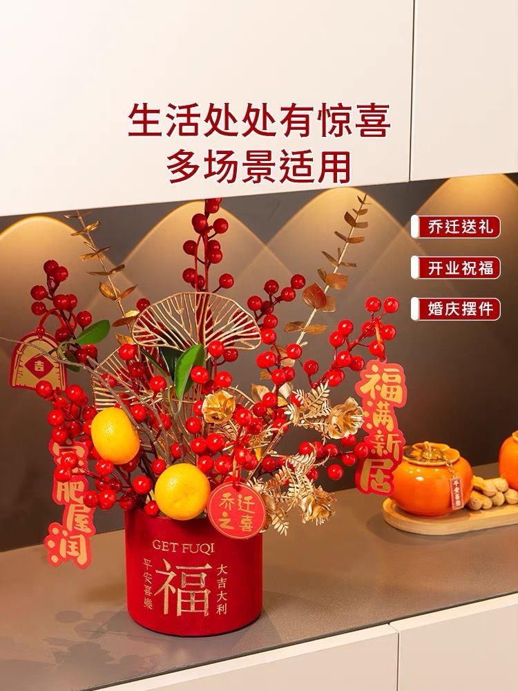 摆件新年抱抱红色福桶乔迁冬青银柳装饰插花发财花艺礼盒年宵花盒