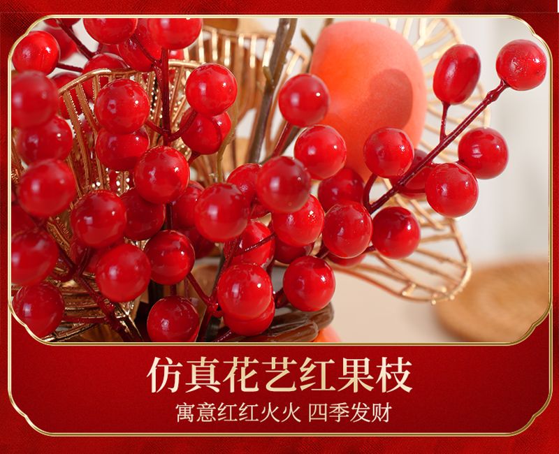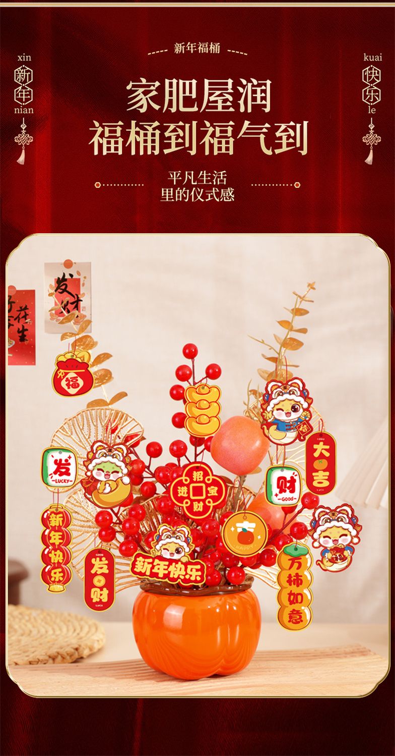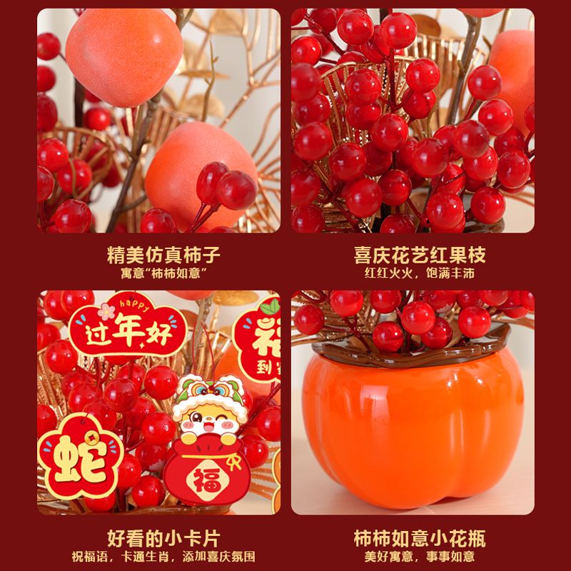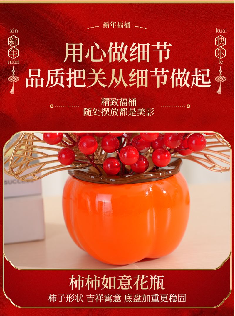 过年发财果仿真花柿子摆件新年氛围装饰品客厅春节蛇年假花福桶