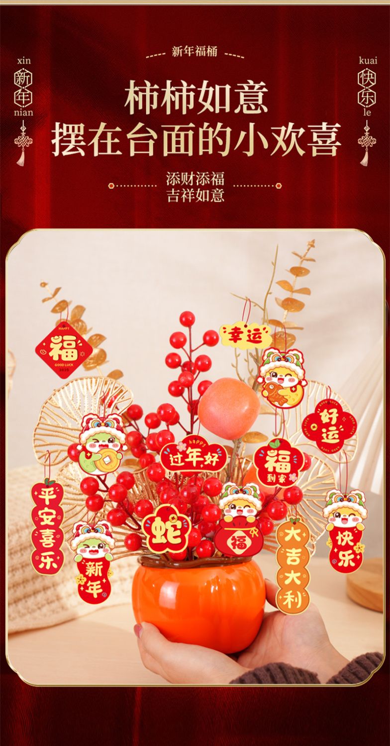 | lucky persimmon ornaments + snake year ornaments(柿柿如意摆件+蛇年挂饰) | USD $3.35 | 999999 piece available |