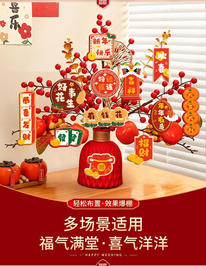 | [new 2025] chinese hawthorn + rich flower blessing bucket(【2025年新款】红果累累+有钱花 福桶) | USD $5.75 | 999999 piece available |