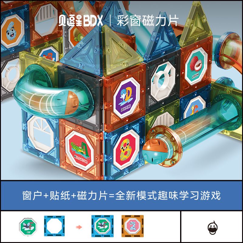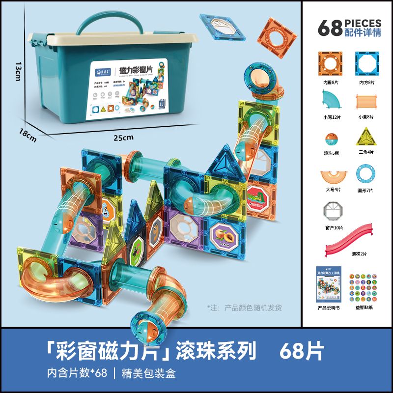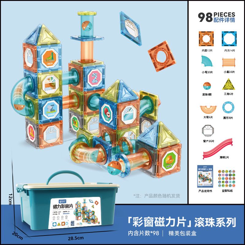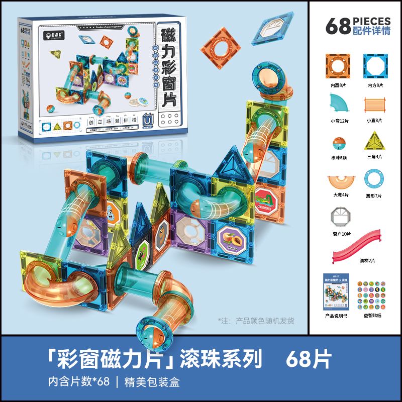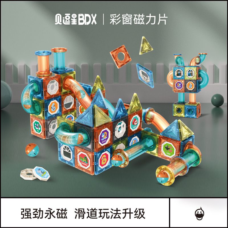 儿童彩窗益智百变磁力片滚珠管道磁力轨道玩具拼装拼图男女孩礼物