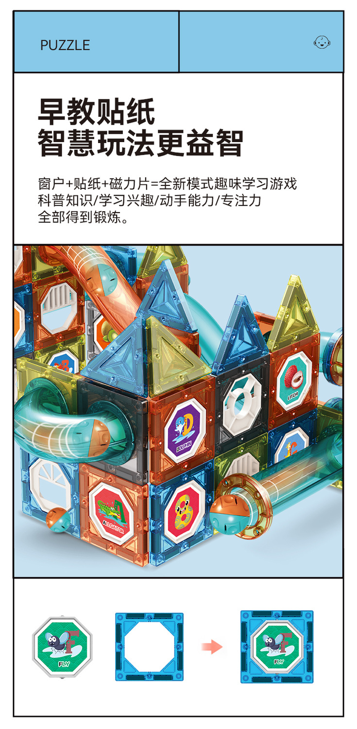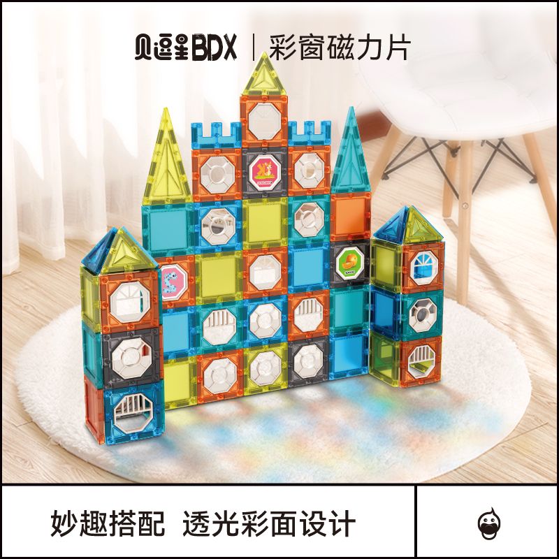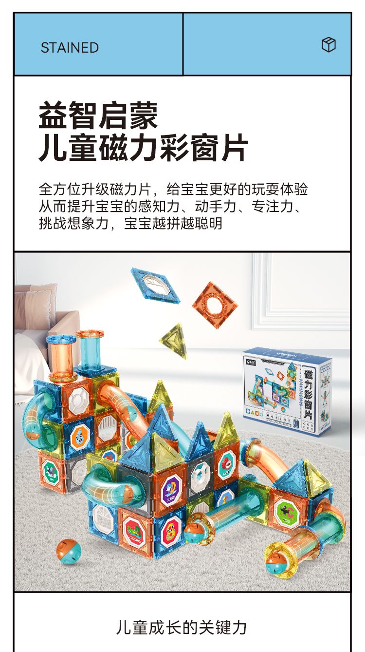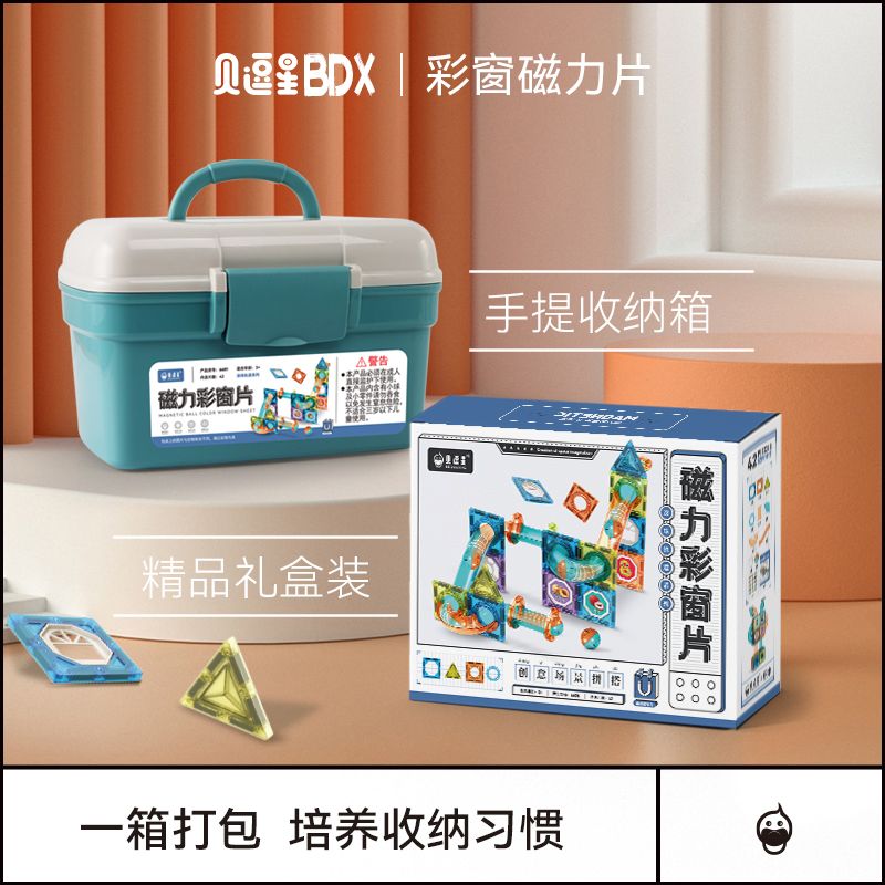 儿童彩窗益智百变磁力片滚珠管道磁力轨道玩具拼装拼图男女孩礼物