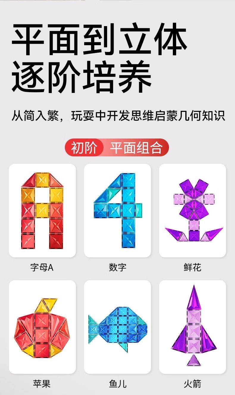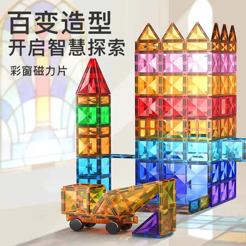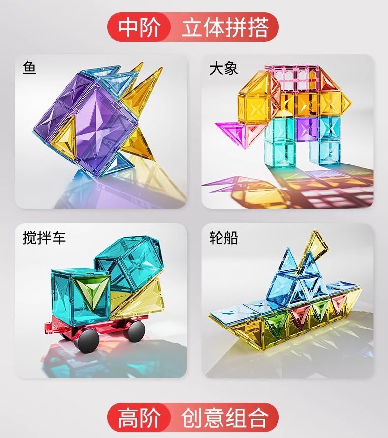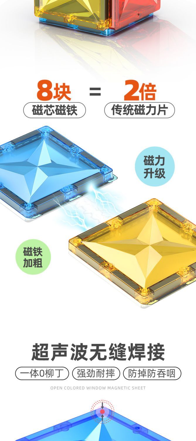4D钻面彩窗磁力片星钻积木强磁磁铁拼接装益智男女孩玩具新年礼物