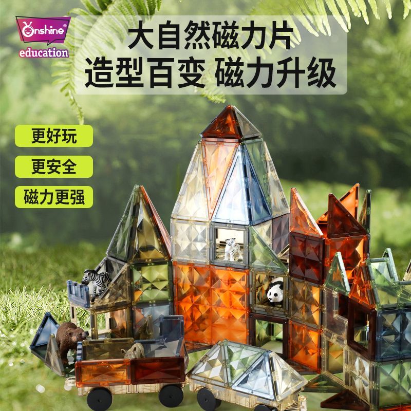 onshine磁力片大自然小车磁吸补充装图册幼儿园男女孩磁力贴玩具