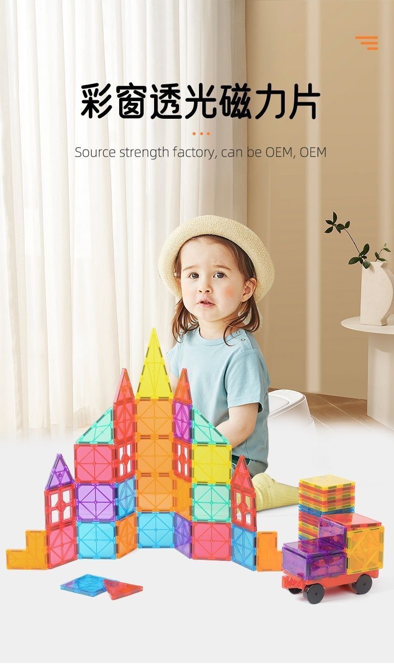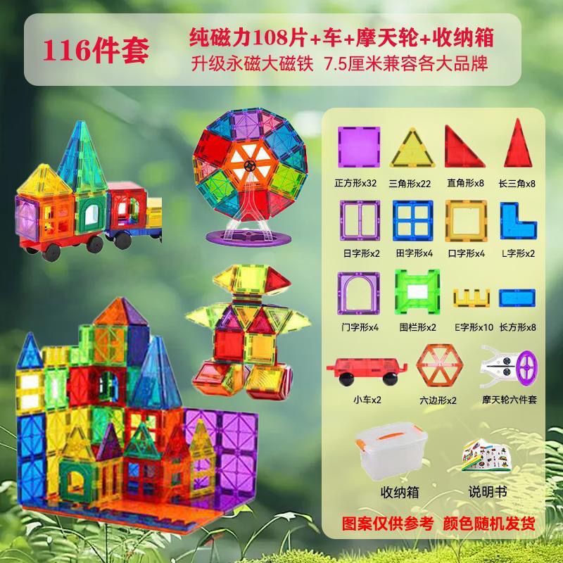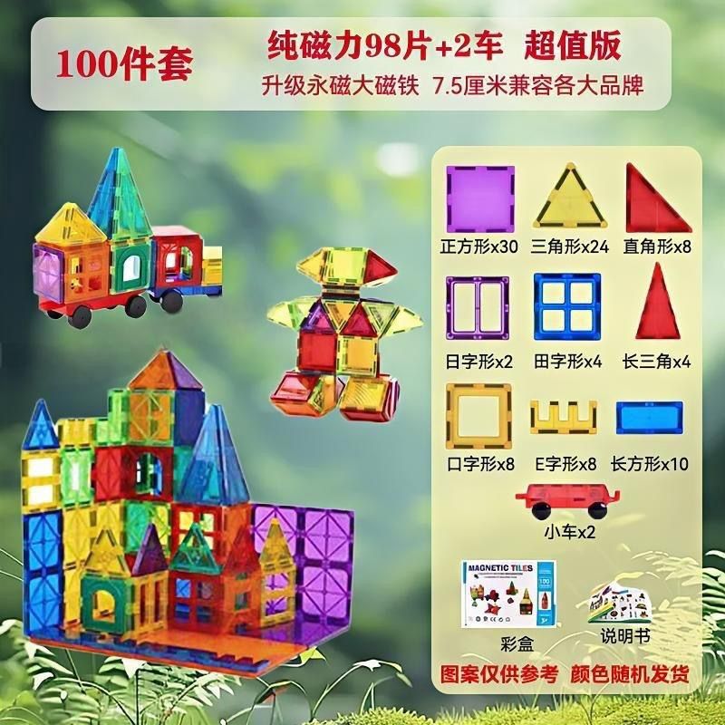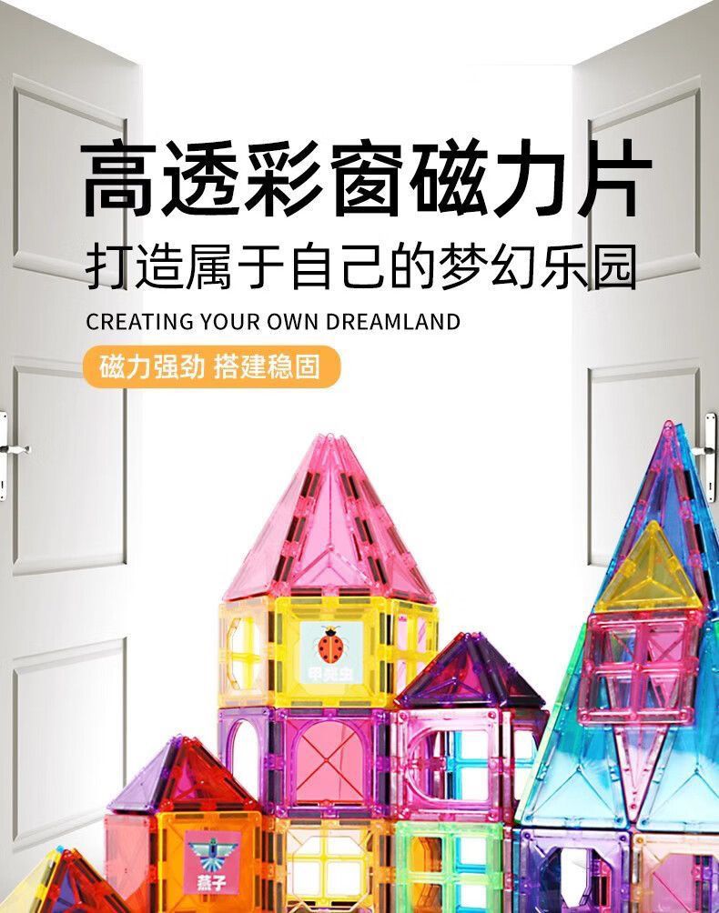 大号彩窗磁力片儿童拼装百变磁性积木 宝宝城堡积木强磁一整箱【2