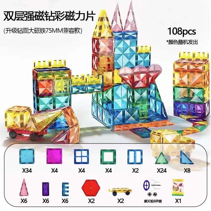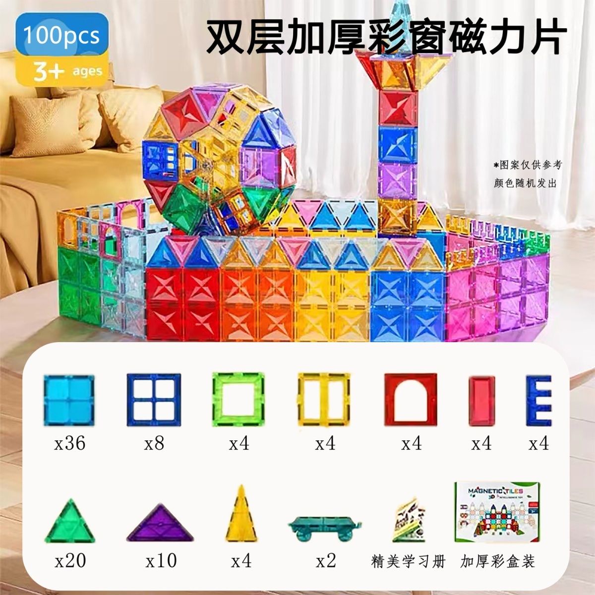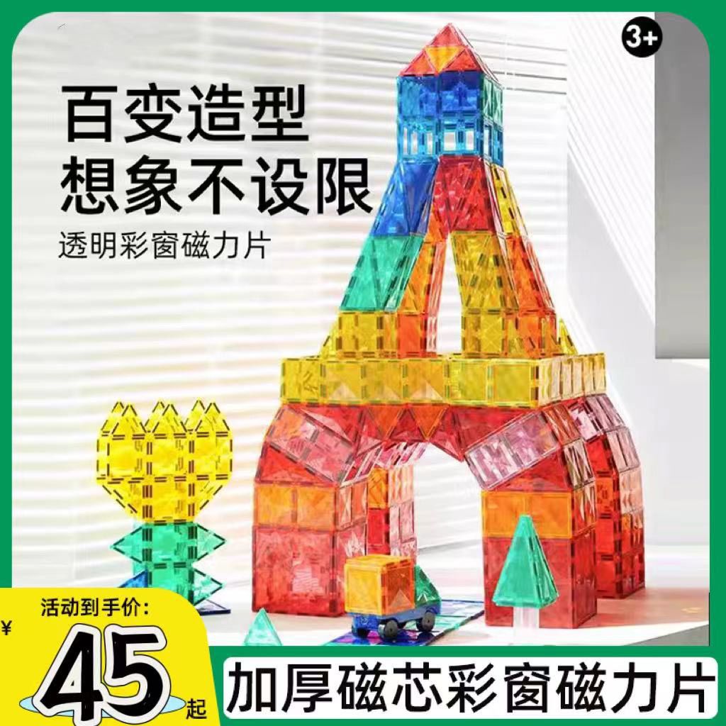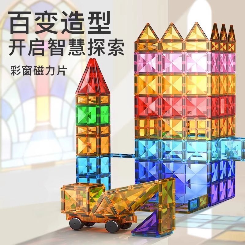 儿童钻面彩窗磁力积木磁铁强磁宝宝拼装益智礼物拼图女孩男孩玩具