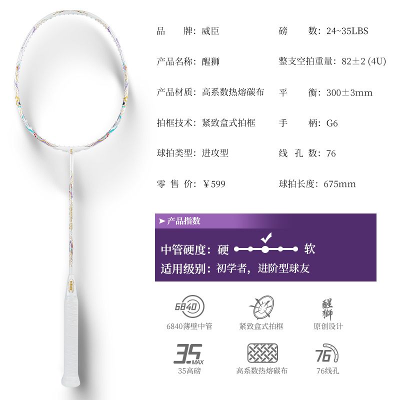 VS威臣醒狮羽毛球拍超轻全碳素4UG6速度暴力进攻型专业单拍正品【