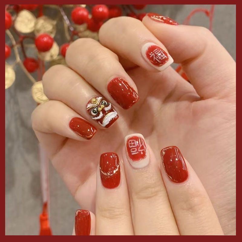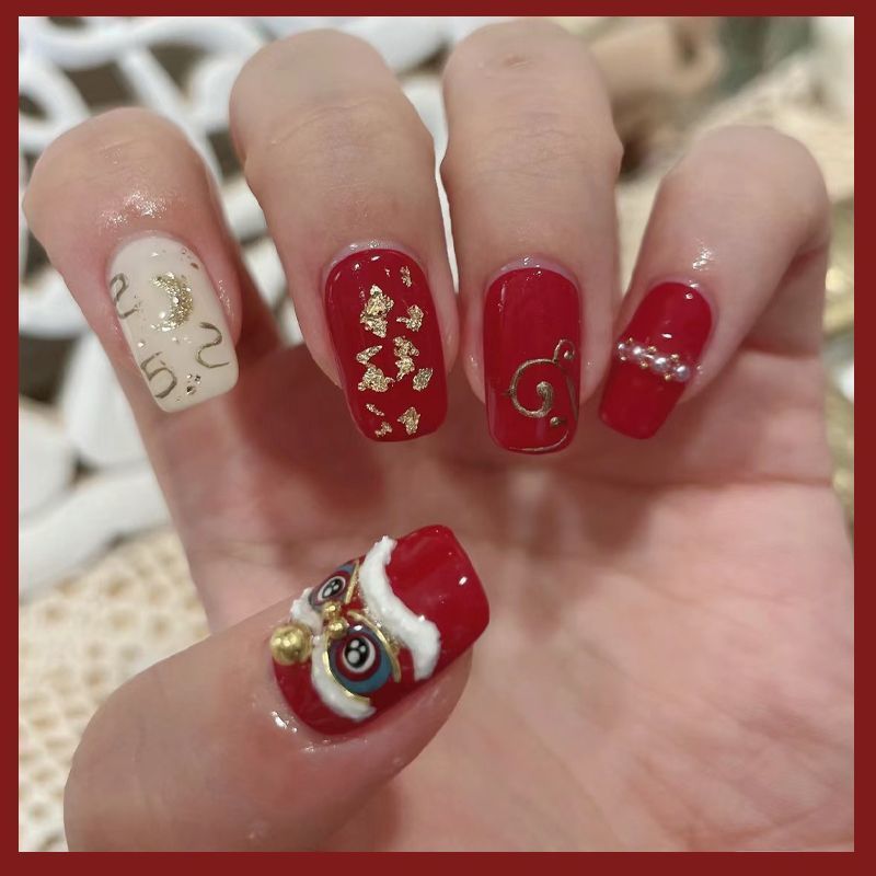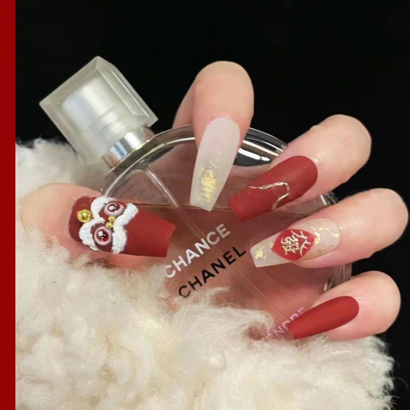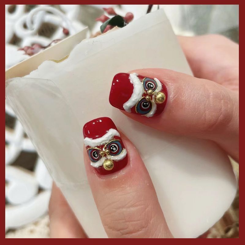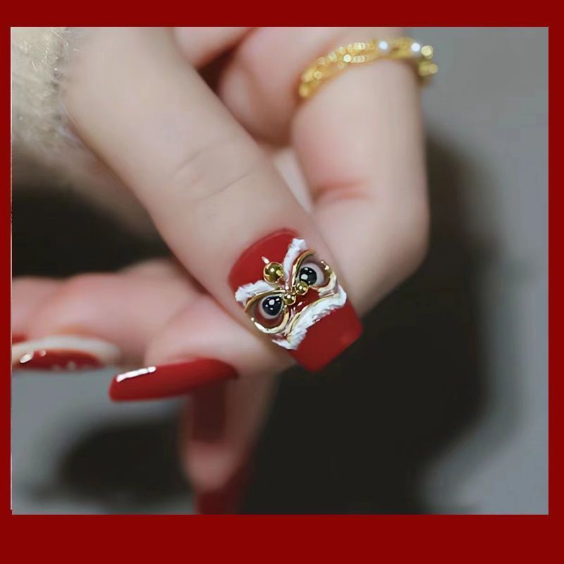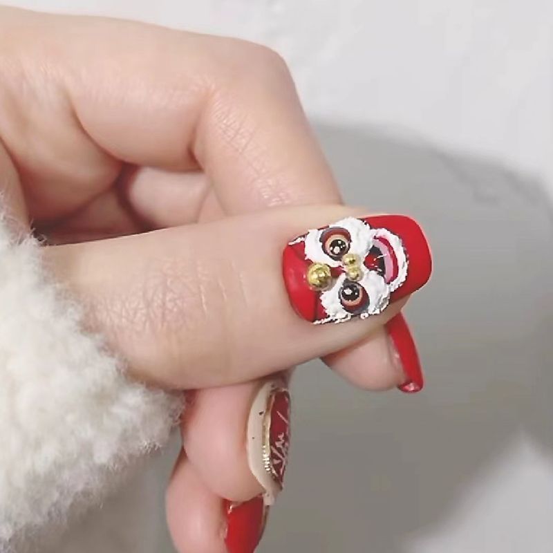 浮雕醒狮美甲贴纸醒狮点睛舞狮国潮国风中国风龙年新年指甲贴花