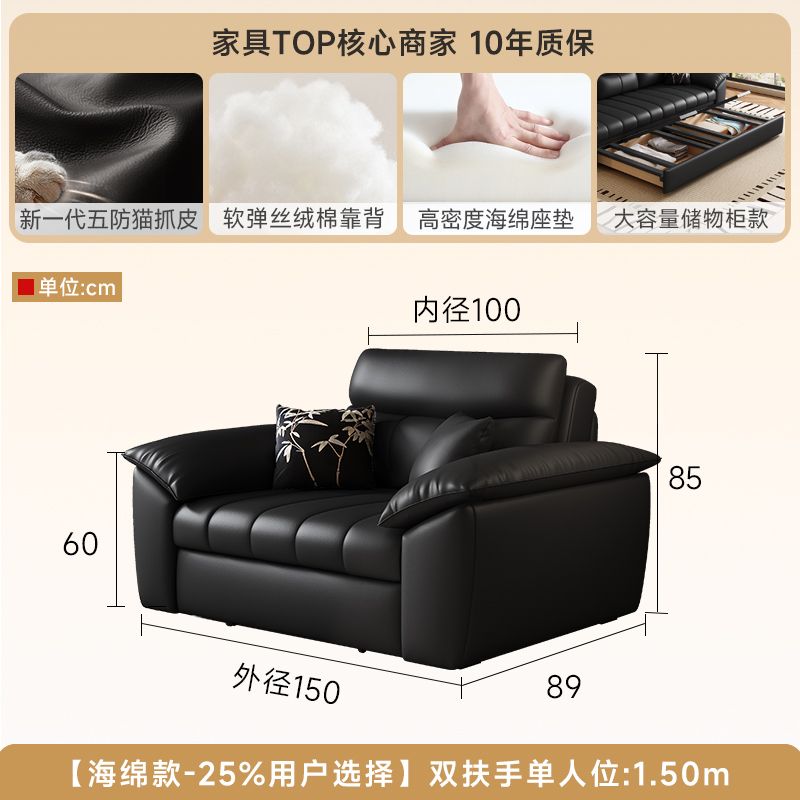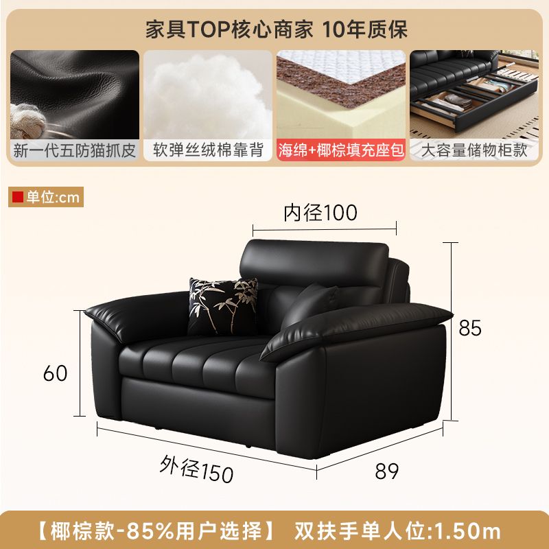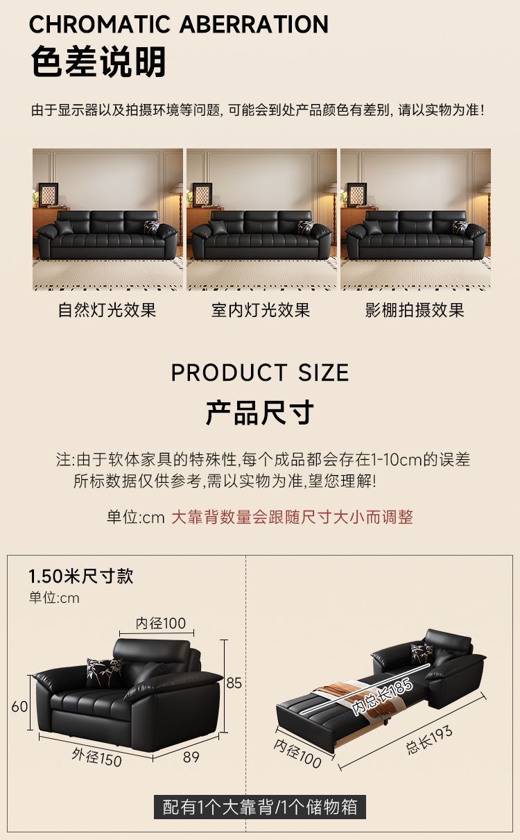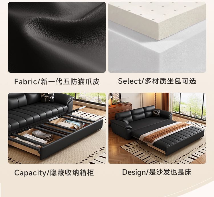 壹曲钢琴键沙发床多功能一体两用可储物折叠沙发小户型客厅猫抓皮
