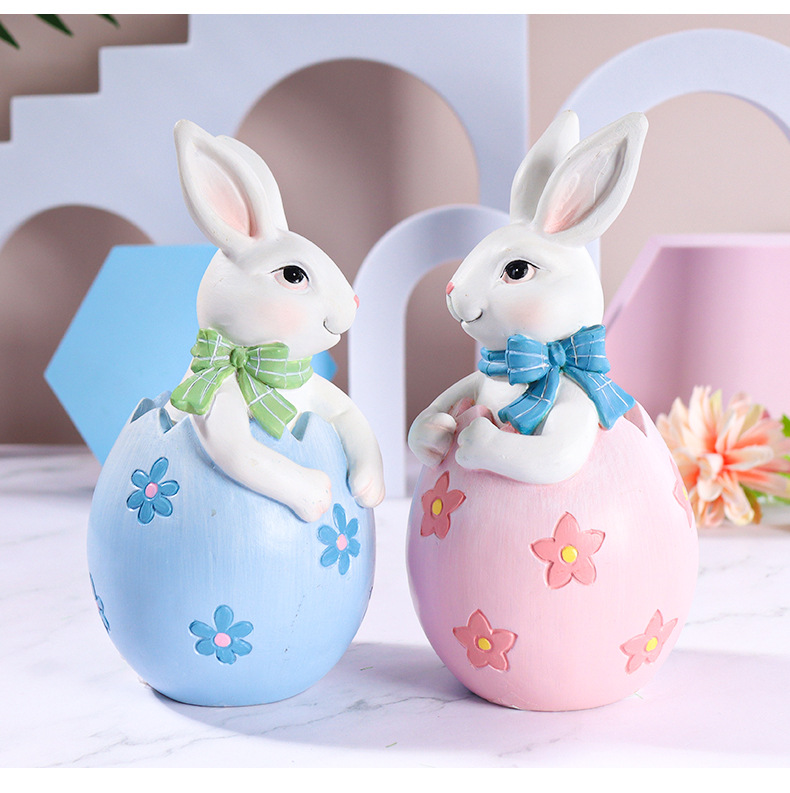 复活节兔子彩蛋情侣树脂摆饰节日装饰礼品儿童房书房卧室摆件跨境