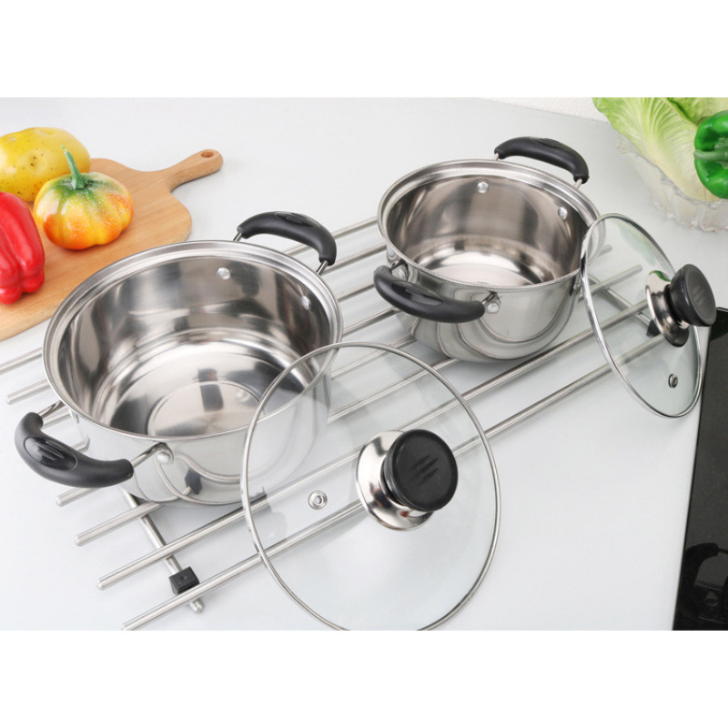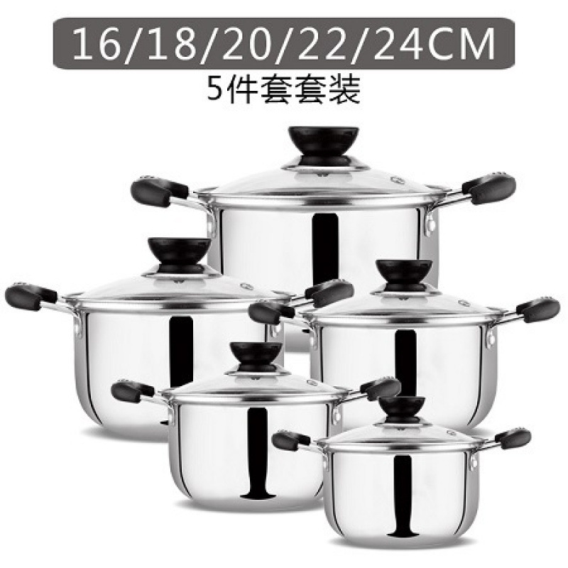 带磁不锈钢锅具五件套16-24CM出口非洲东南亚单底汤锅炊具套装