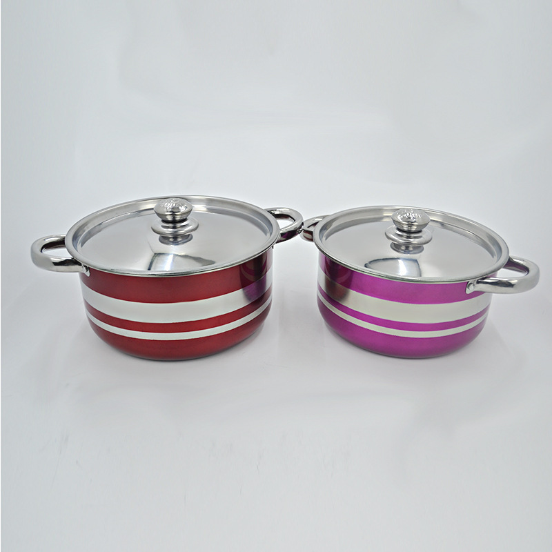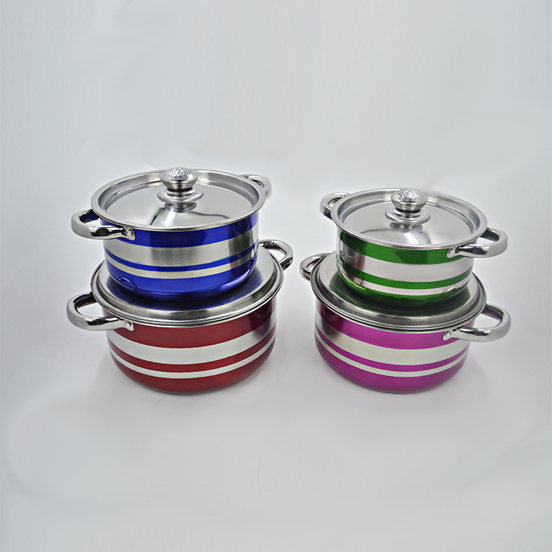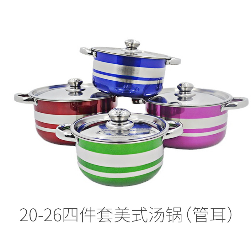 跨境出口不锈钢钢盖汤锅 四件套20-26cm美式彩色炫彩高锅汤锅套装