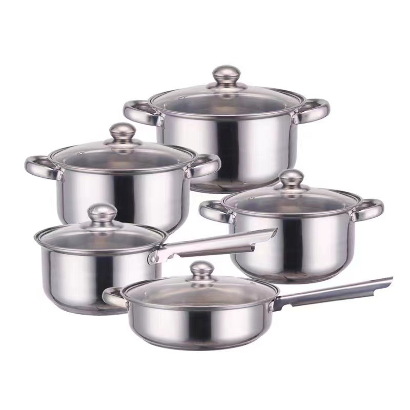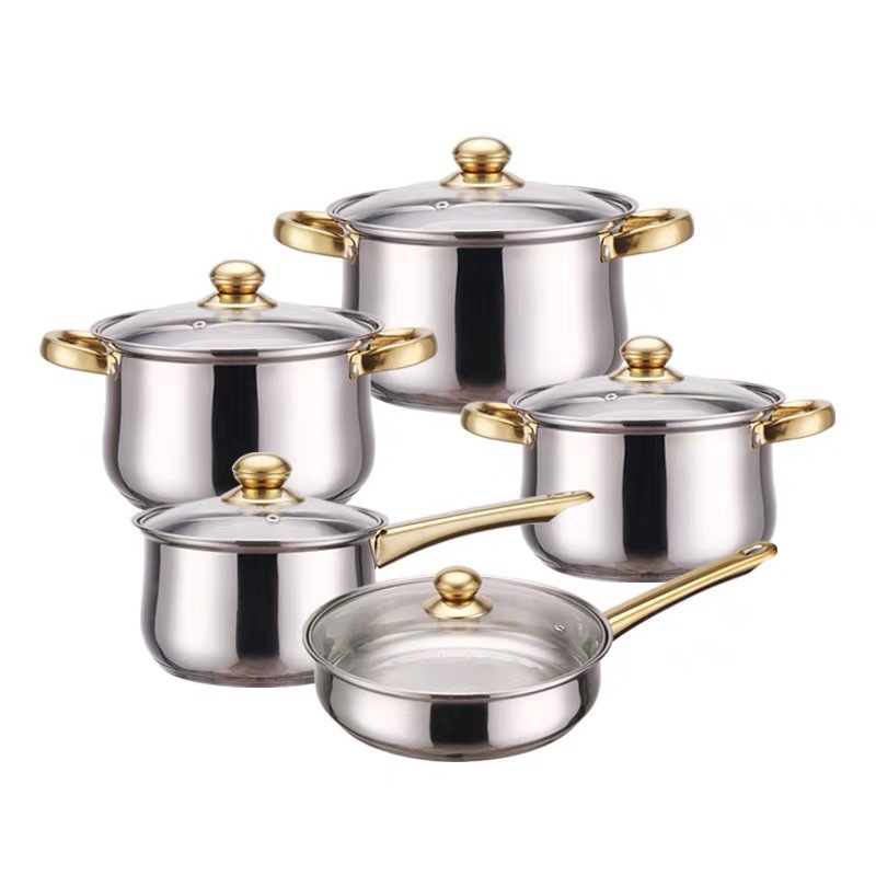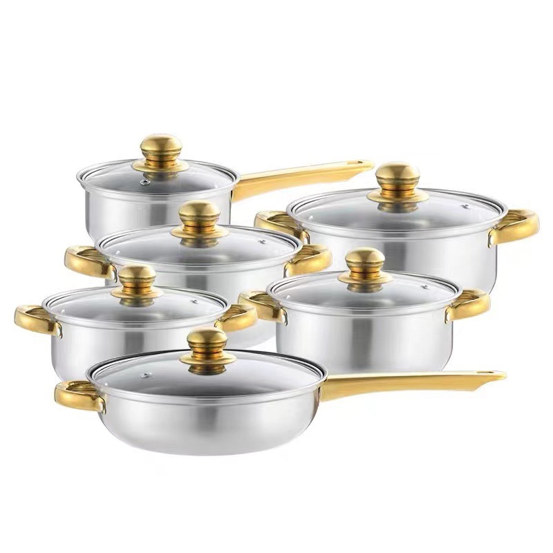 12件套锅具套装金色不锈钢套锅厨房烹饪汤锅煎锅水壶东南亚非洲锅