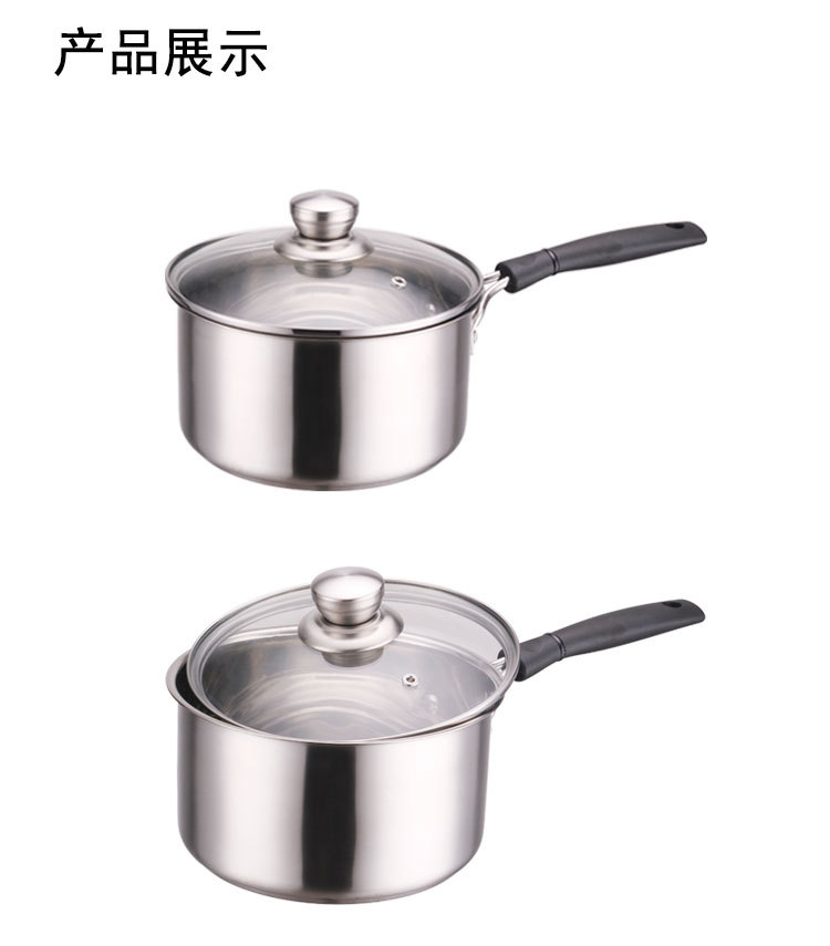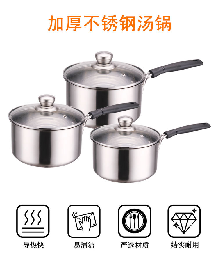 加厚不锈钢奶锅家用热奶锅单柄煮面锅厨房奶锅三件套礼品锅具批发