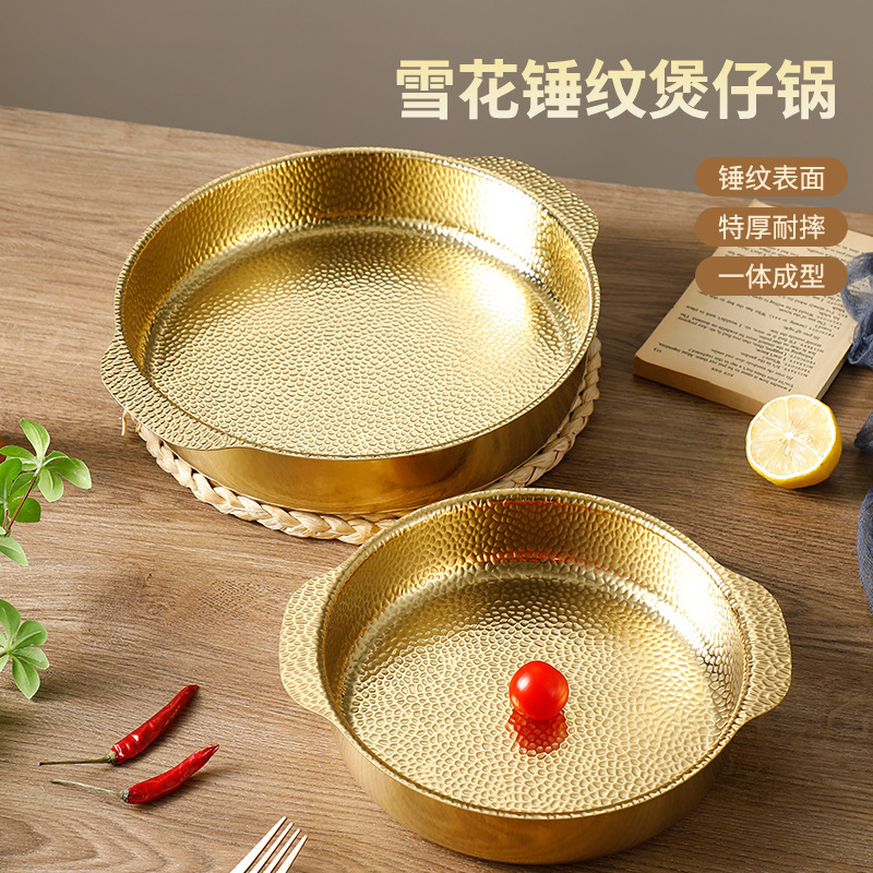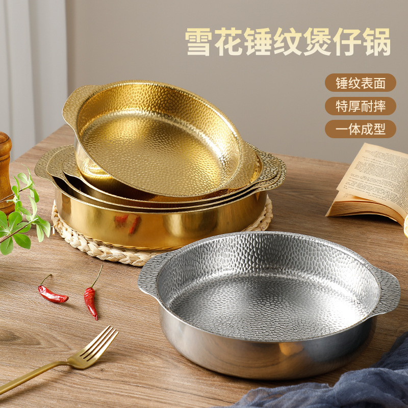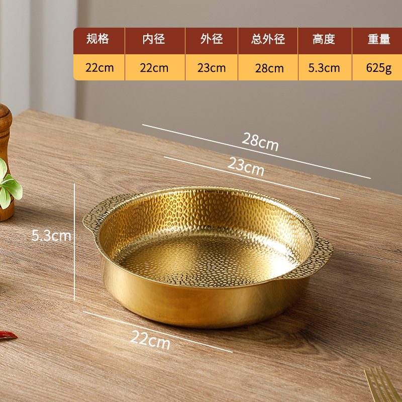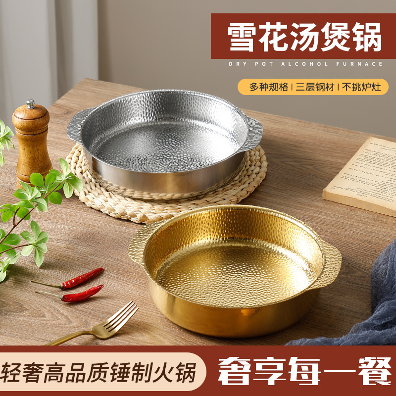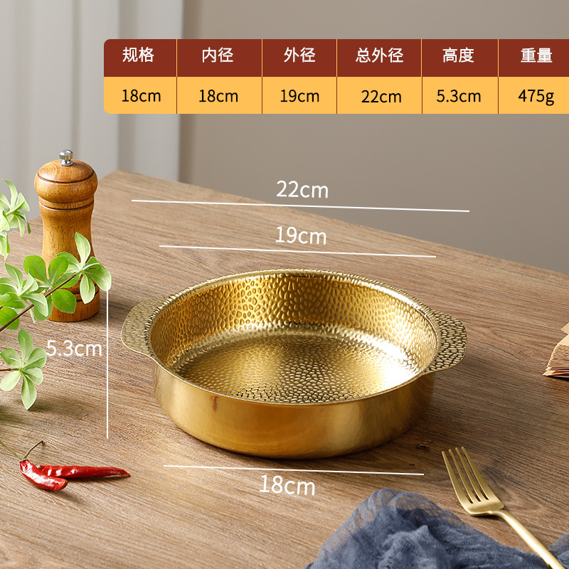 韩式干锅加厚不锈钢金色双耳单人小火锅一人一锅电磁炉燃气灶专用