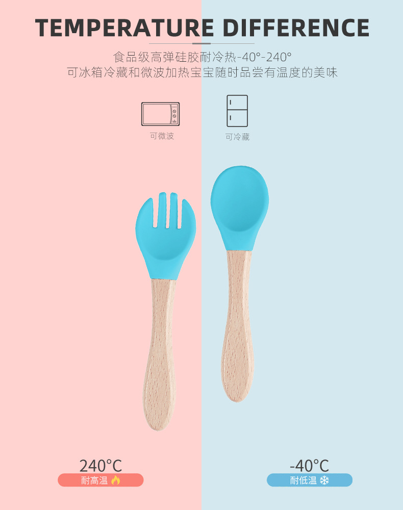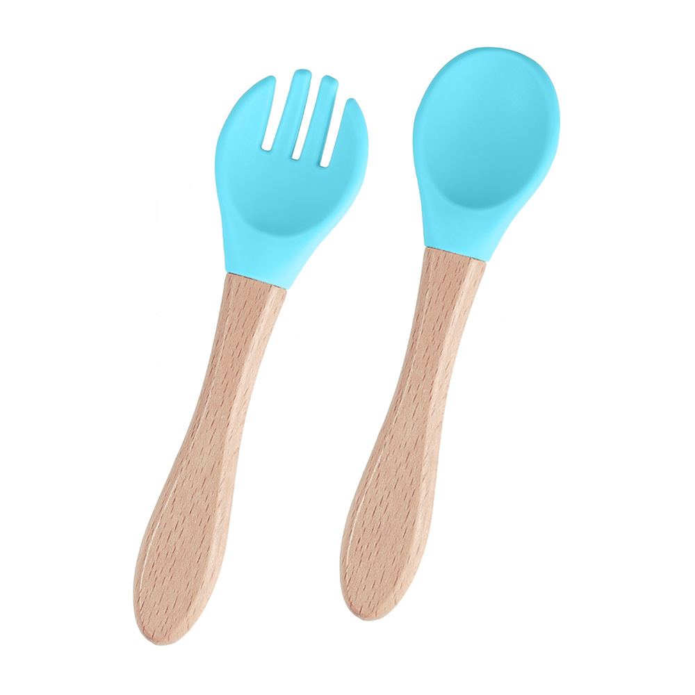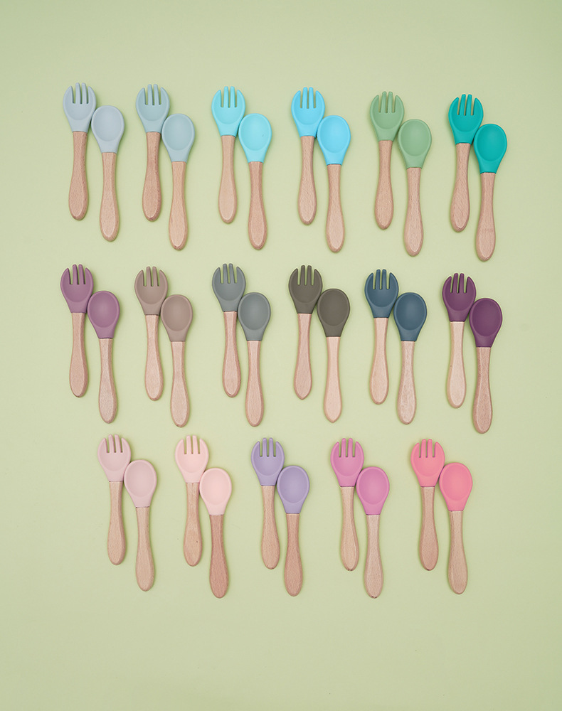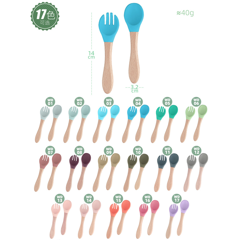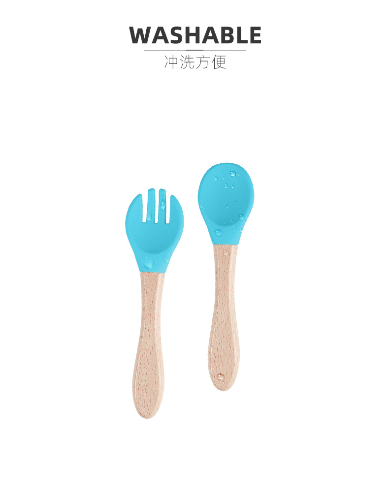 厨具 硅胶木柄叉勺宝宝吃饭辅食训练餐具榉木儿童食品级