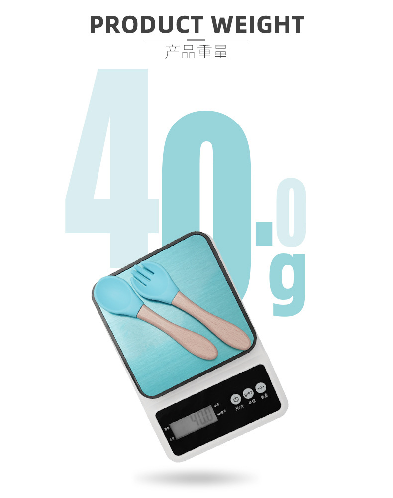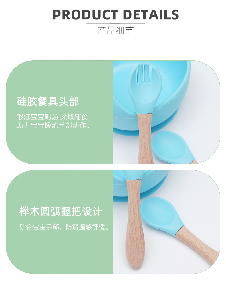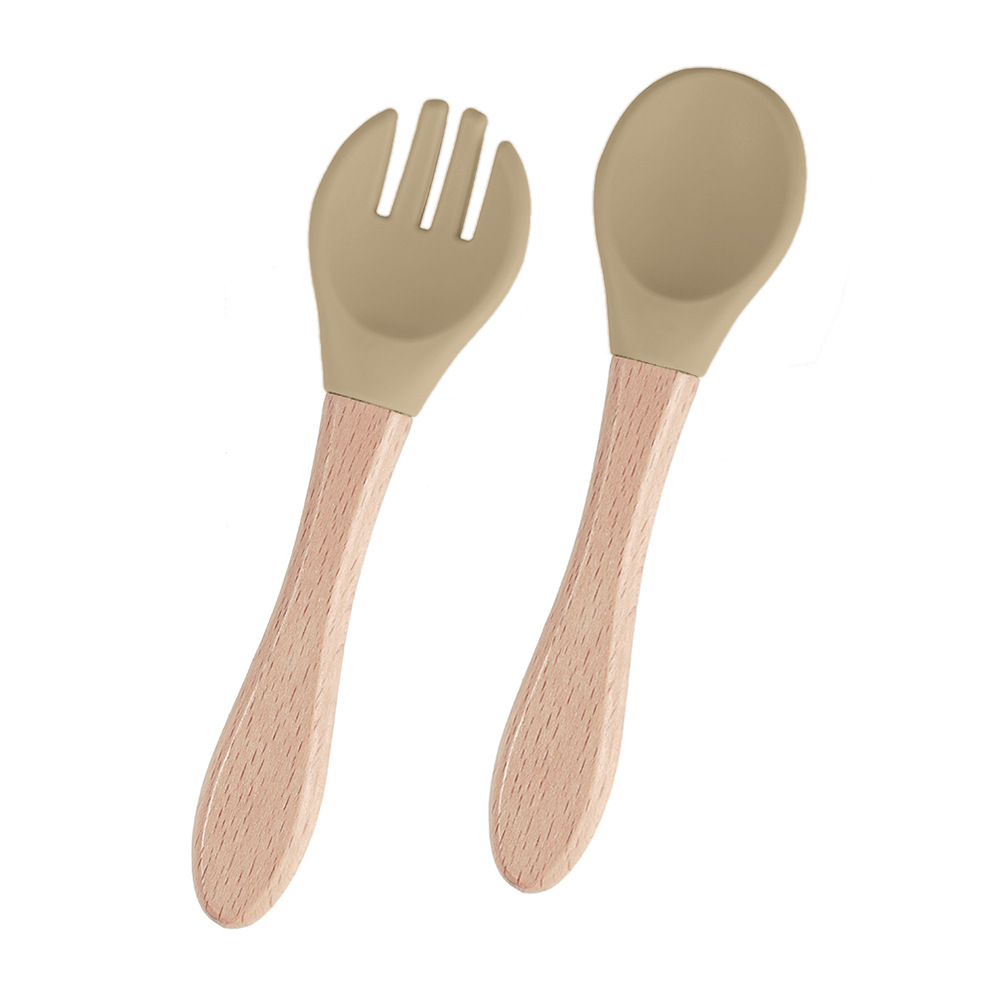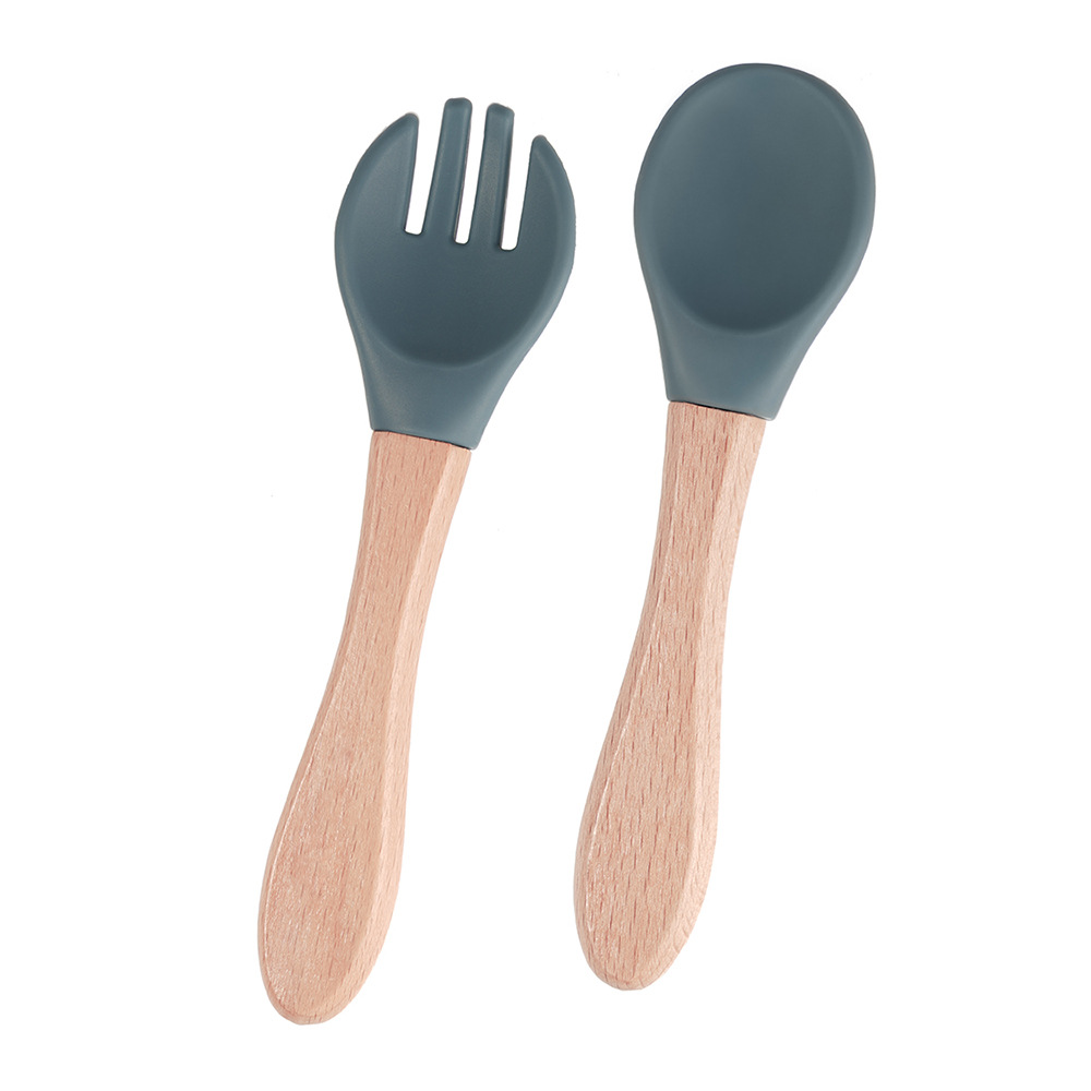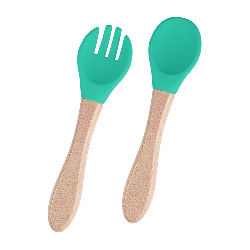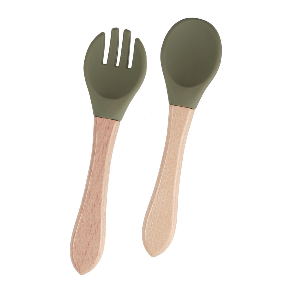 厨具 硅胶木柄叉勺宝宝吃饭辅食训练餐具榉木儿童食品级