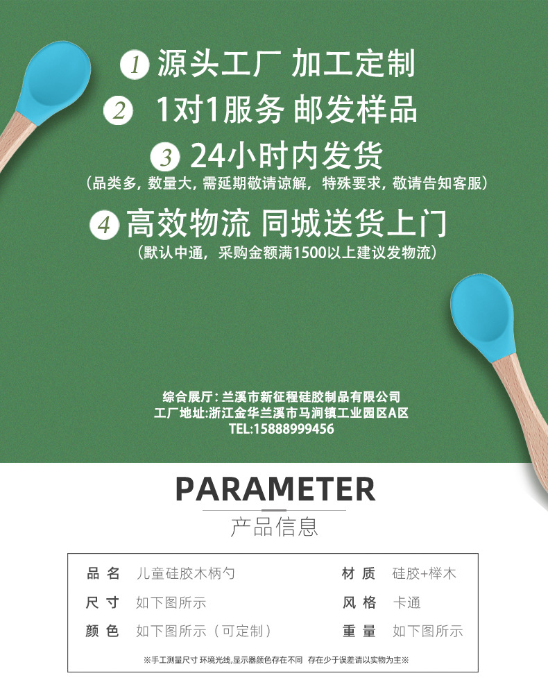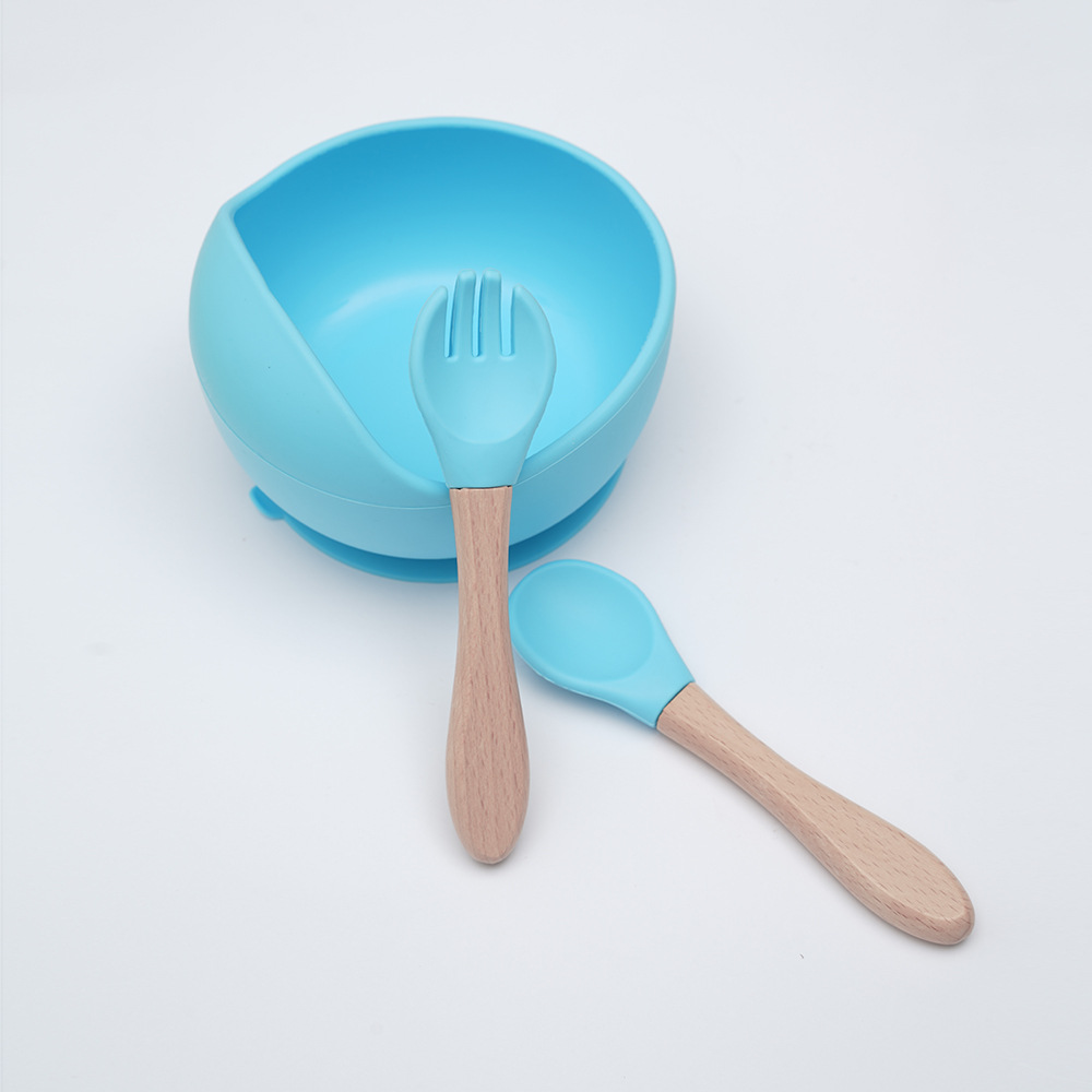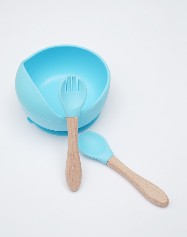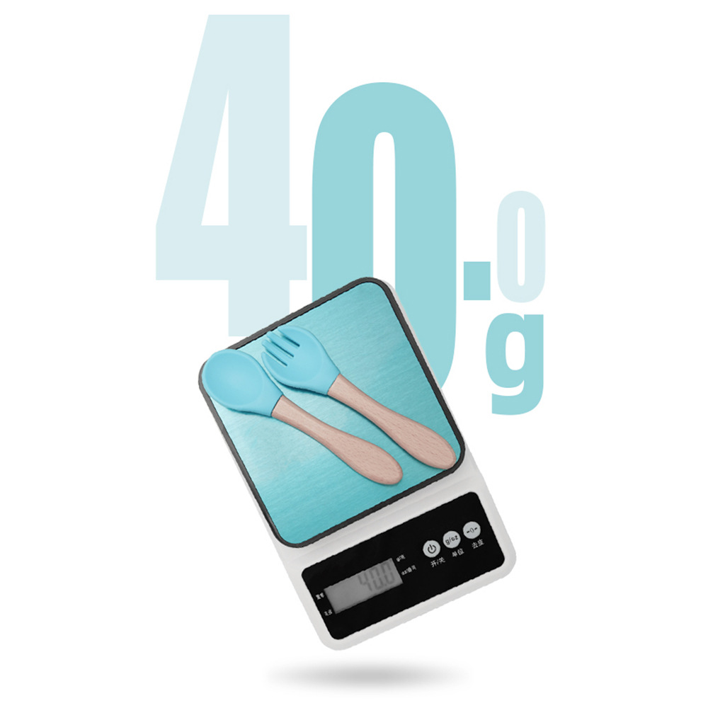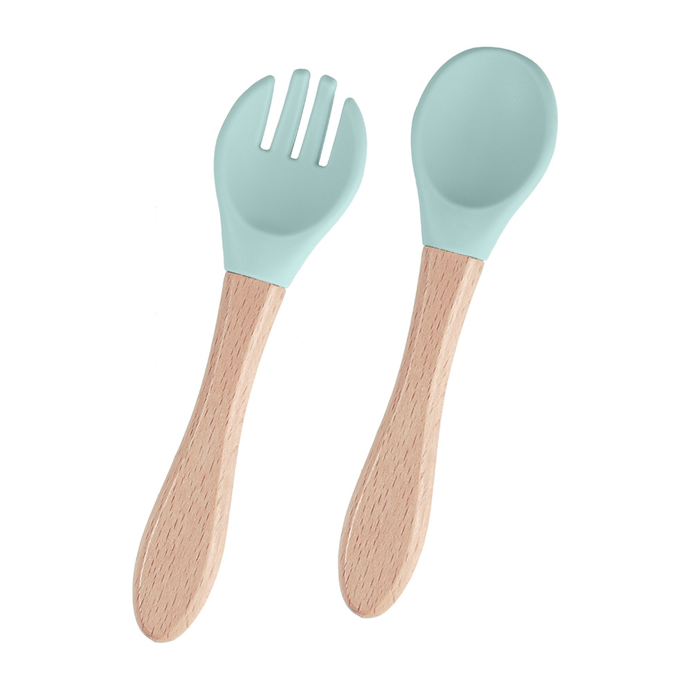 厨具 硅胶木柄叉勺宝宝吃饭辅食训练餐具榉木儿童食品级