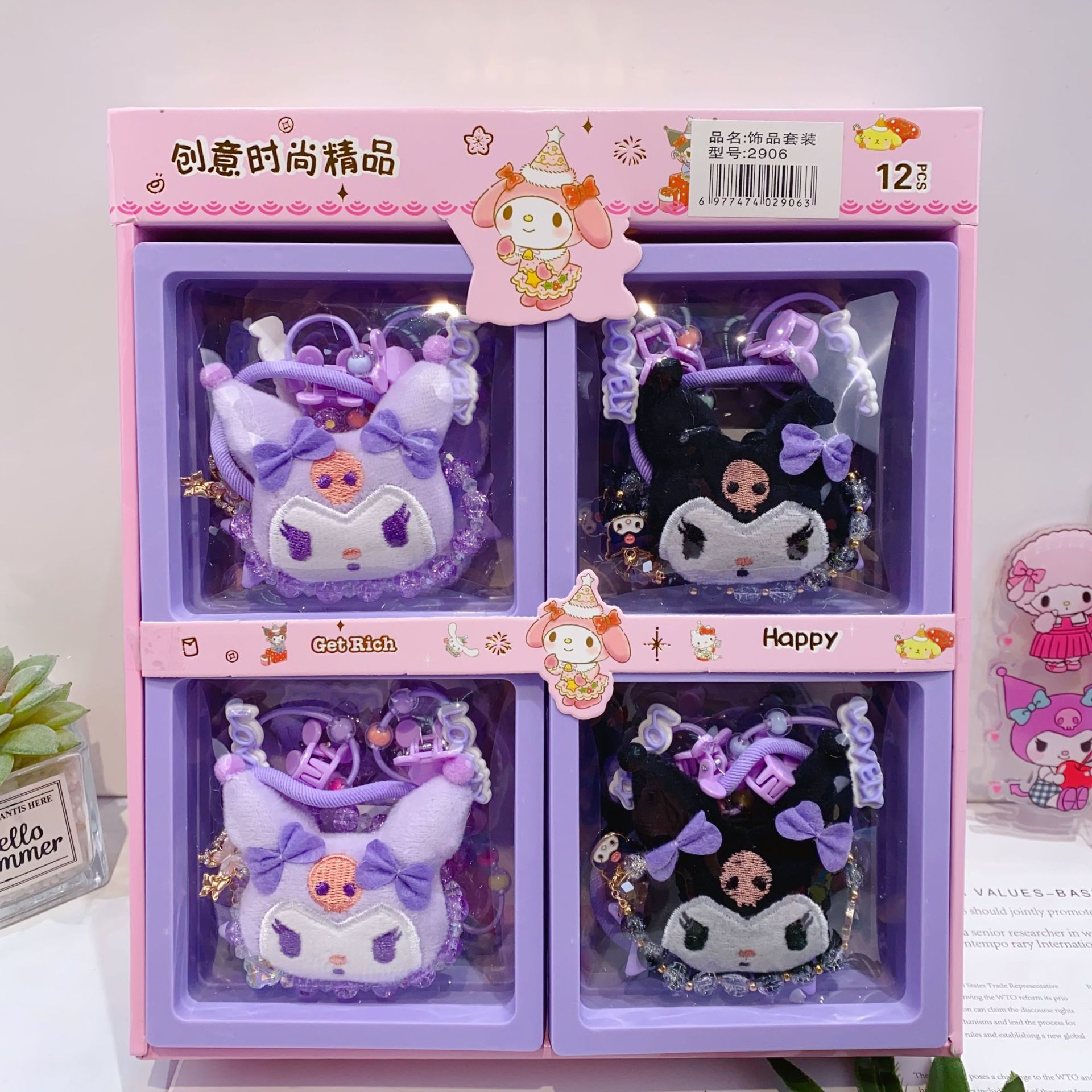 新款库洛米水晶手链卡通皮筋发夹饰品套装可爱少女心装扮时尚精品