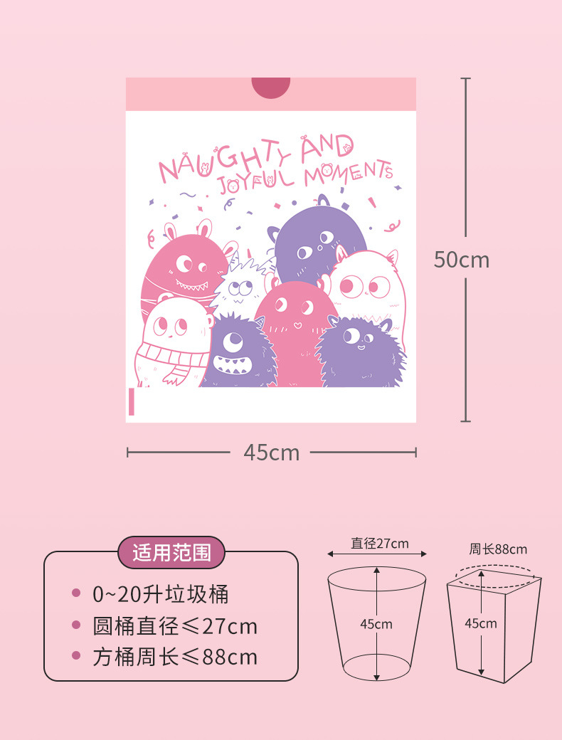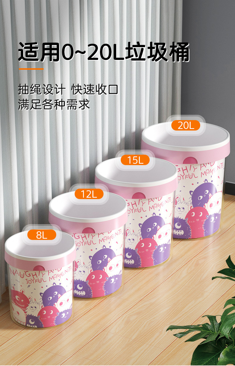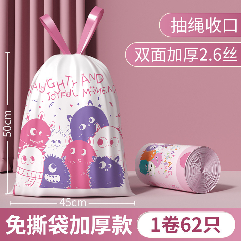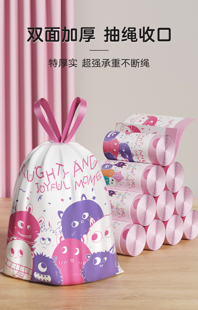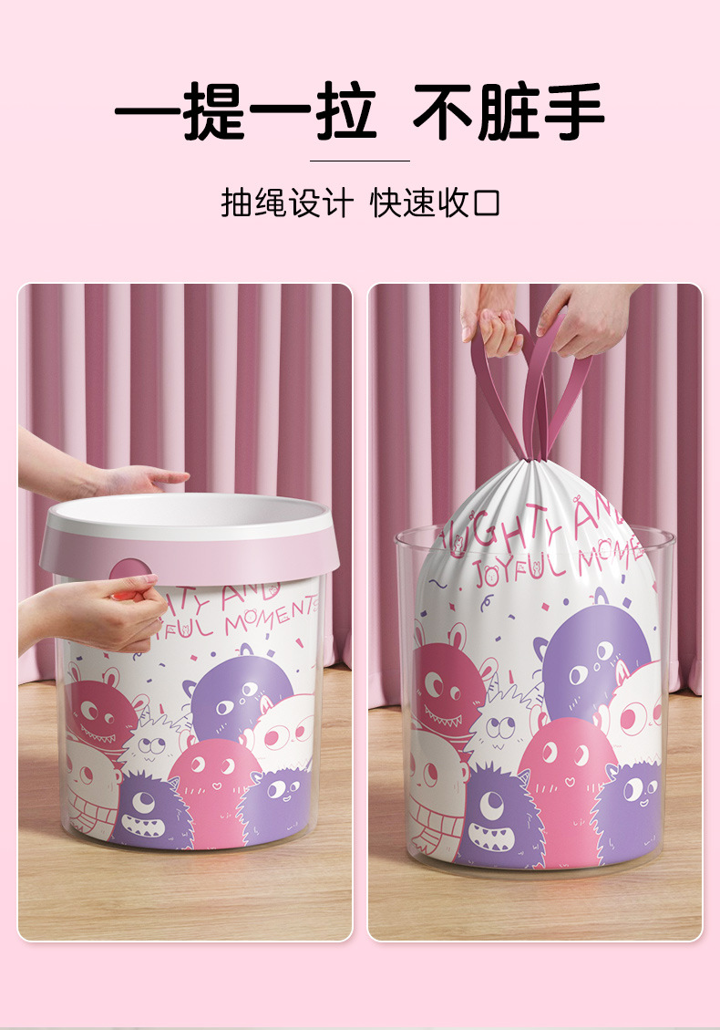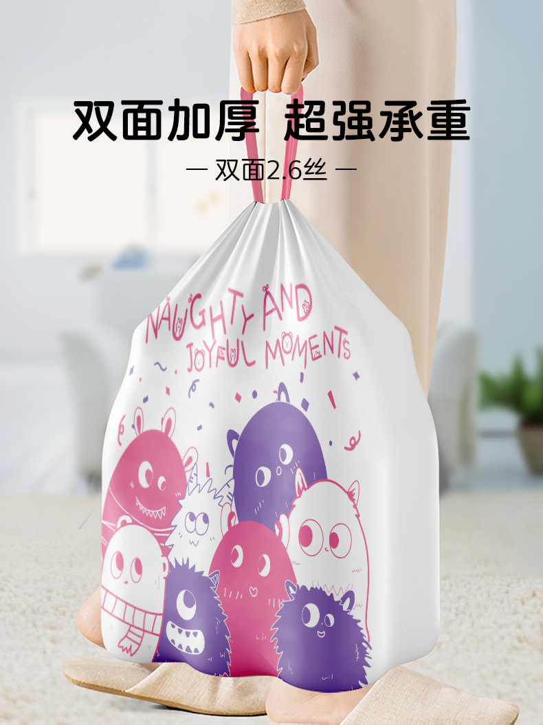 家用印花抽绳垃圾袋厨房大容量加厚防漏耐高温大号收口手提垃圾袋