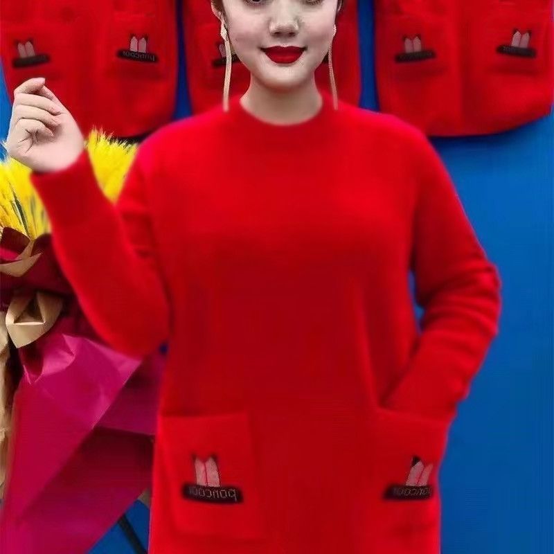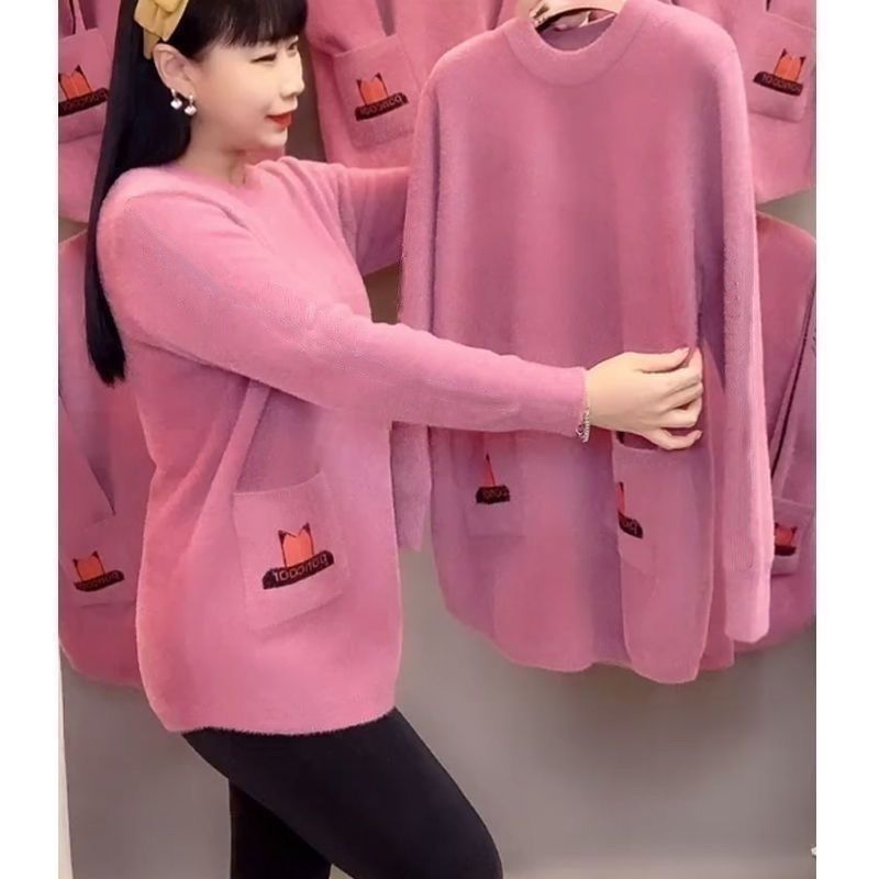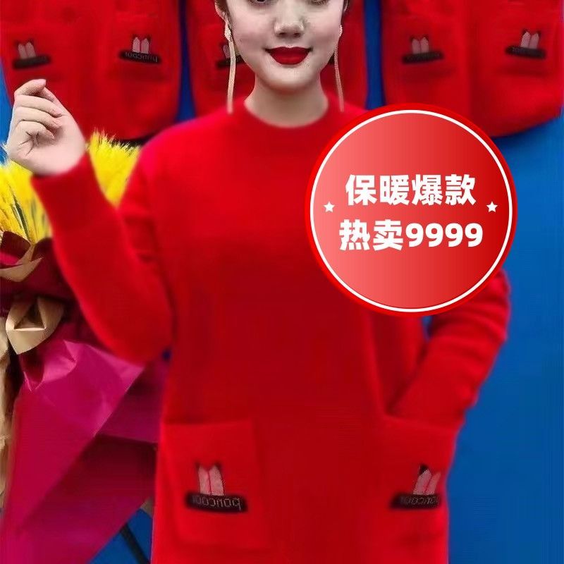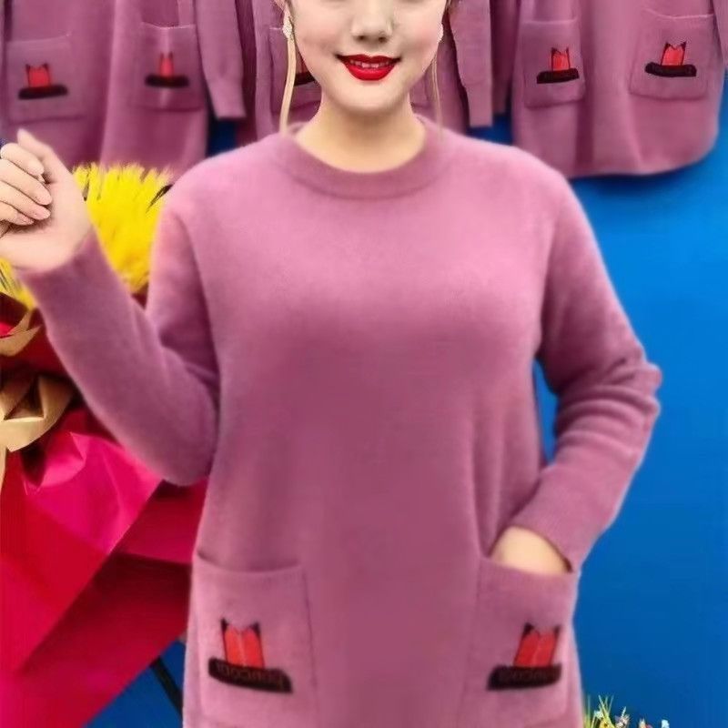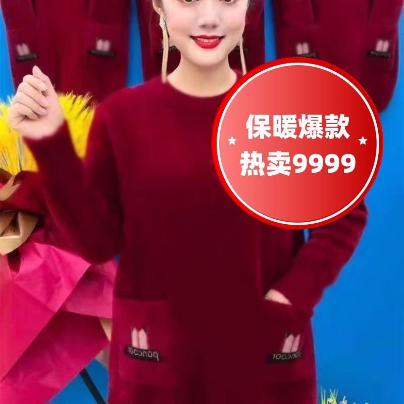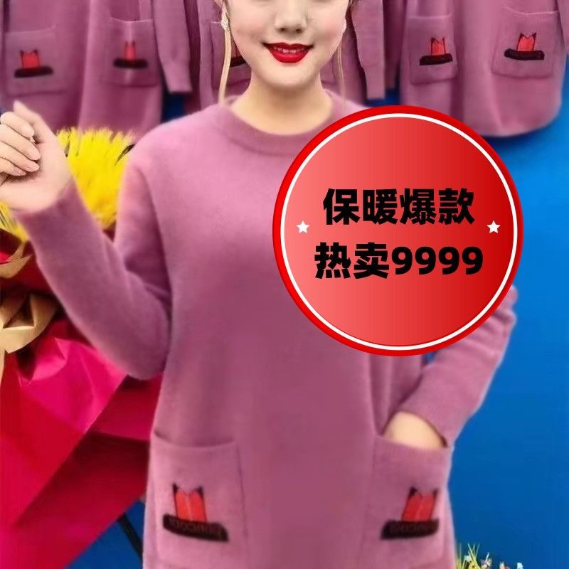 妈妈装宽松胖人遮肚子上衣中长款套头时尚冬季显瘦加厚保暖打底衫