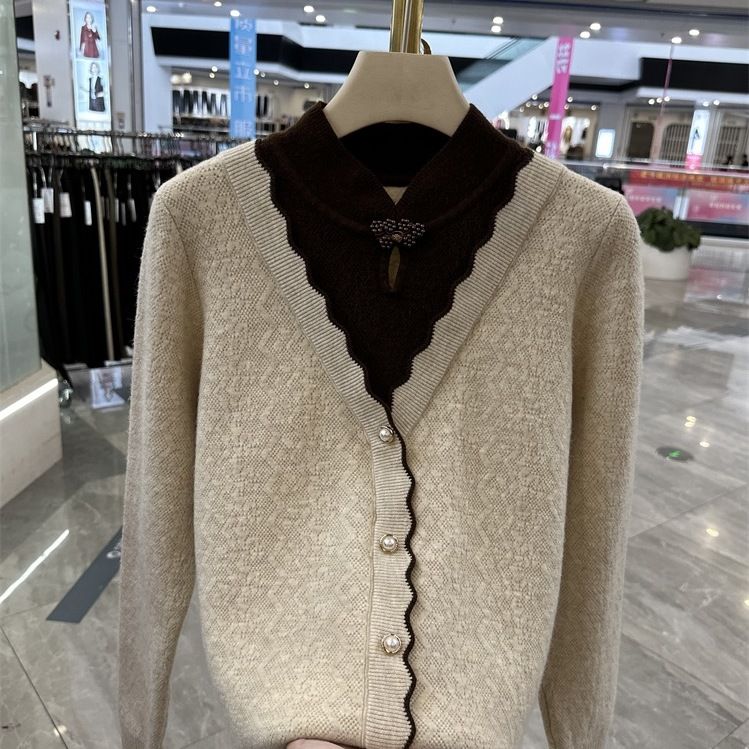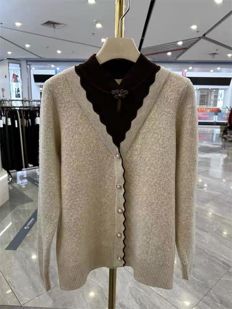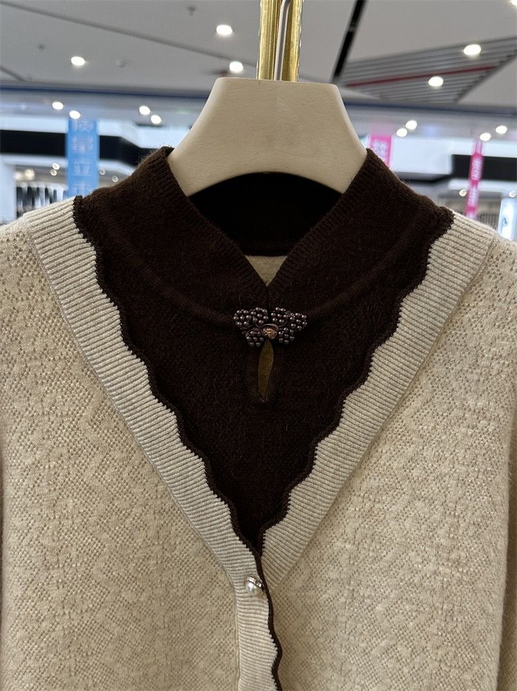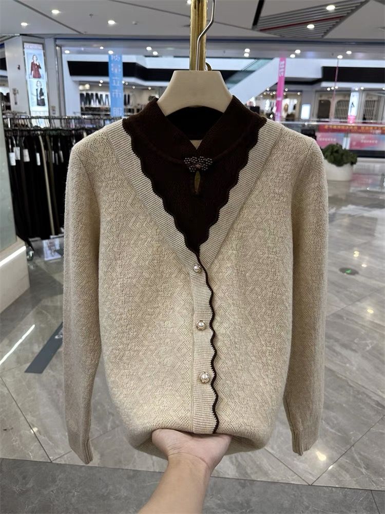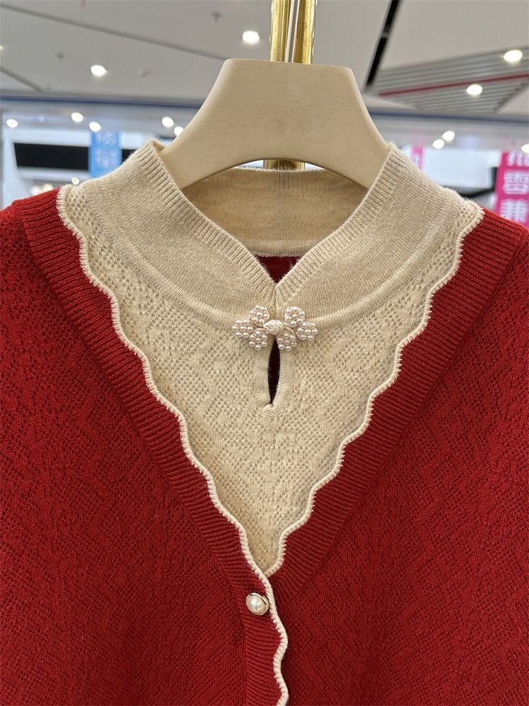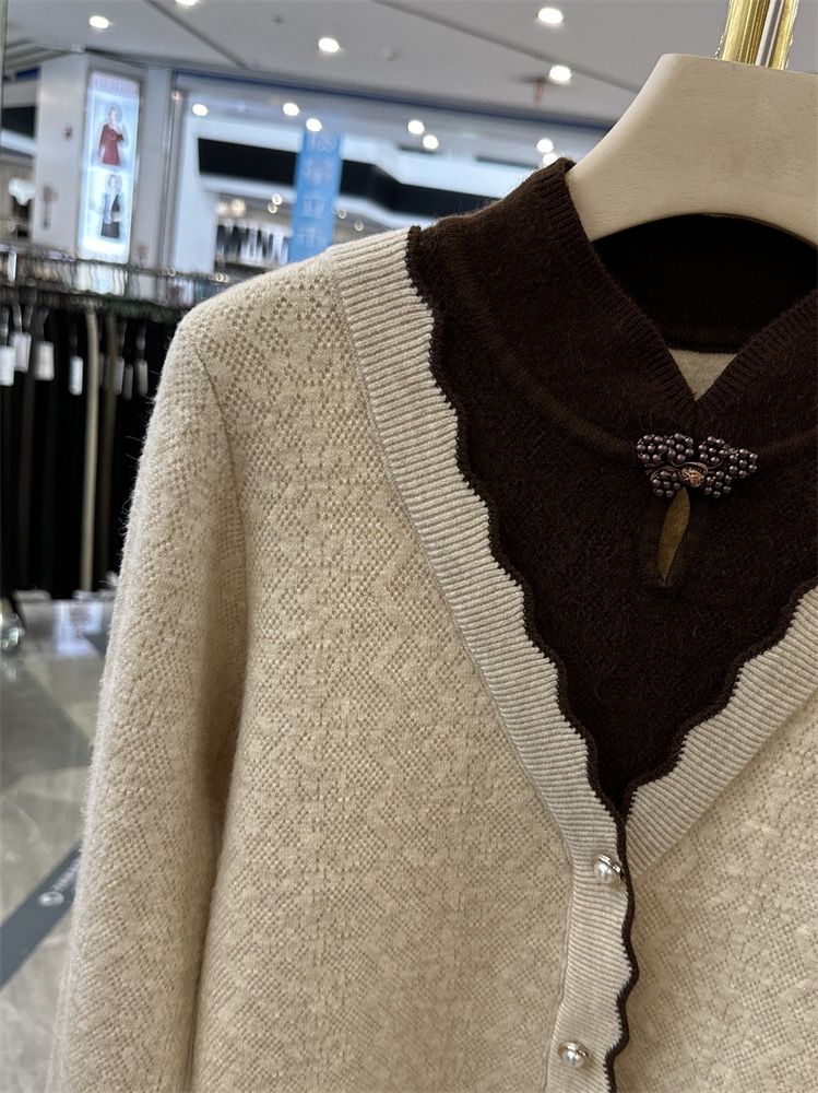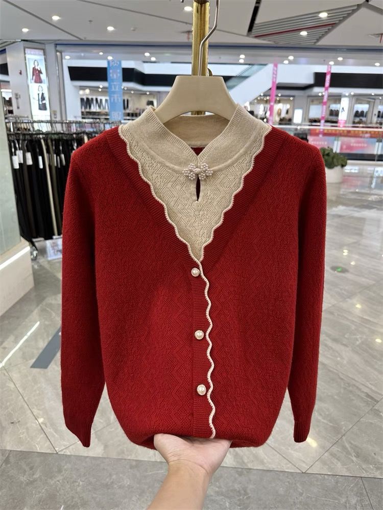 2024秋冬季新款韩版半高领加厚假两件拼色宽松长袖针织衫毛衣女潮