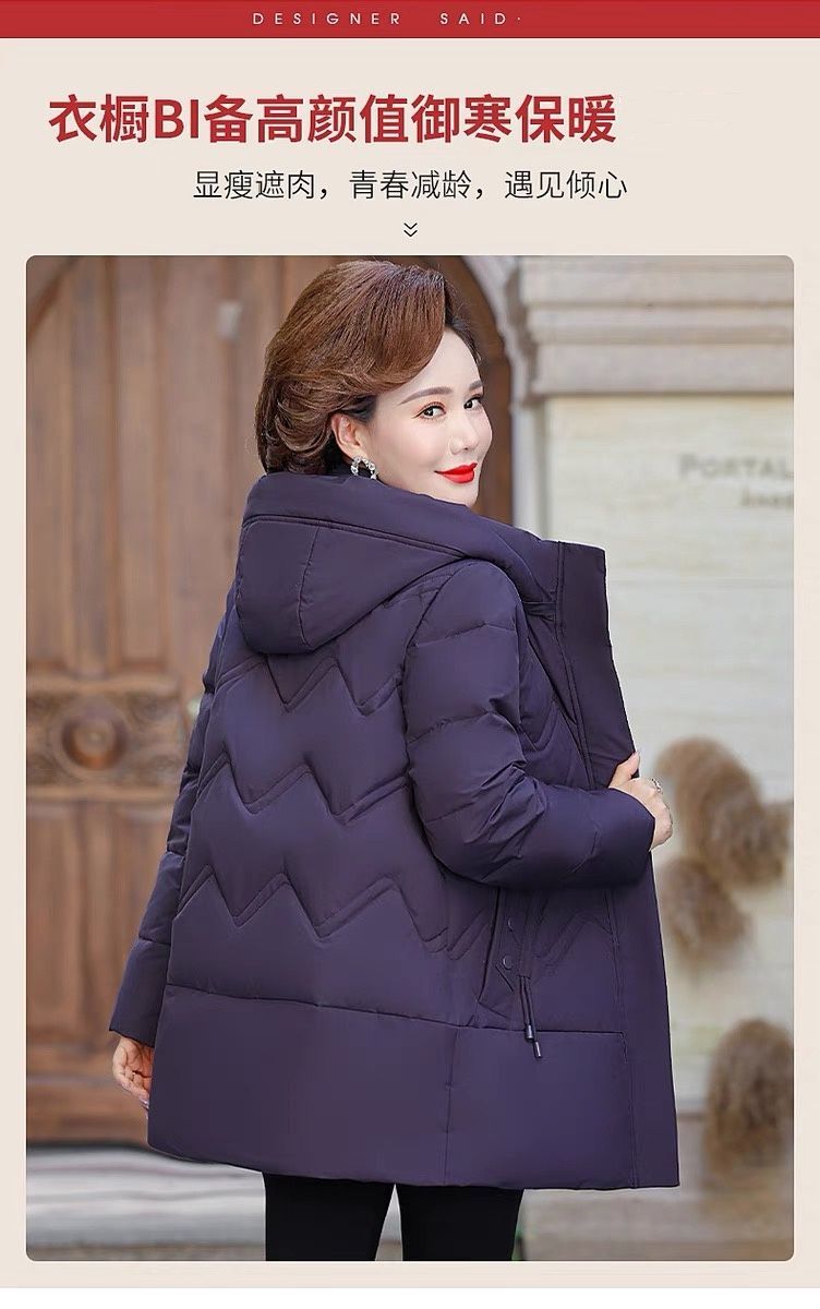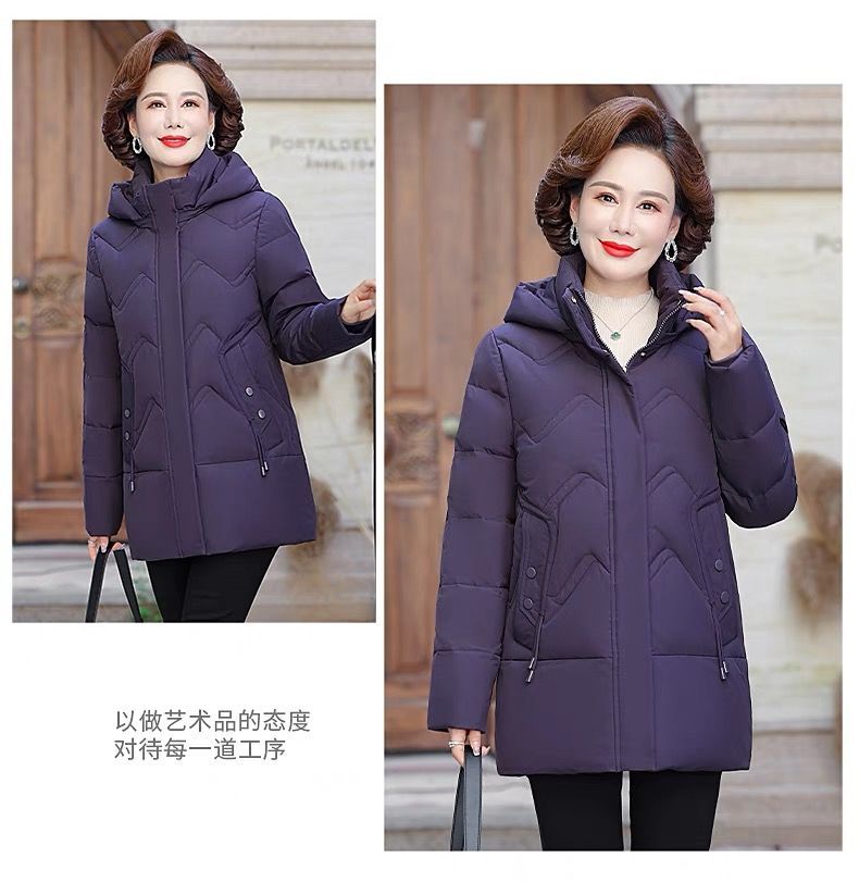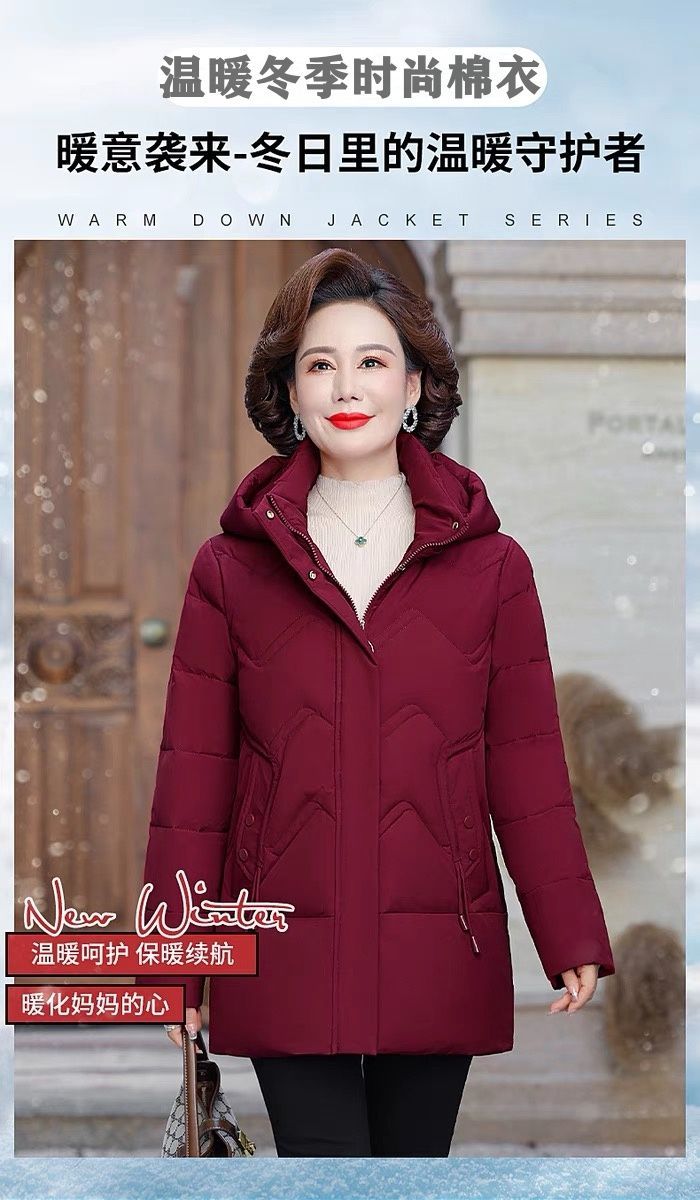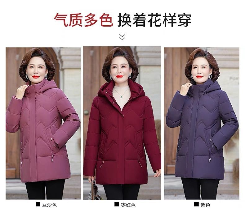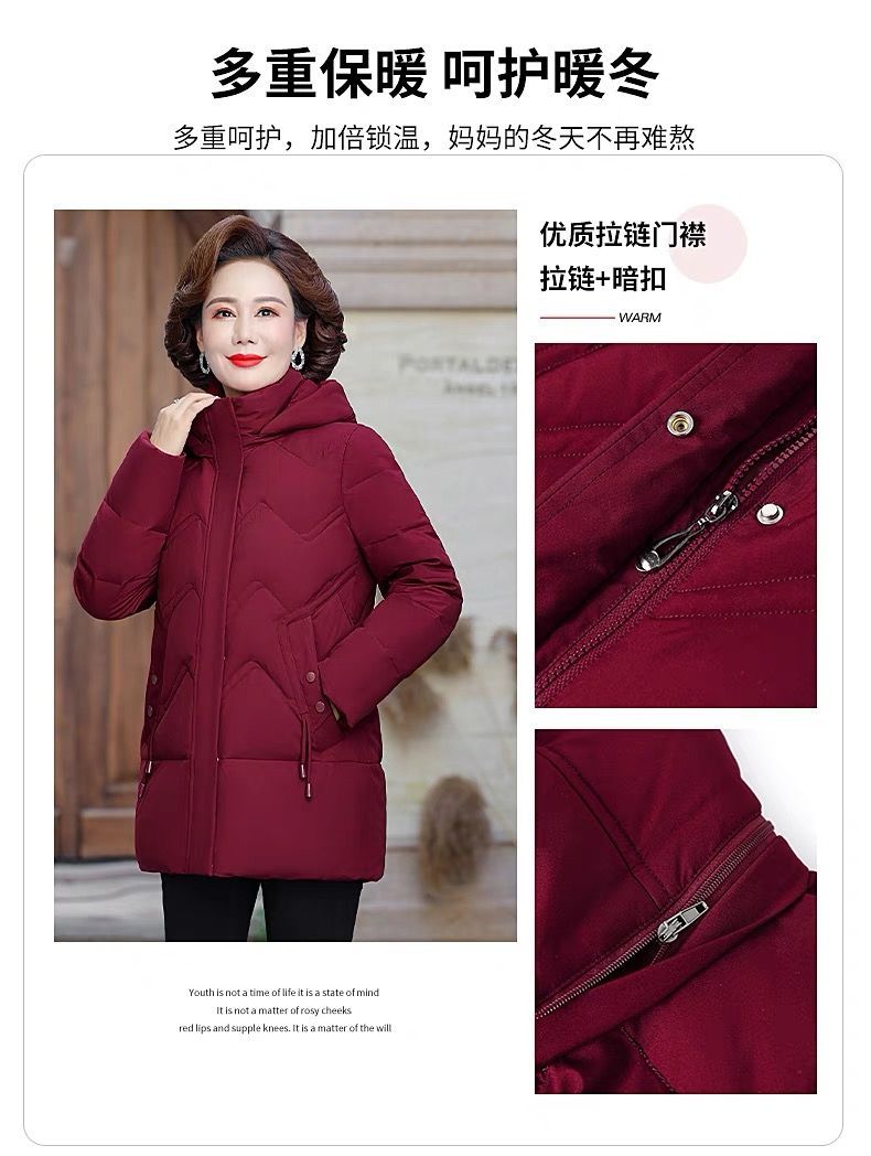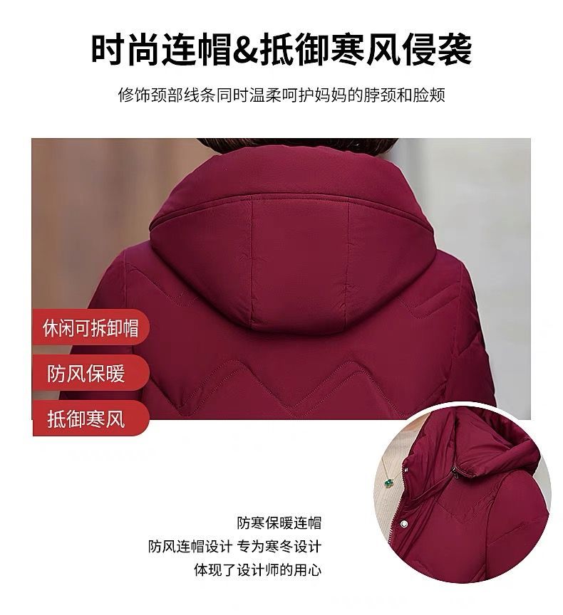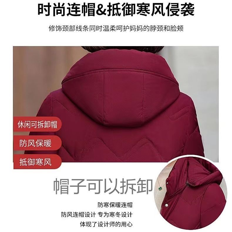 秋冬可拆卸帽妈妈装时尚减龄中长款棉服中老年大码加厚棉袄外套女