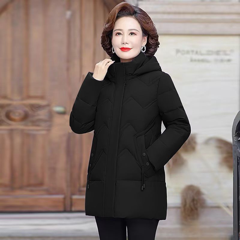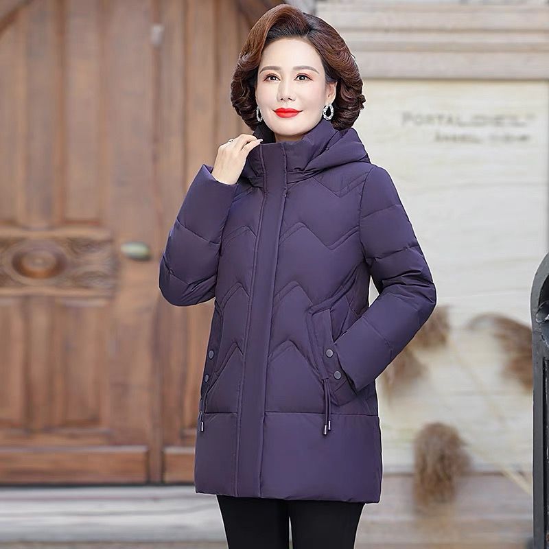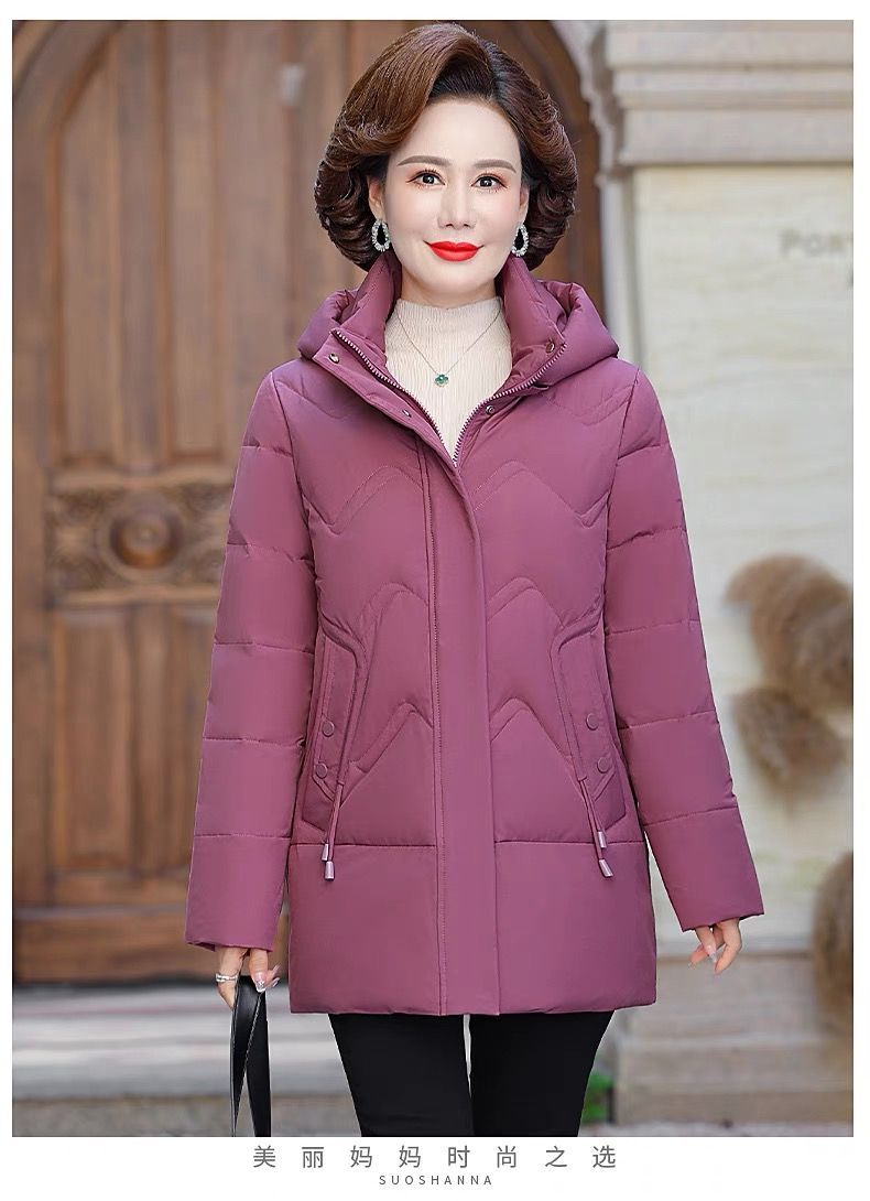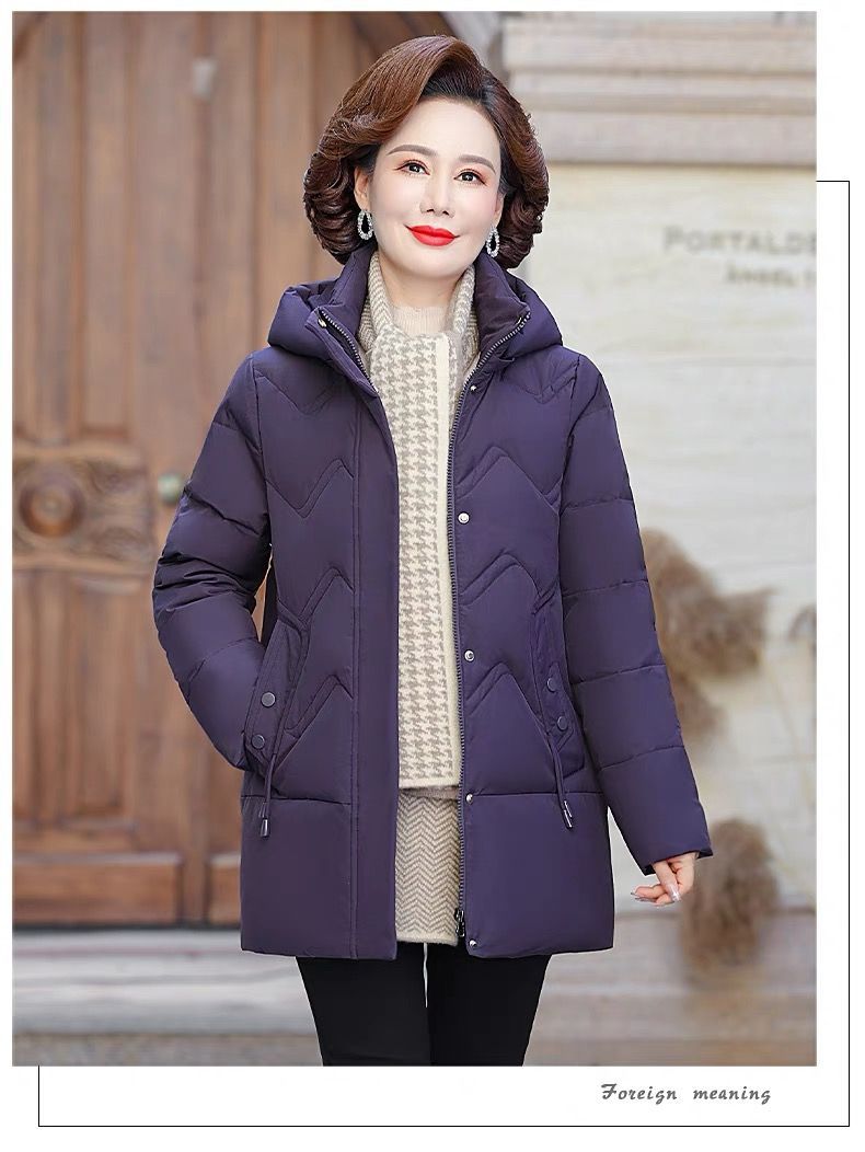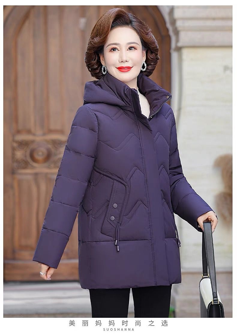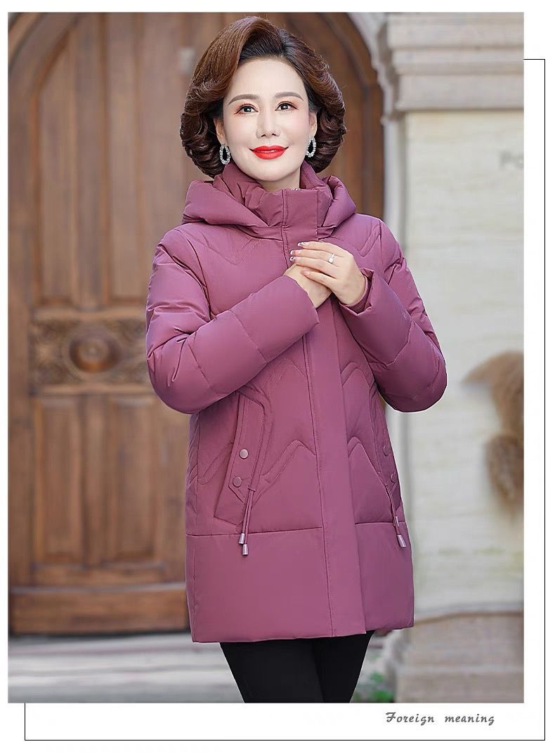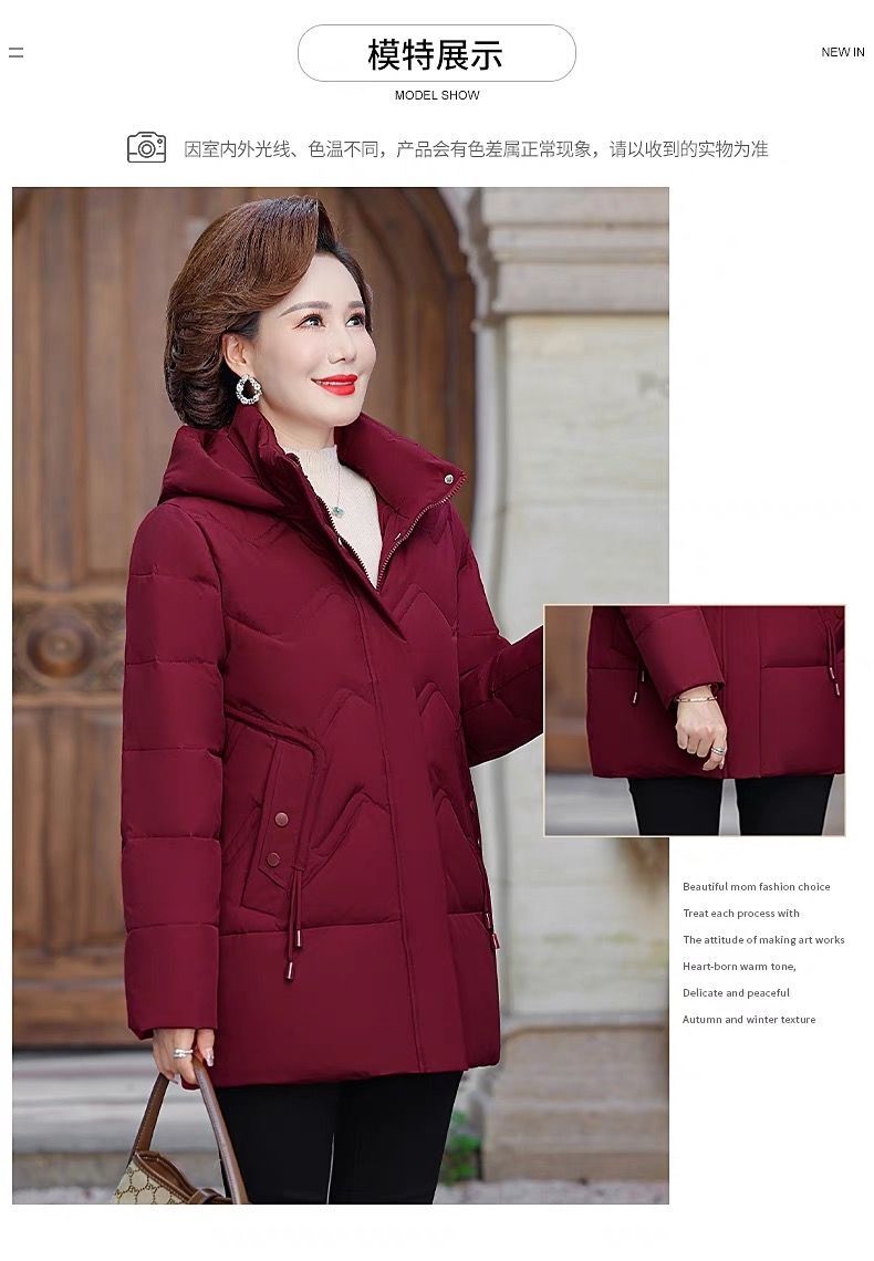 秋冬可拆卸帽妈妈装时尚减龄中长款棉服中老年大码加厚棉袄外套女