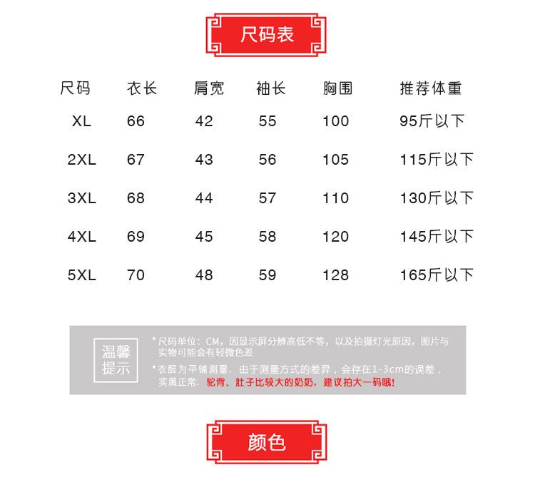 | 4xl [recommended to wear 67.50 kg-75.00 kg]](4XL 【建议135-150斤穿】) | USD $7.33 | 999999 piece available |