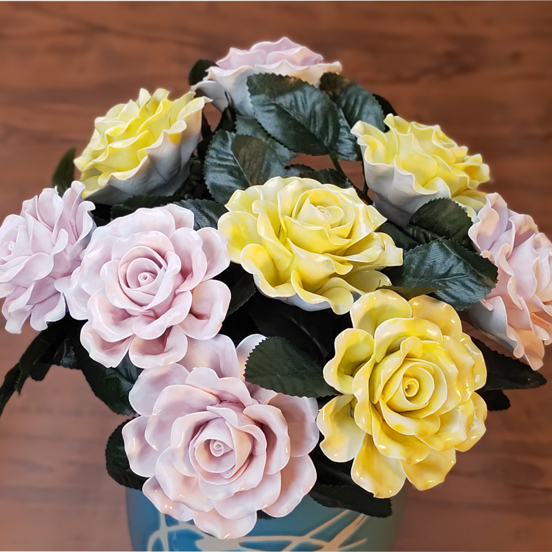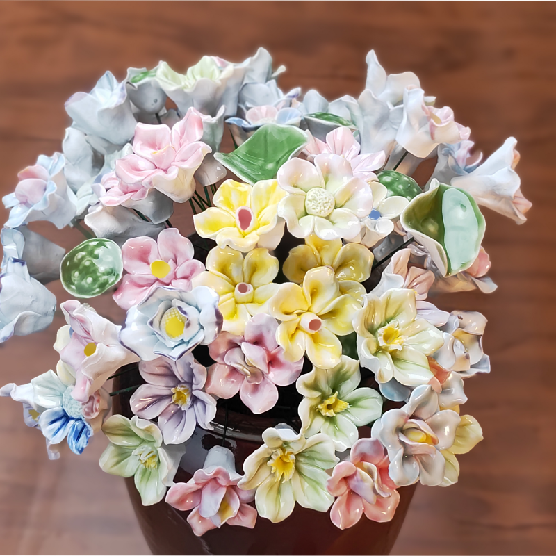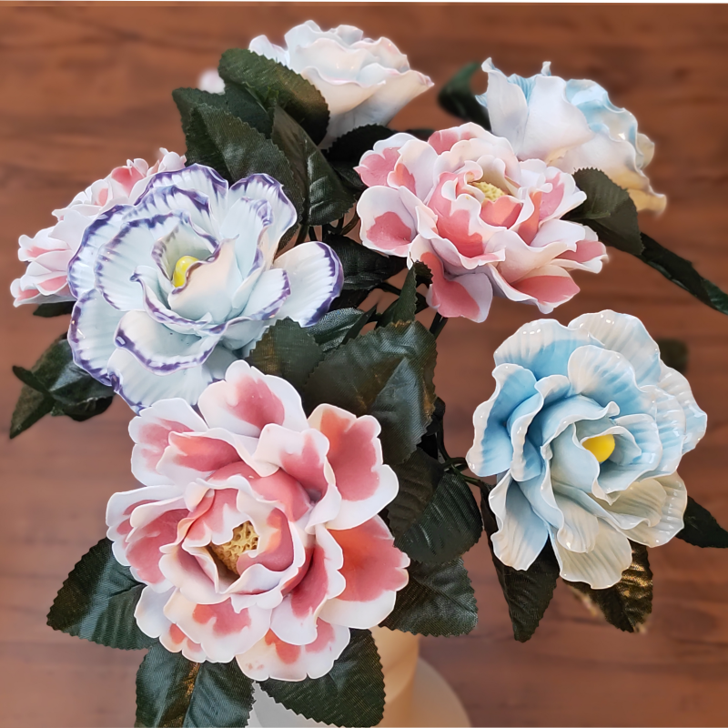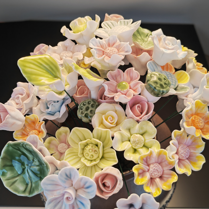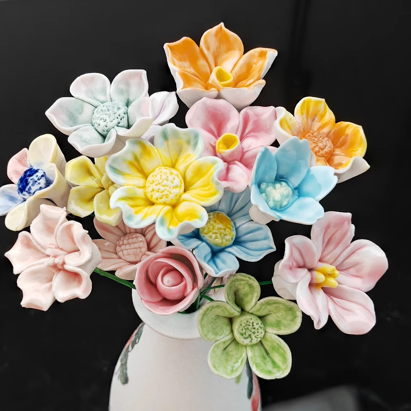 景德镇手工陶瓷花陶土花瓶卧室仿真花朵装饰摆件永生花礼品礼物
