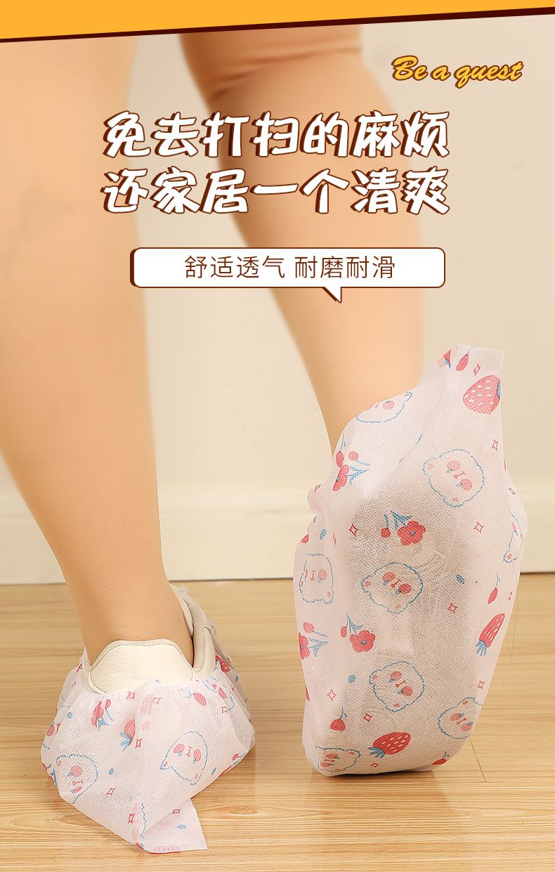 一次性鞋套家用室内无纺布印花卡通微机房用学生耐磨脚套加厚防滑